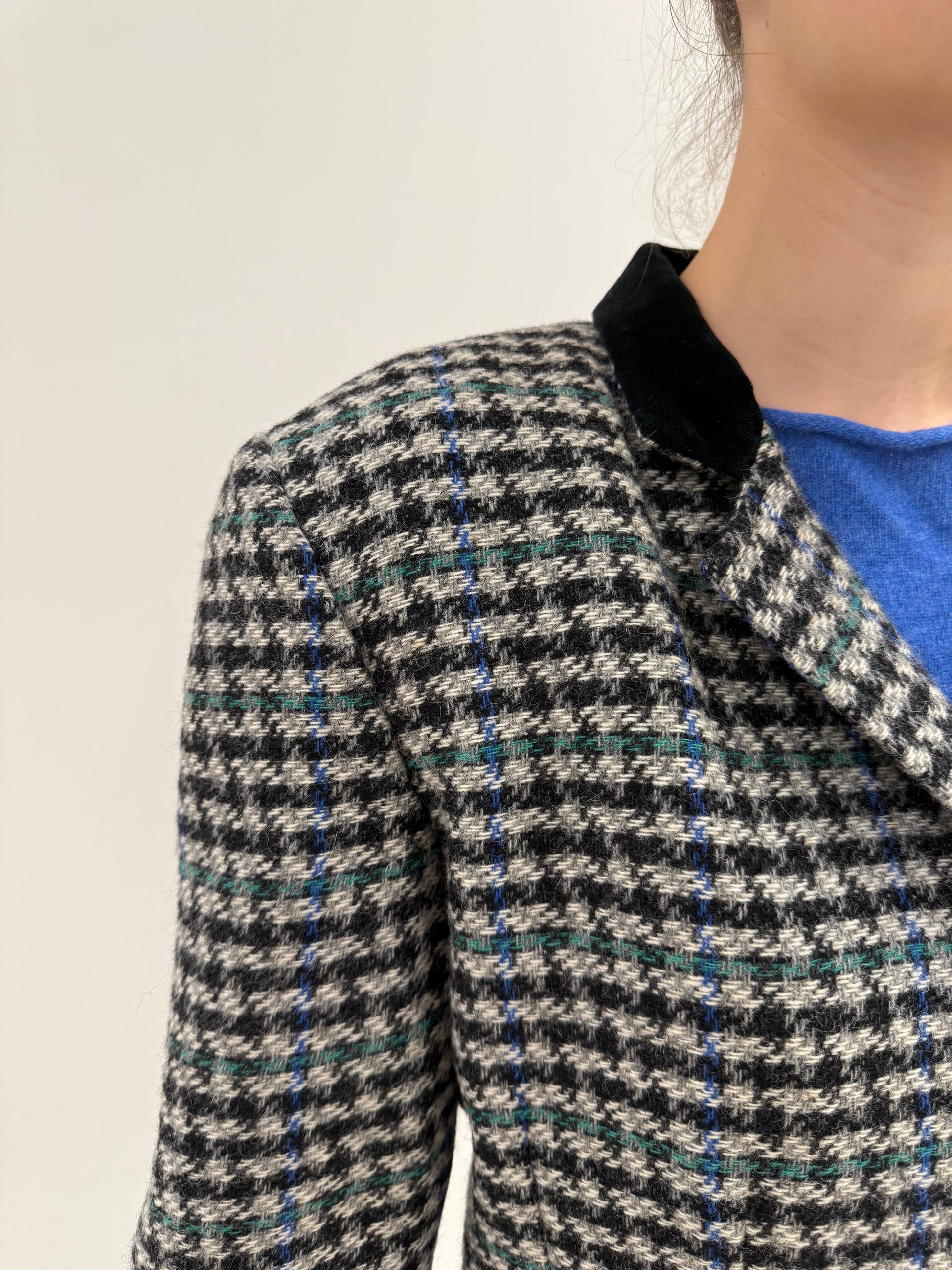 Sacou vintage cambrat din tweed pied de coq în combinație clasică de culori