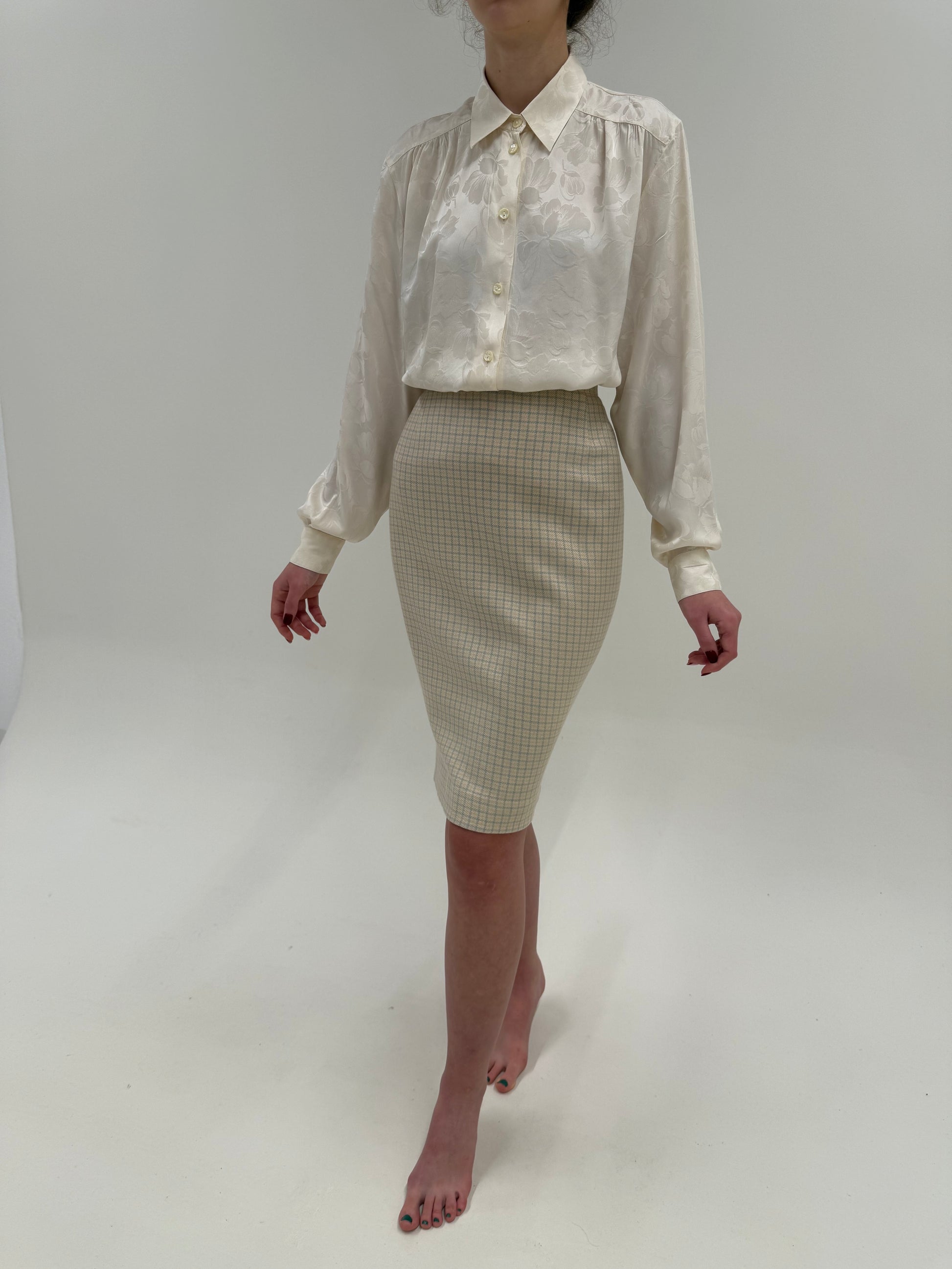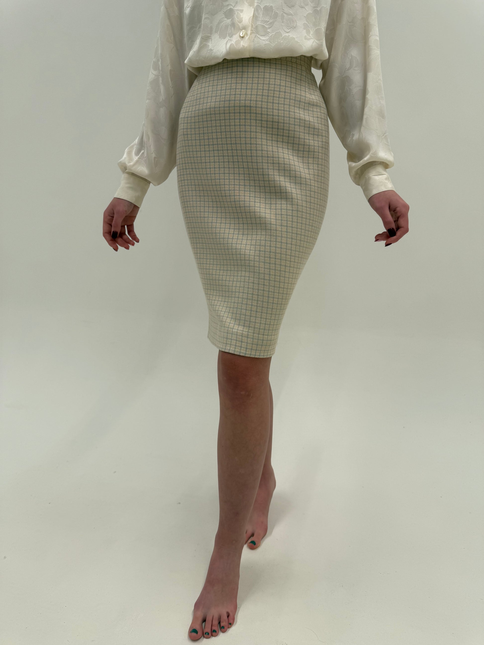 Fustă Escada din cașmir și mătase naturală în culori pudrate conică