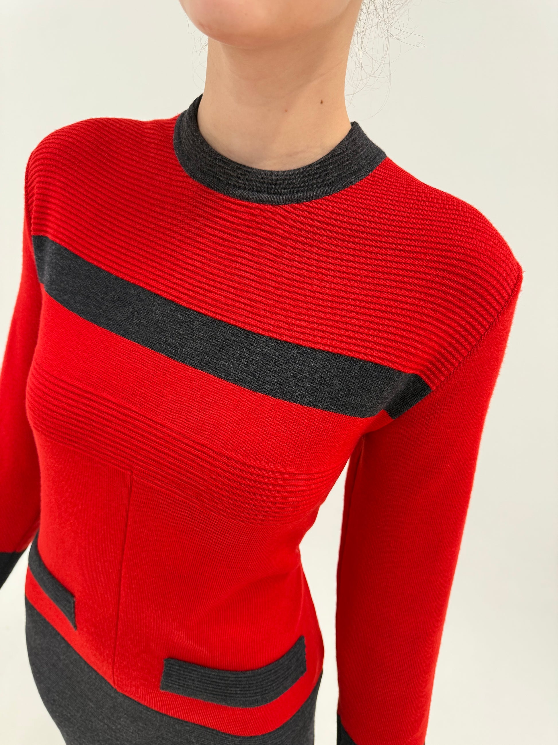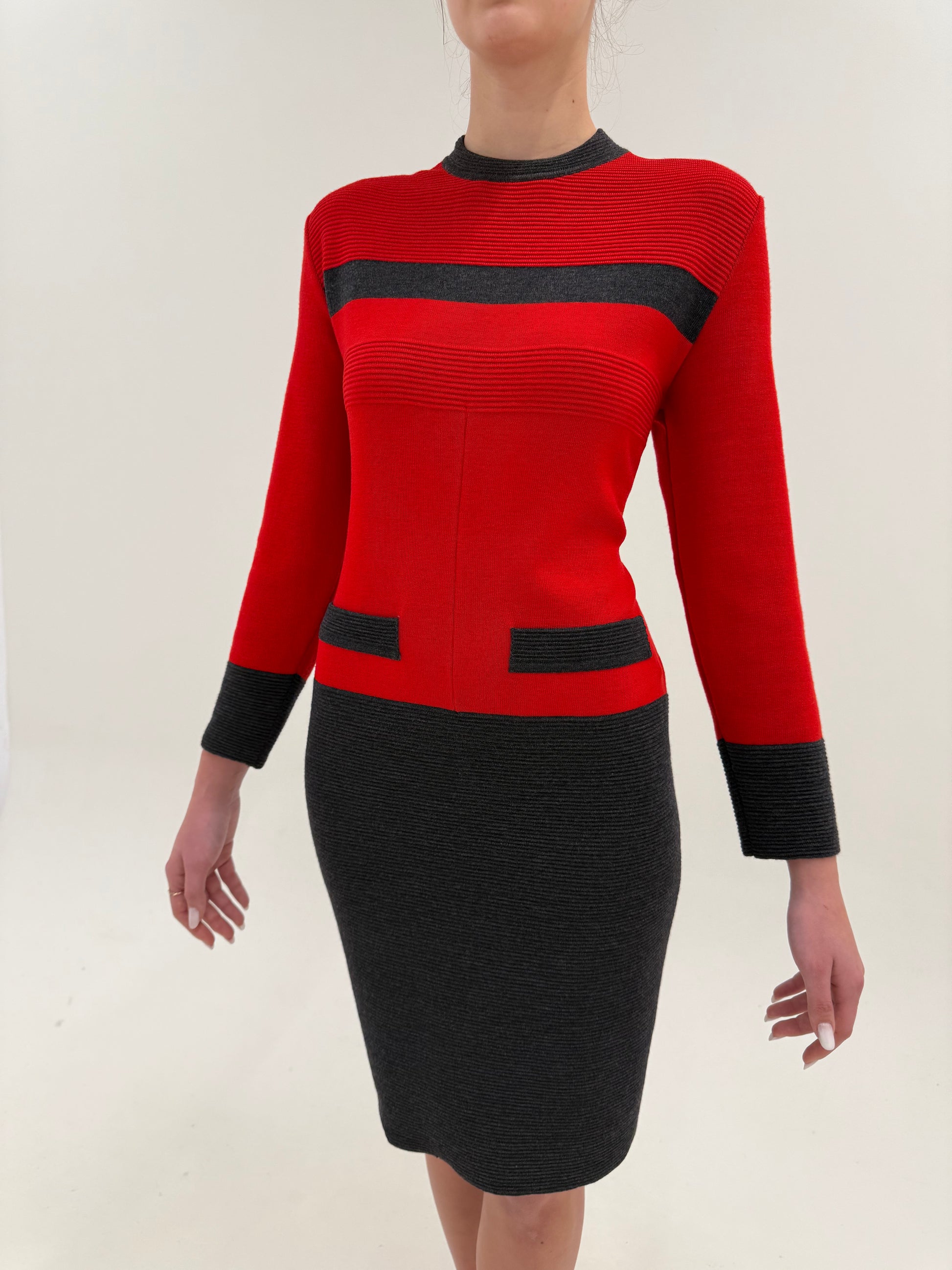 Rochie vintage Fendi colorblock din jerse de lana extrem de fin