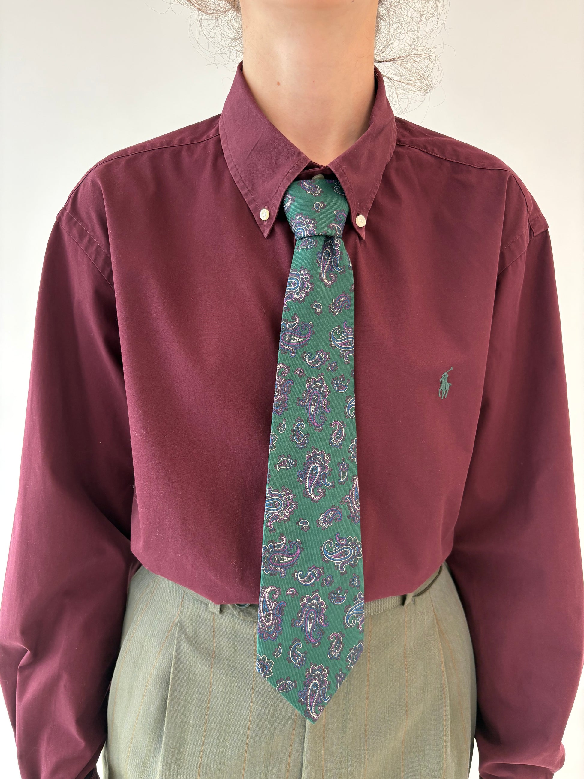 Cravata verde cu print paisley italiană ușor mai slim din mătase naturală