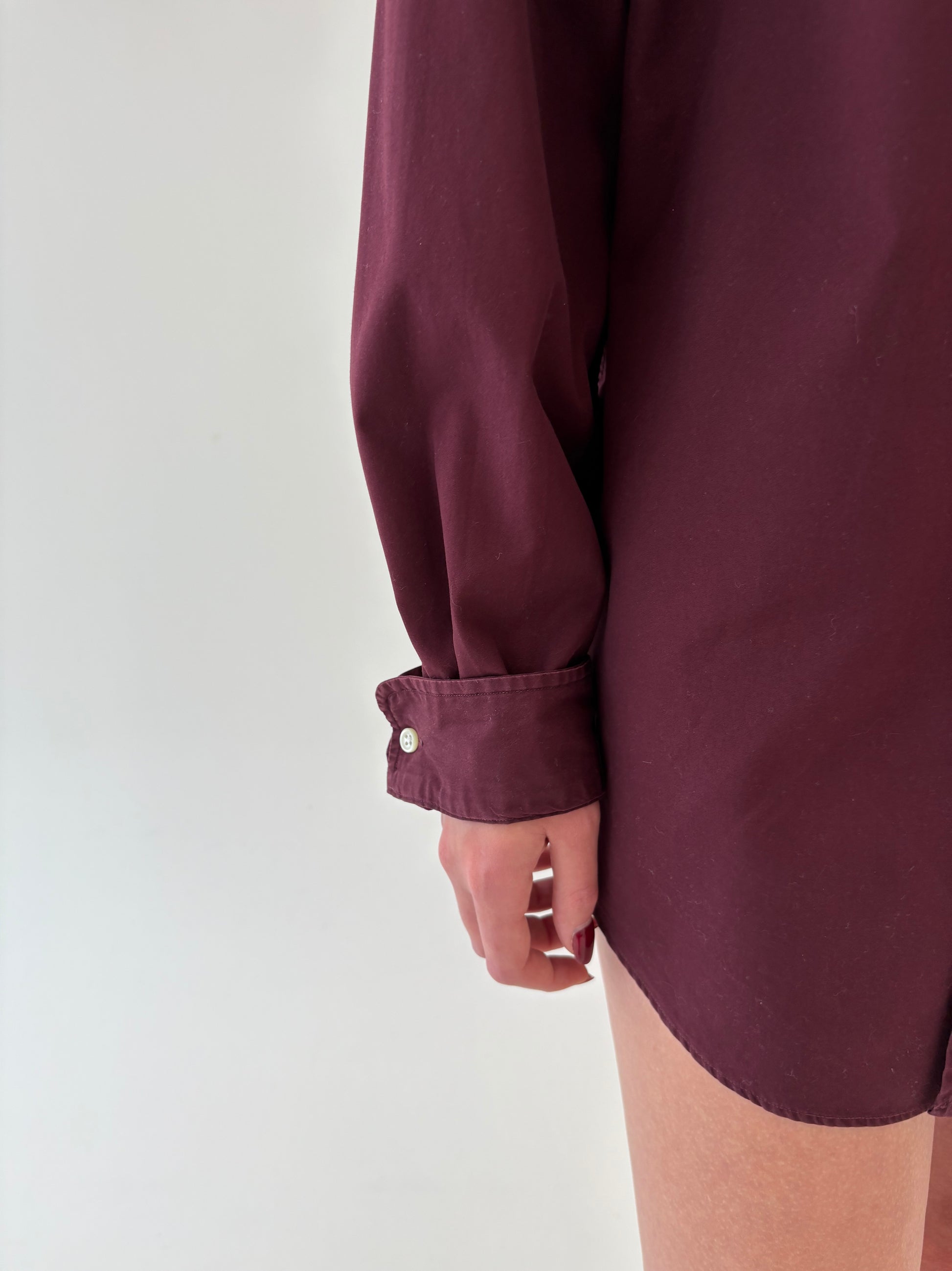 Cămașa Ralph Lauren burgundy în croi oversized din bumbac gros