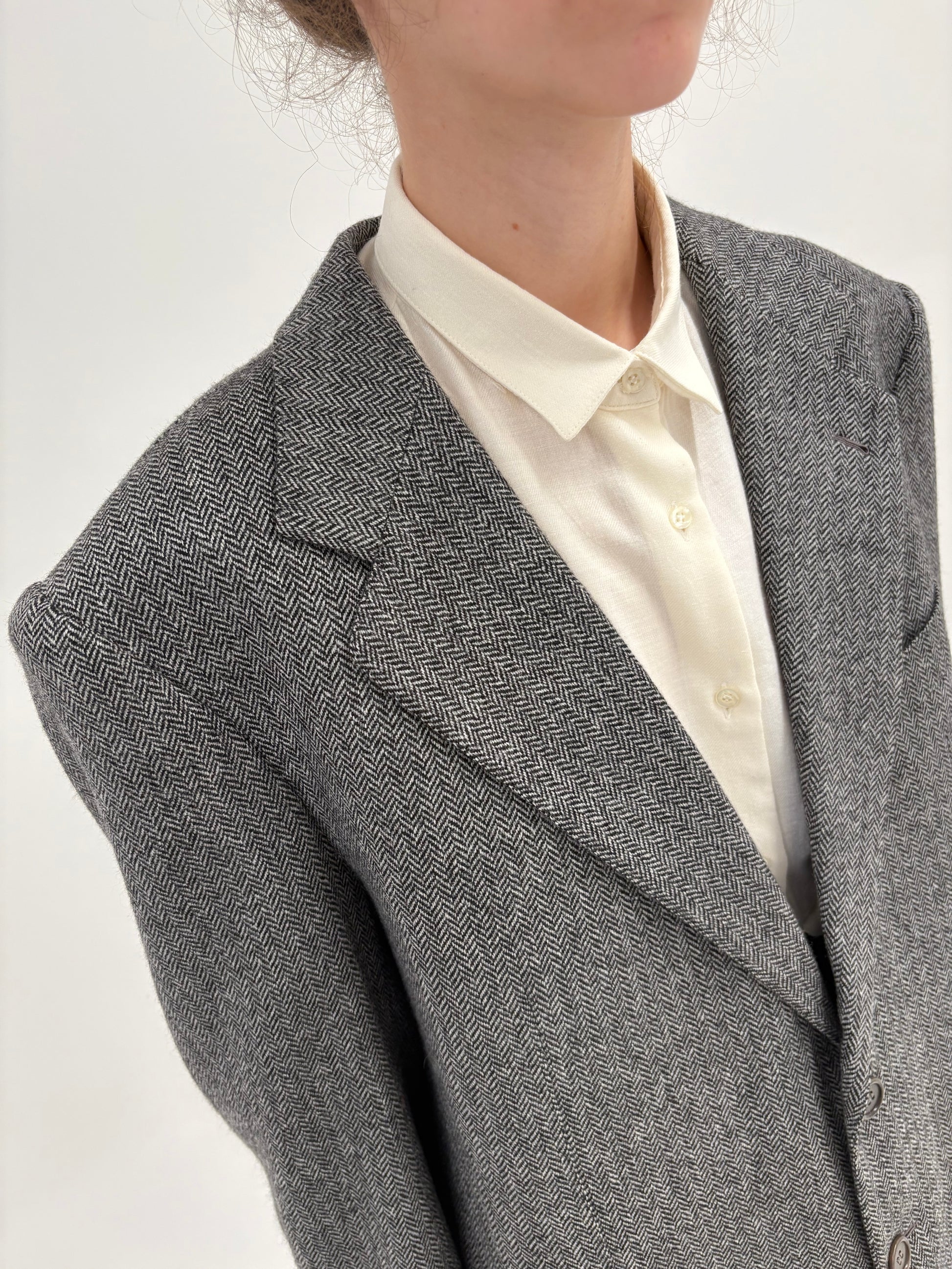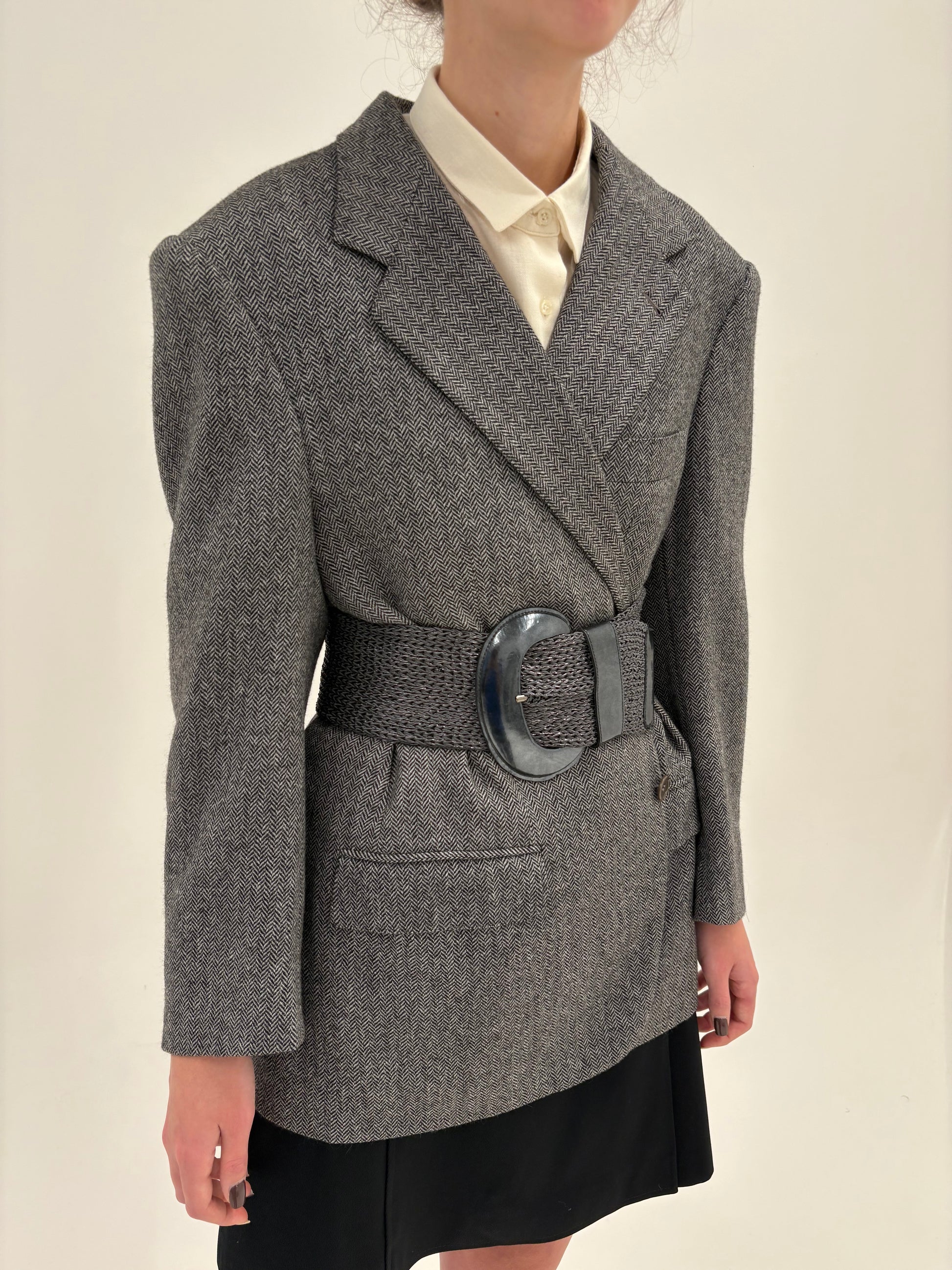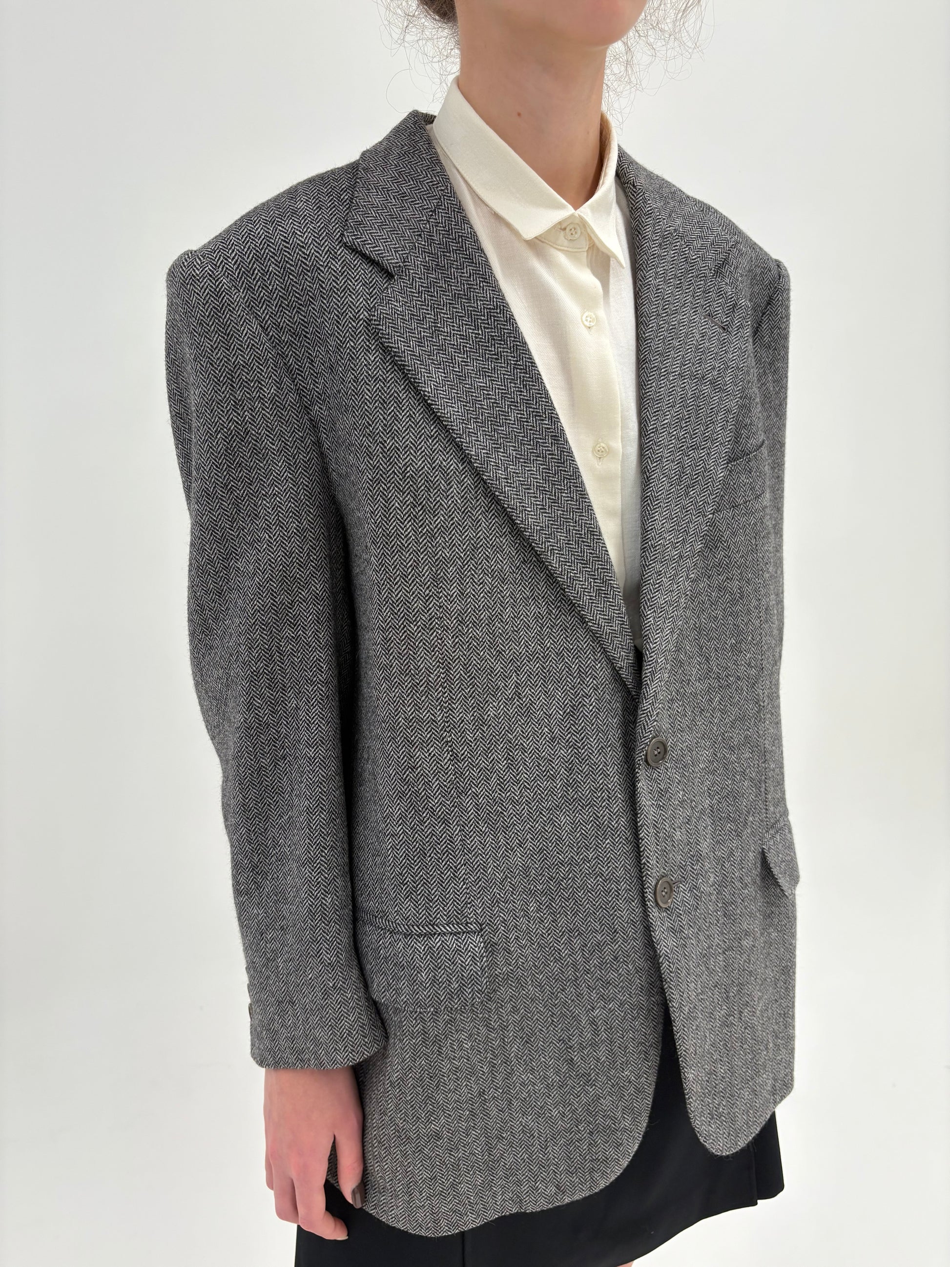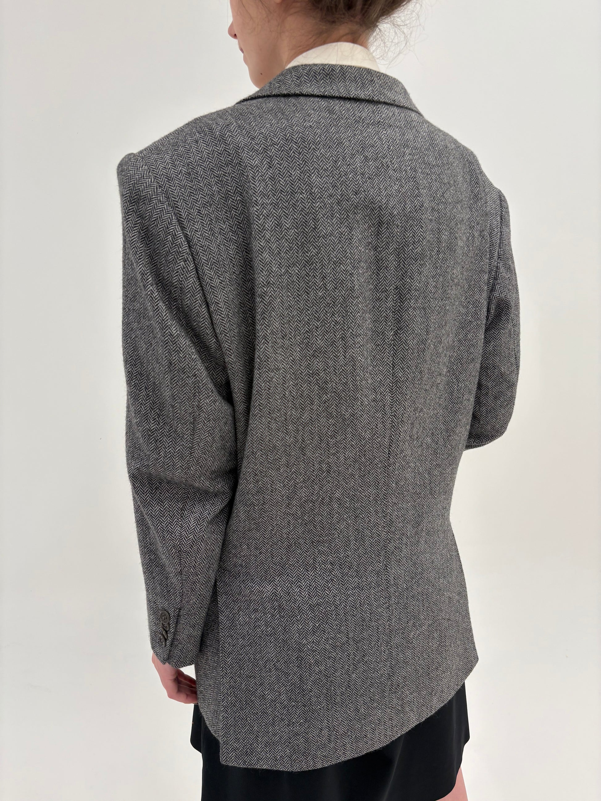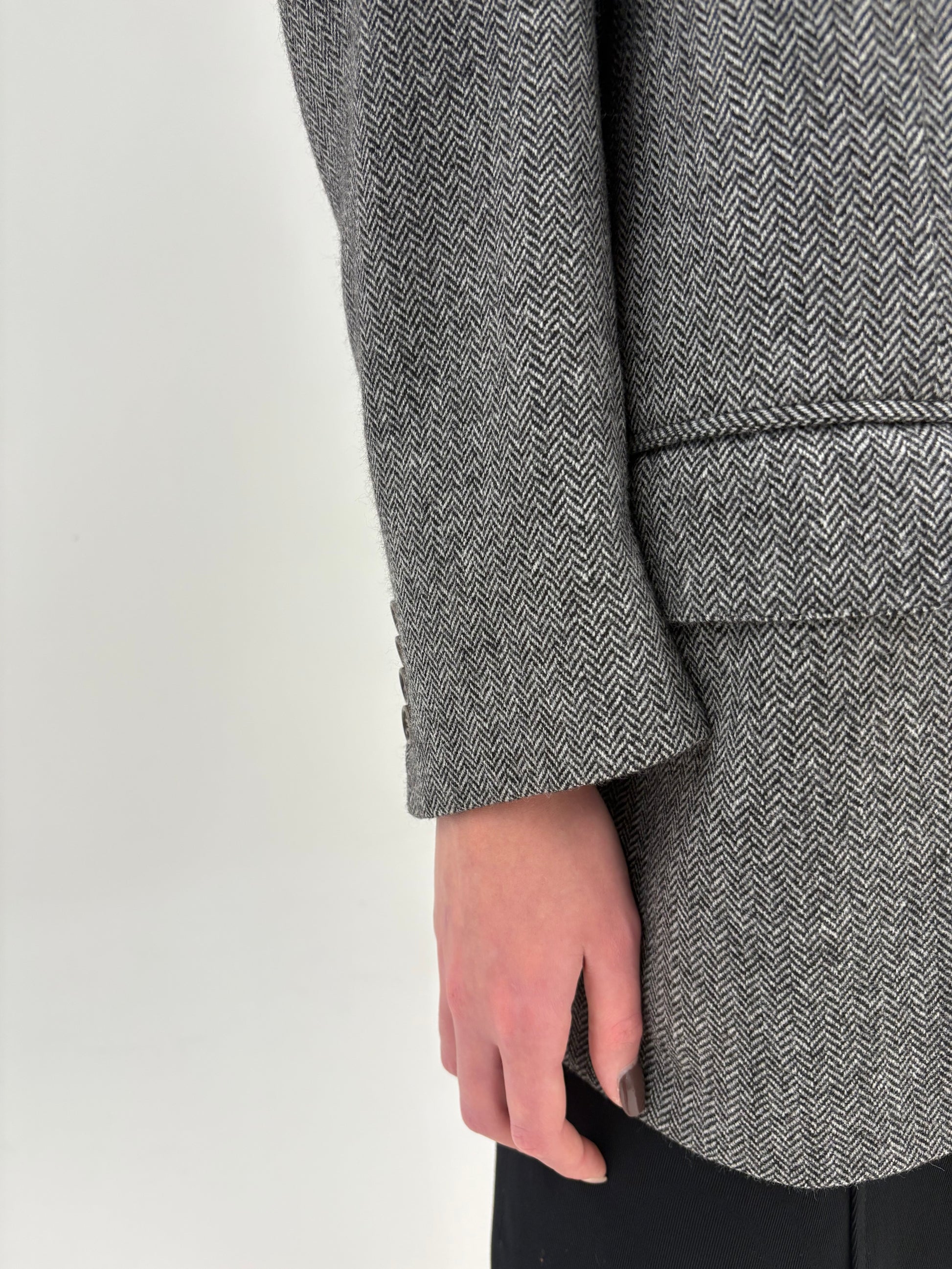 Sacou couture din stofă de lana și cașmir Chevron alb cu negru