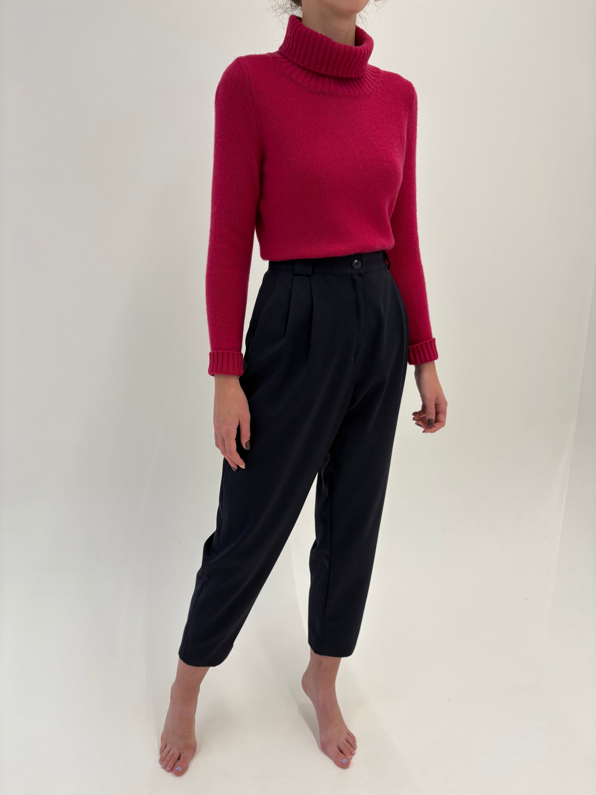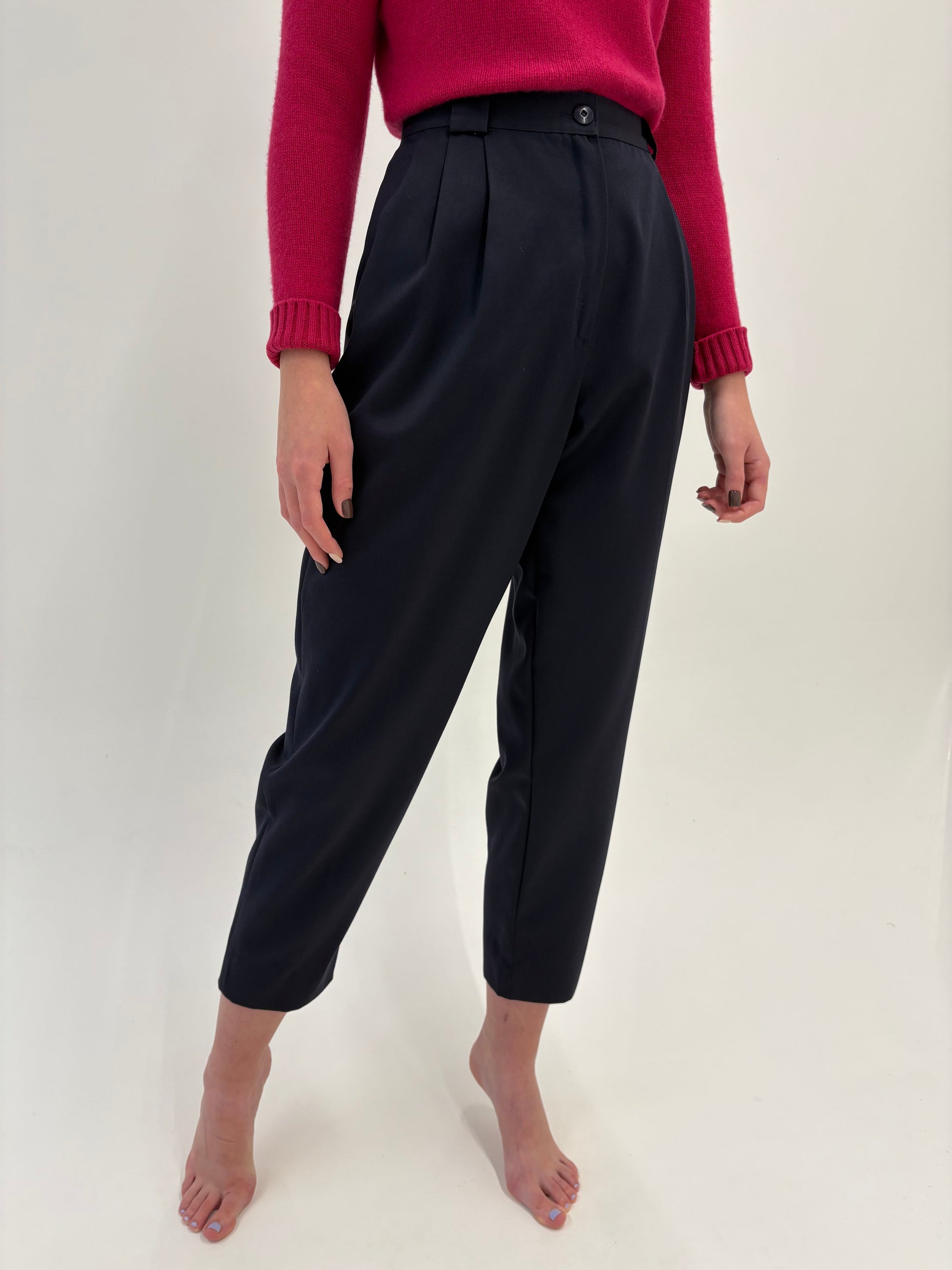 Pantaloni țigaretă din lana extrafina pura certificată cu talie ultra înaltă