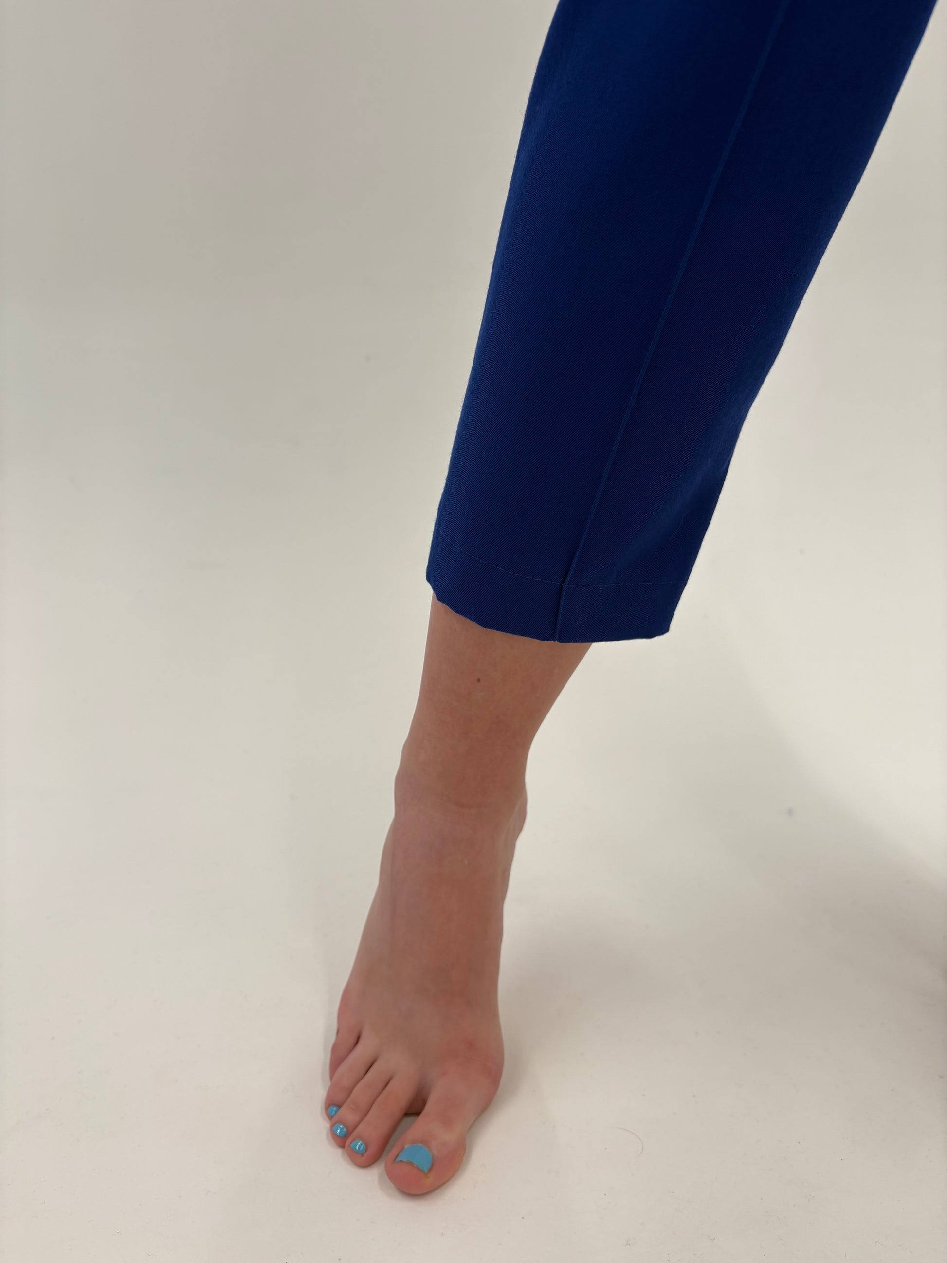 Pantaloni albastru regal cu talie ultra înaltă și pense din lana extrafina