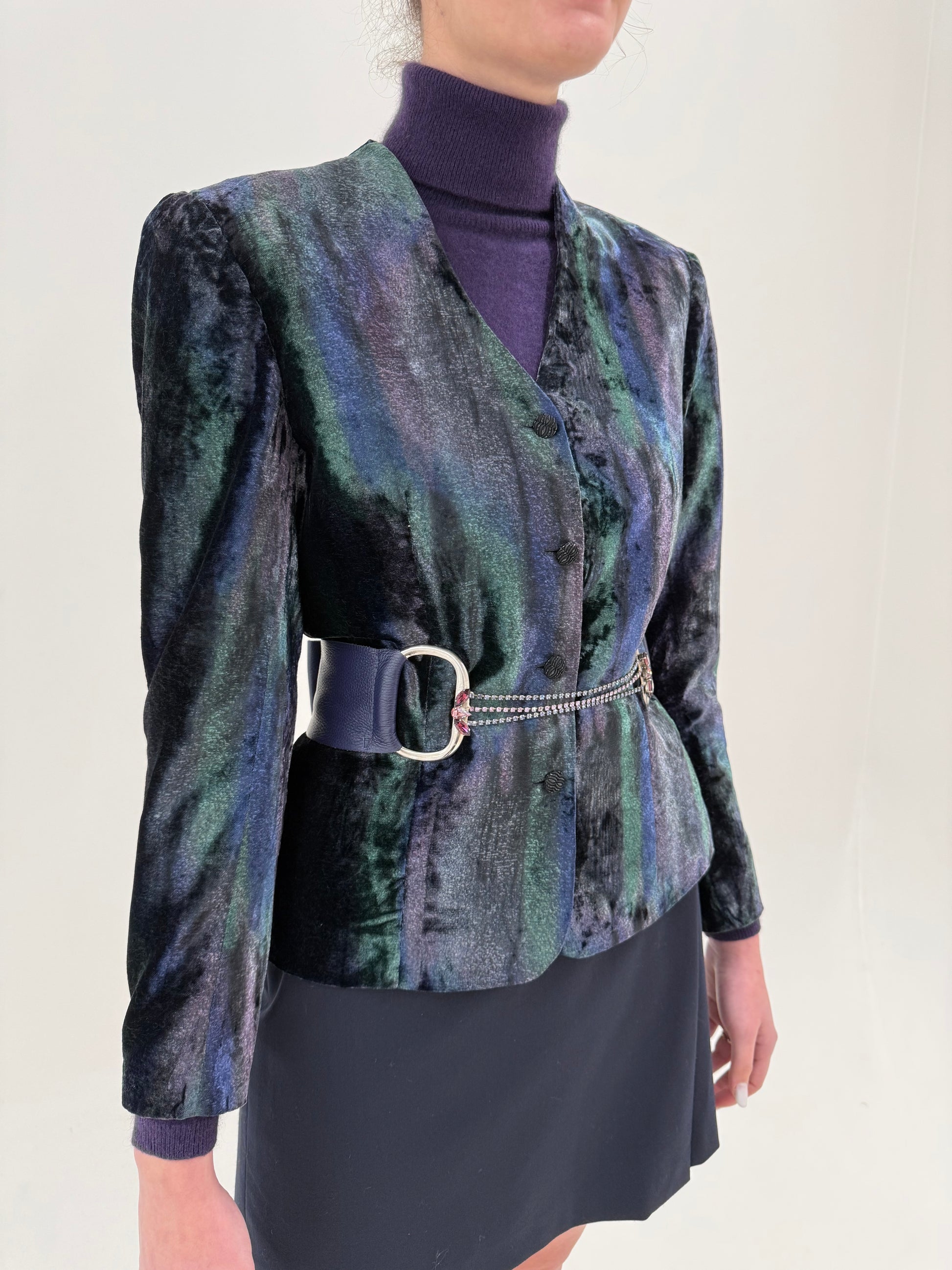 Sacou elegant în croi minimalist ușor cambrat din catifea de la zi la seară