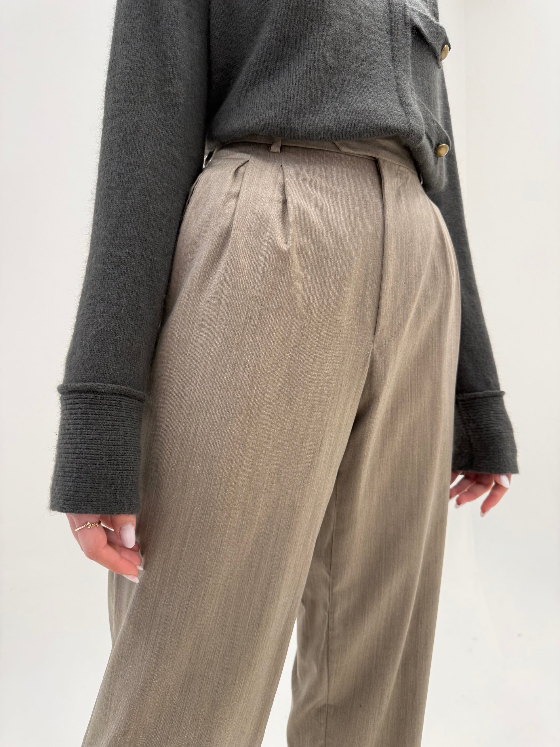 Pantaloni luxury Cacharel light taupe bude din stofita excepțională de primăvară