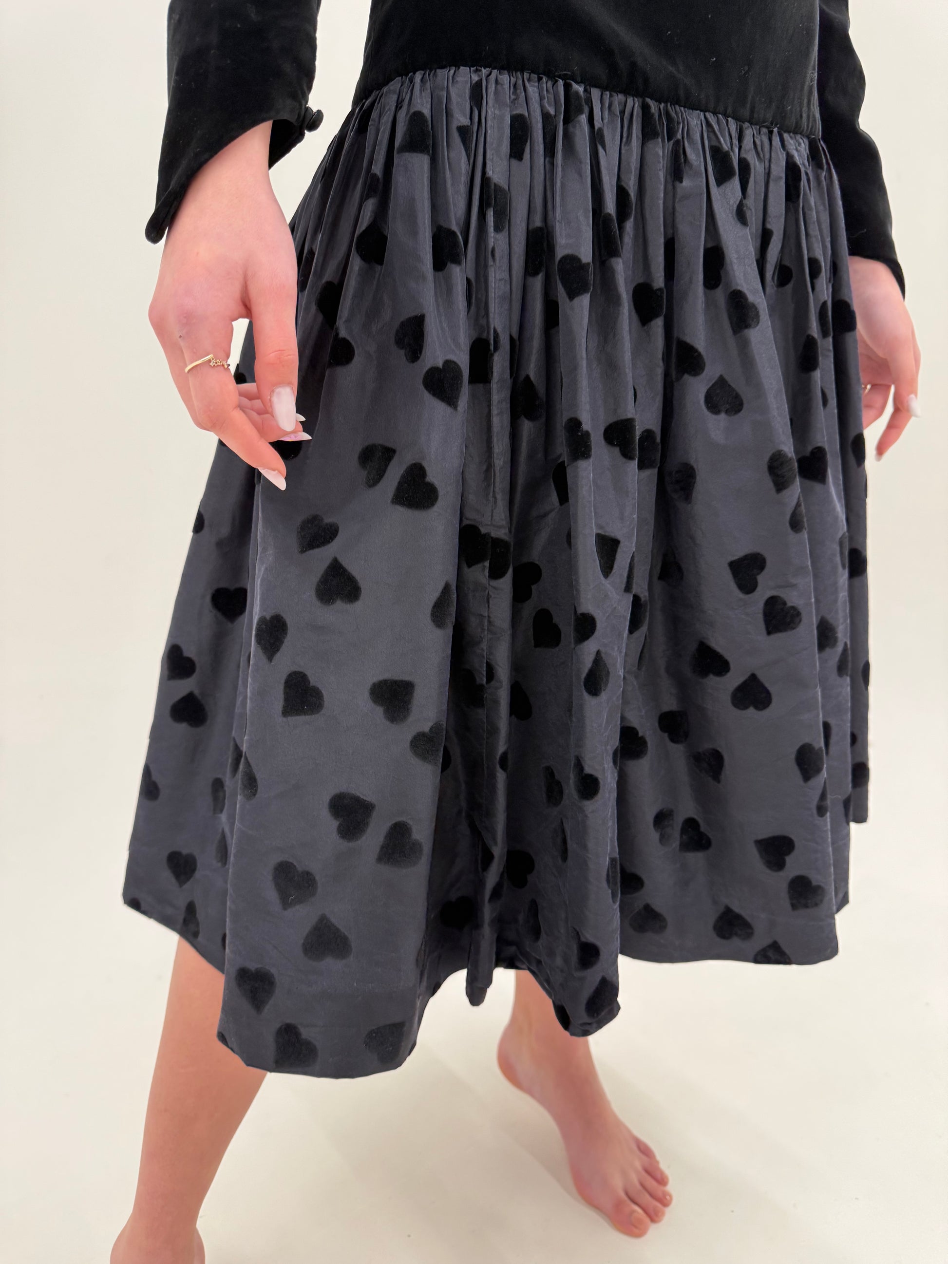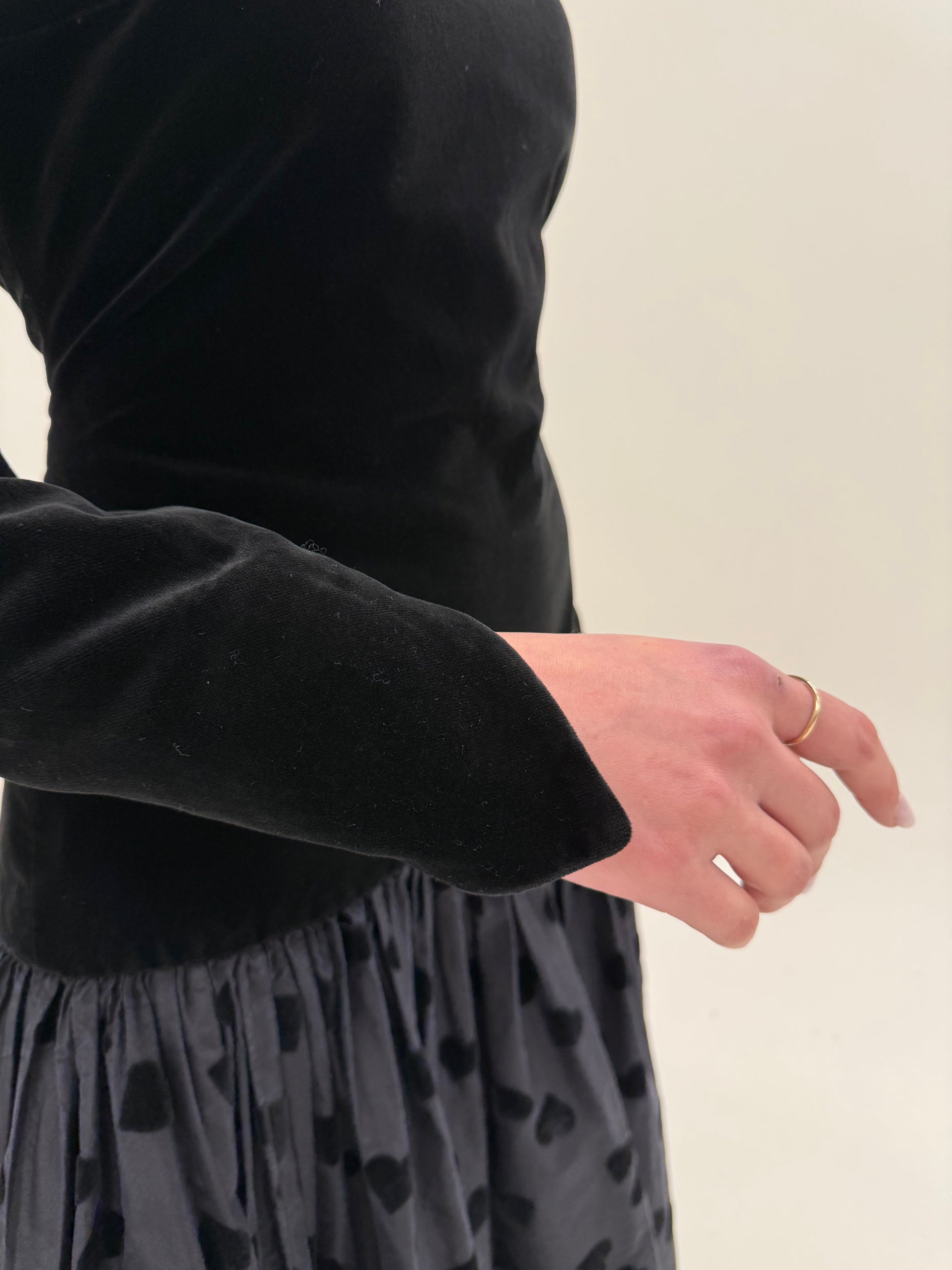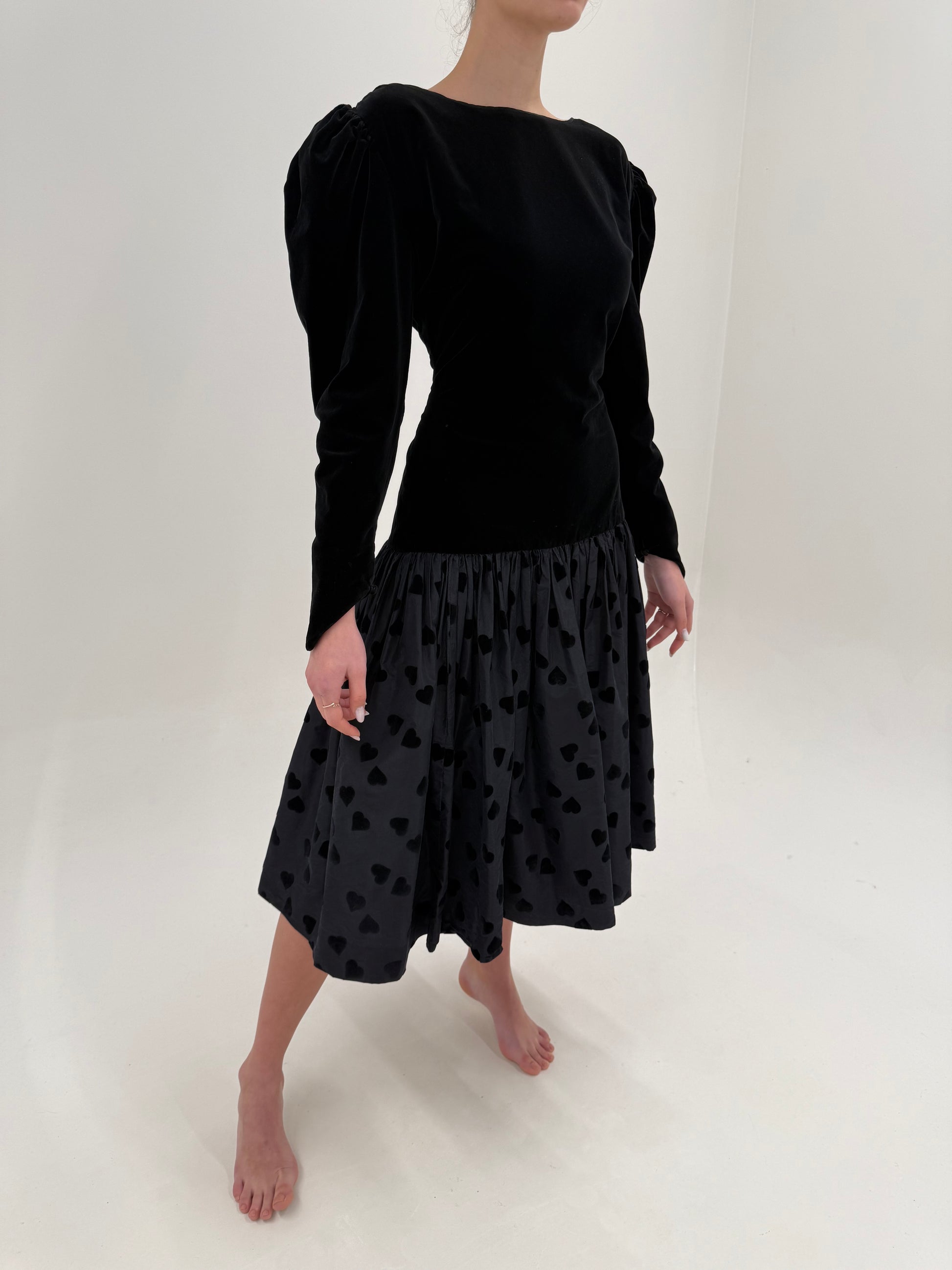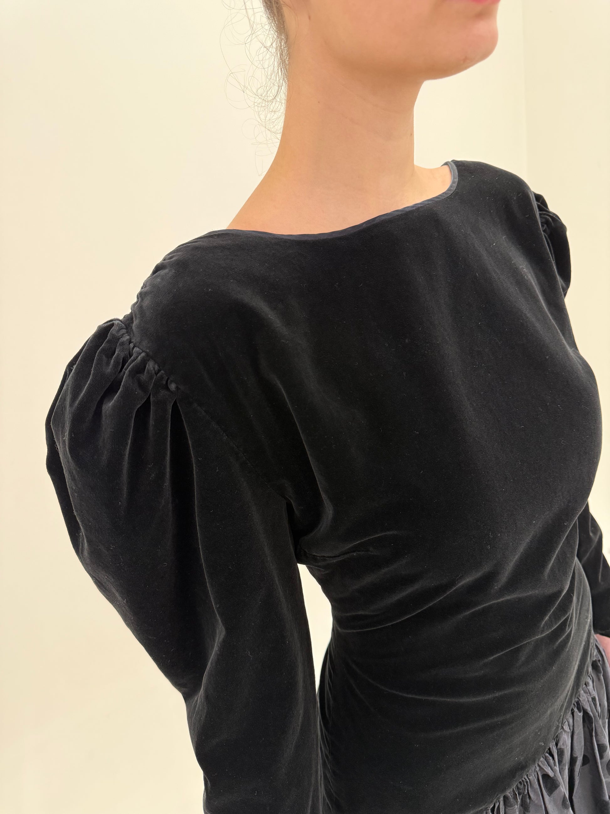 LBD vintage din catifea cu spate gol și tafta cu buline din mătase naturală