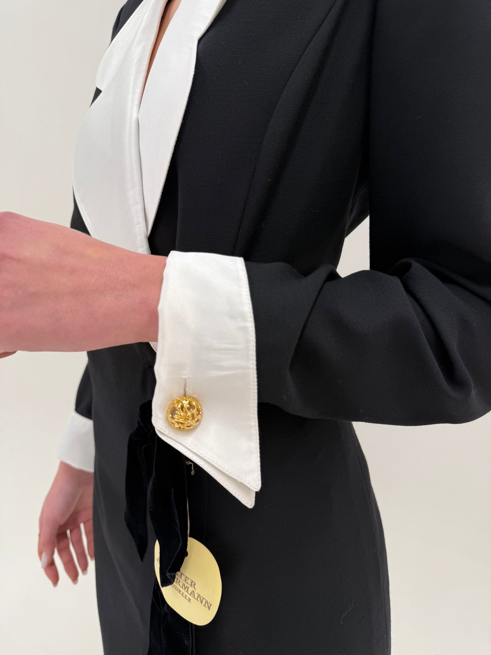LBD maxi vintage nouă cu etichetă în stil Valentino cu revere și manșete contrastante