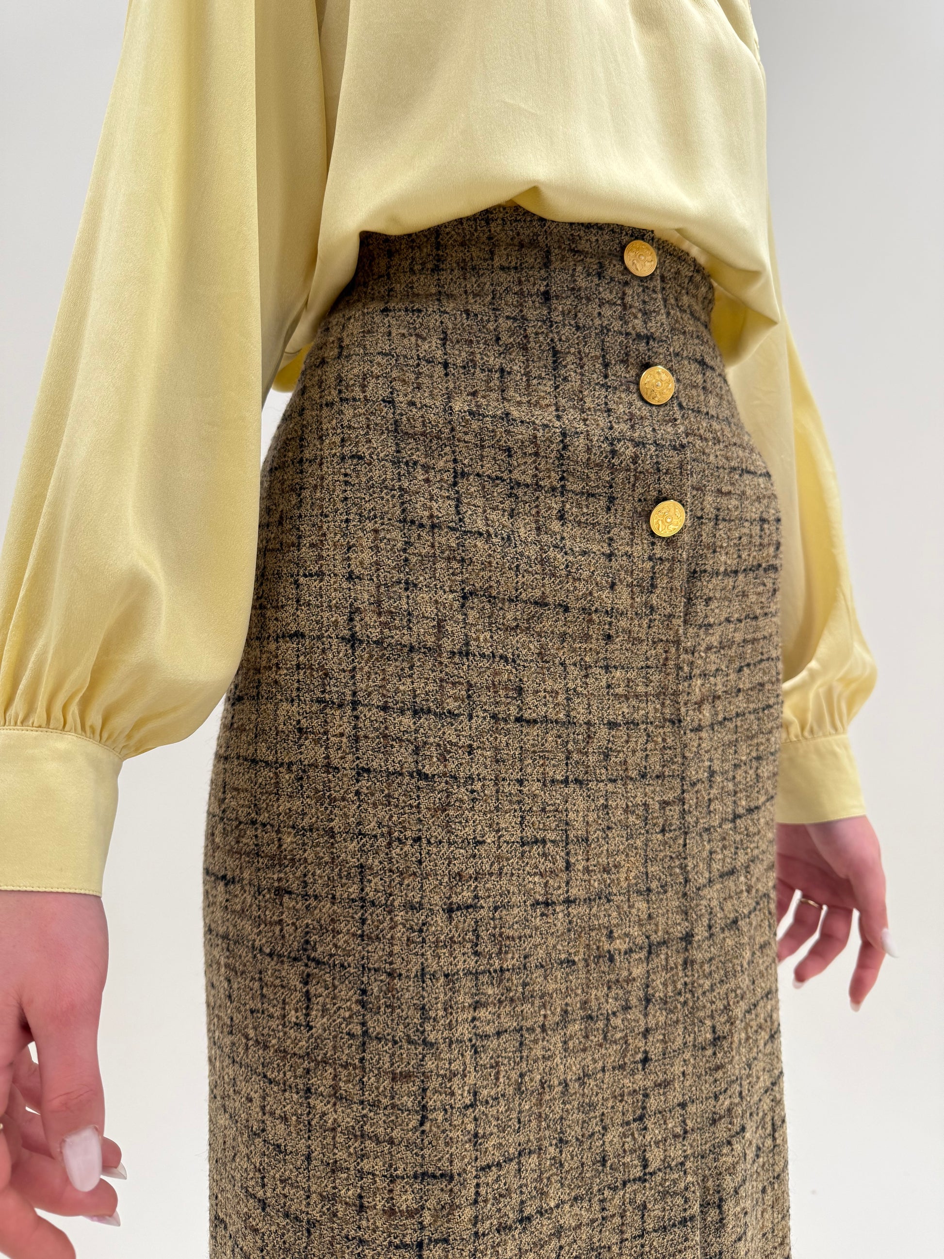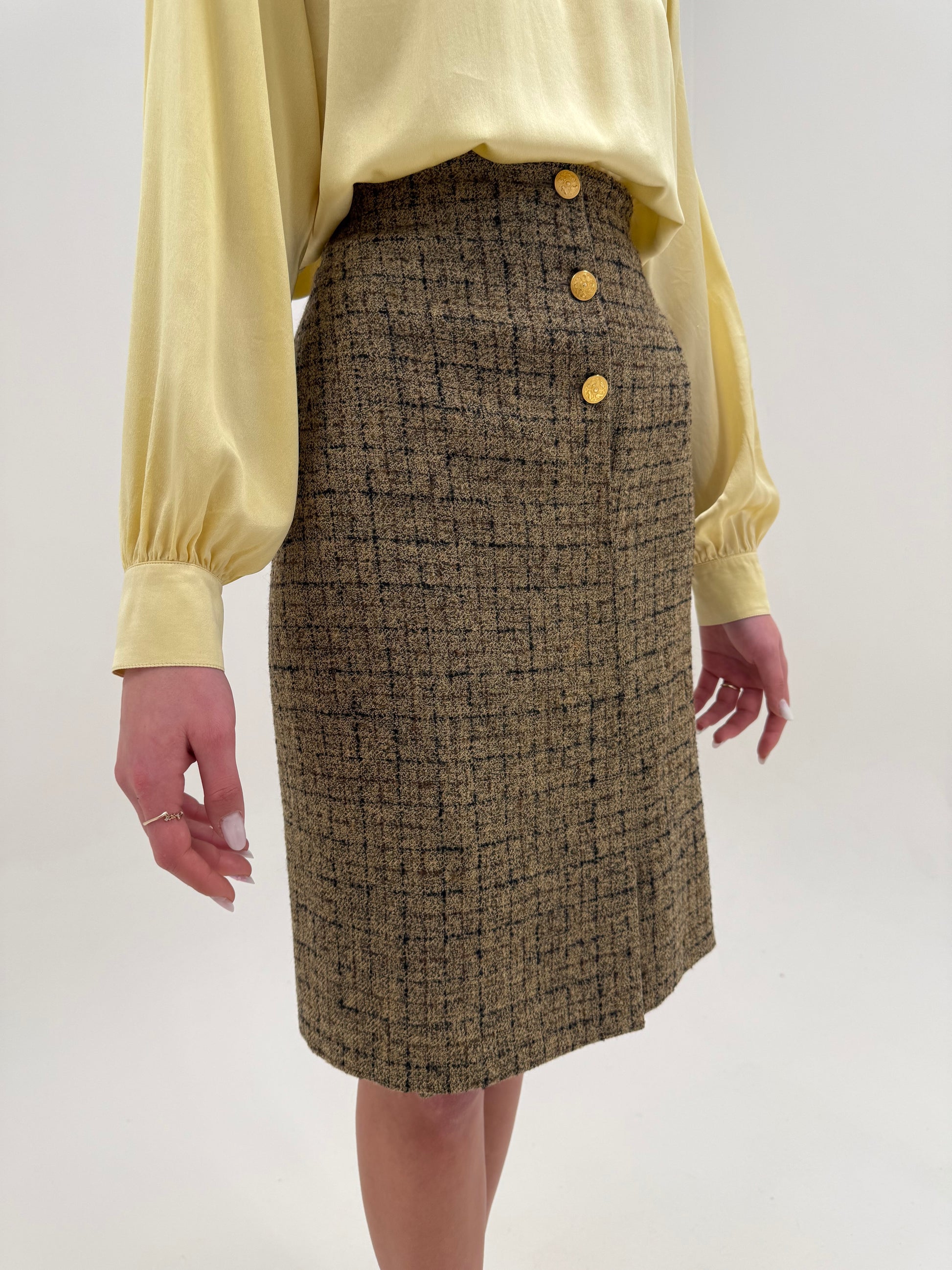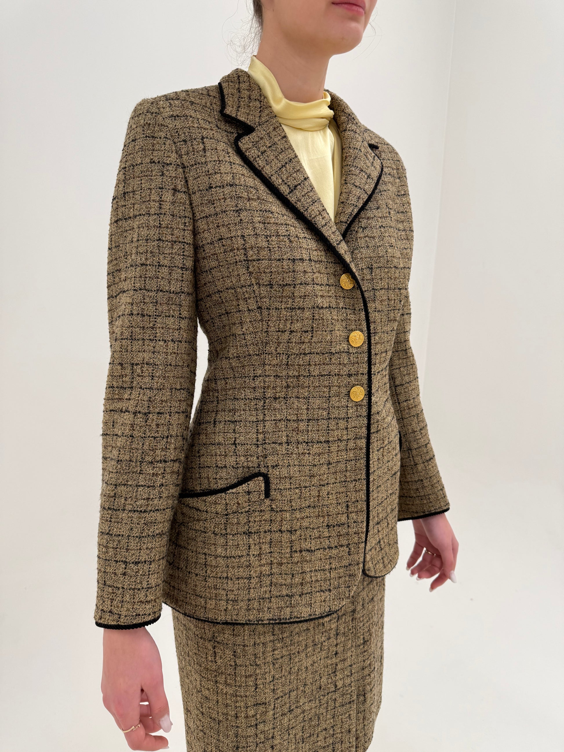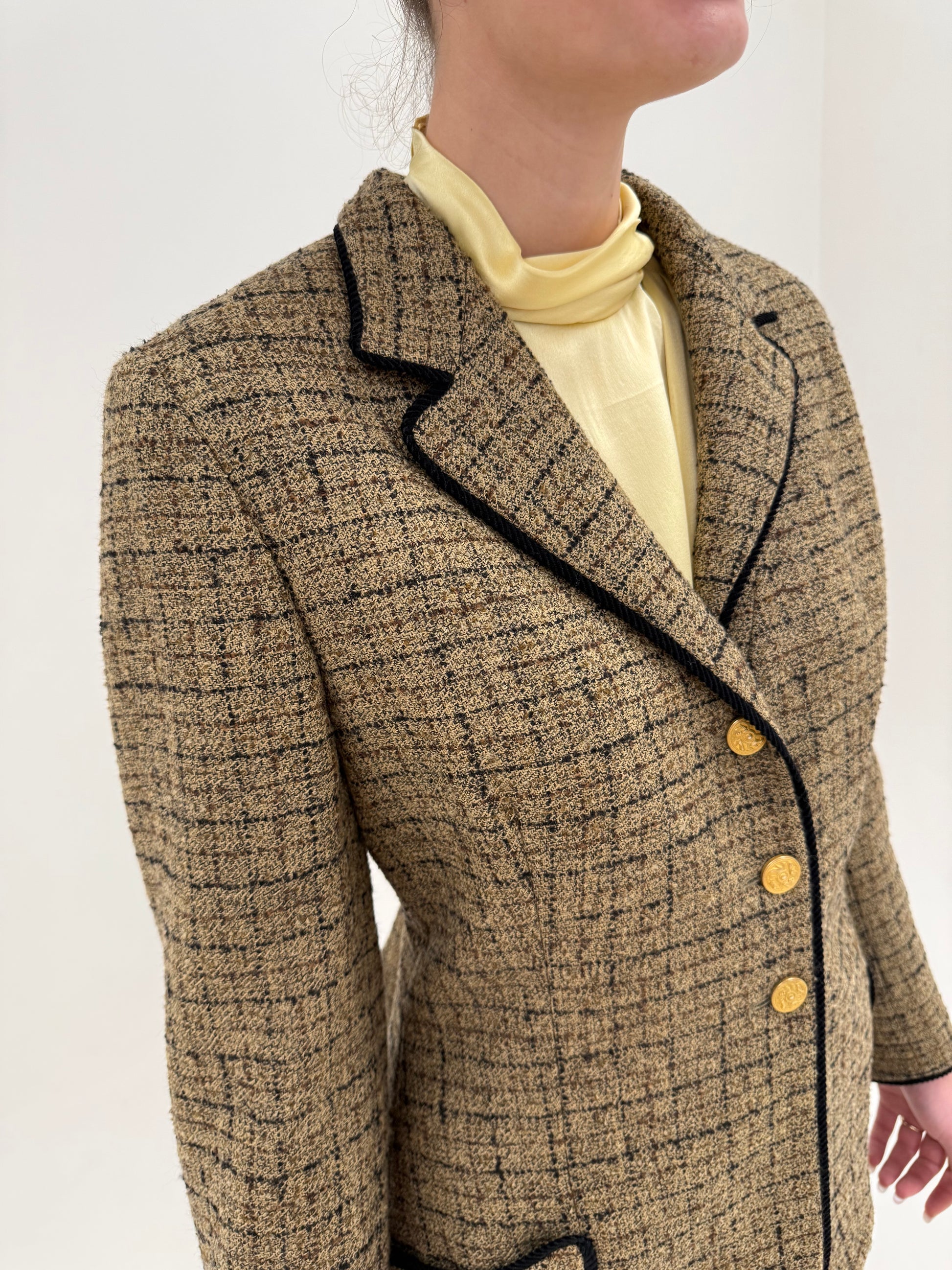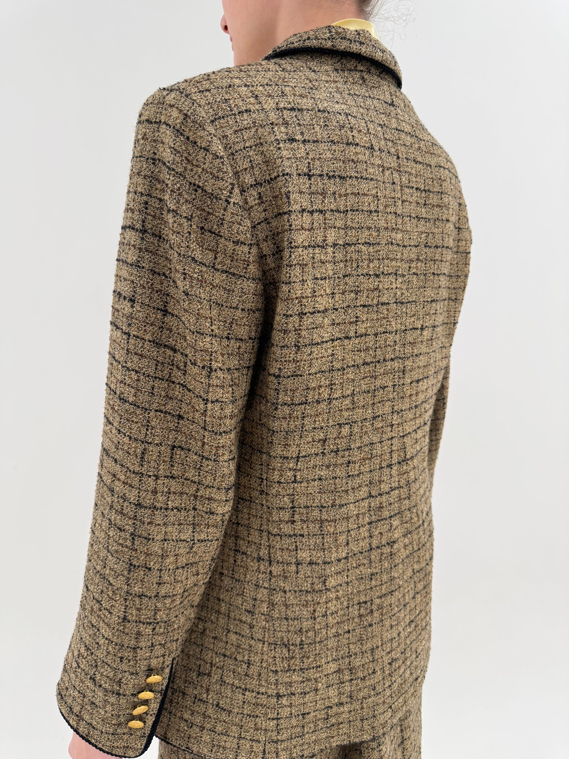 Mult mai frumos în realitate , un boucle camel în carouri negre cu nasturi bijuterie metalici aurii
