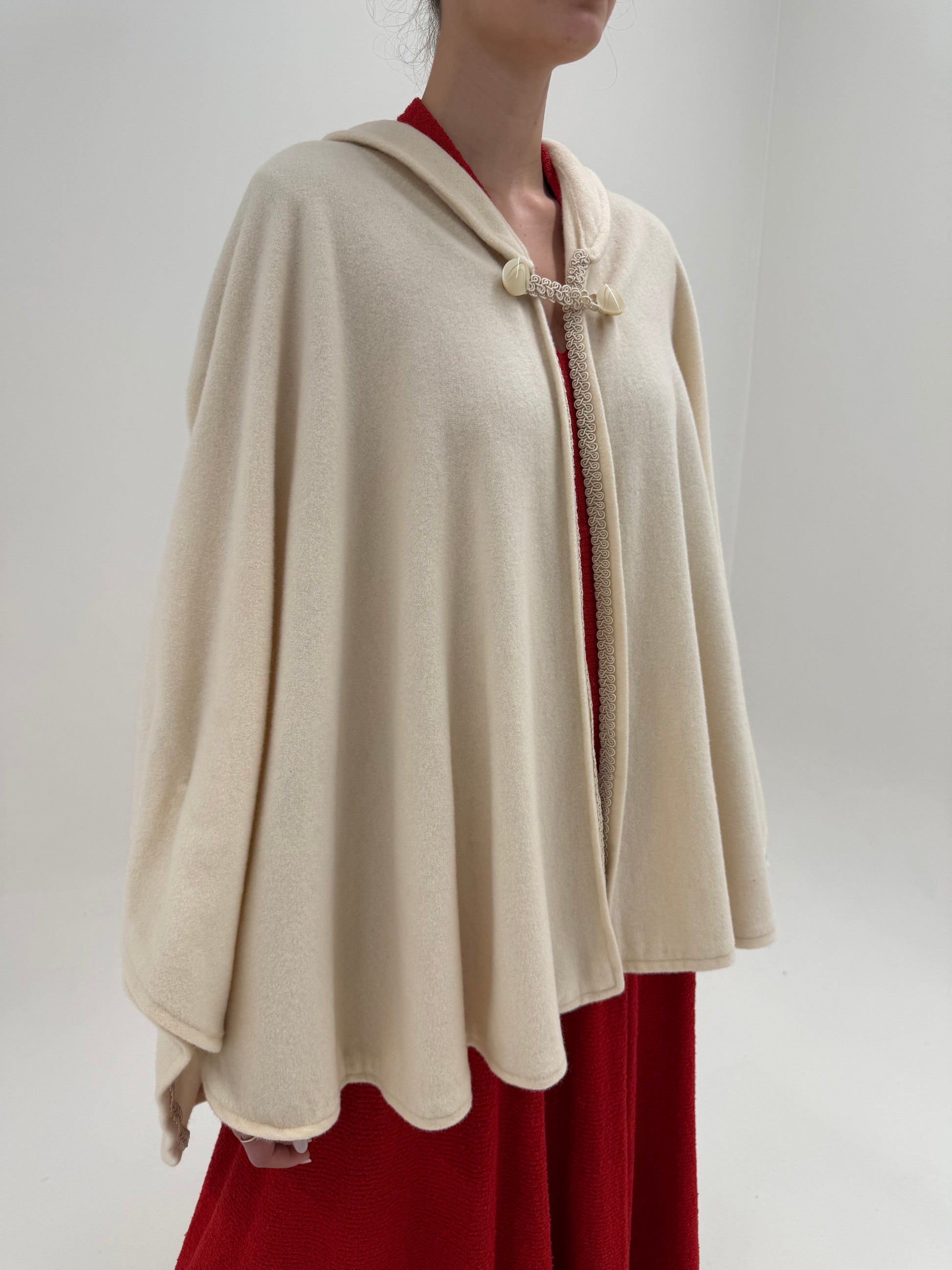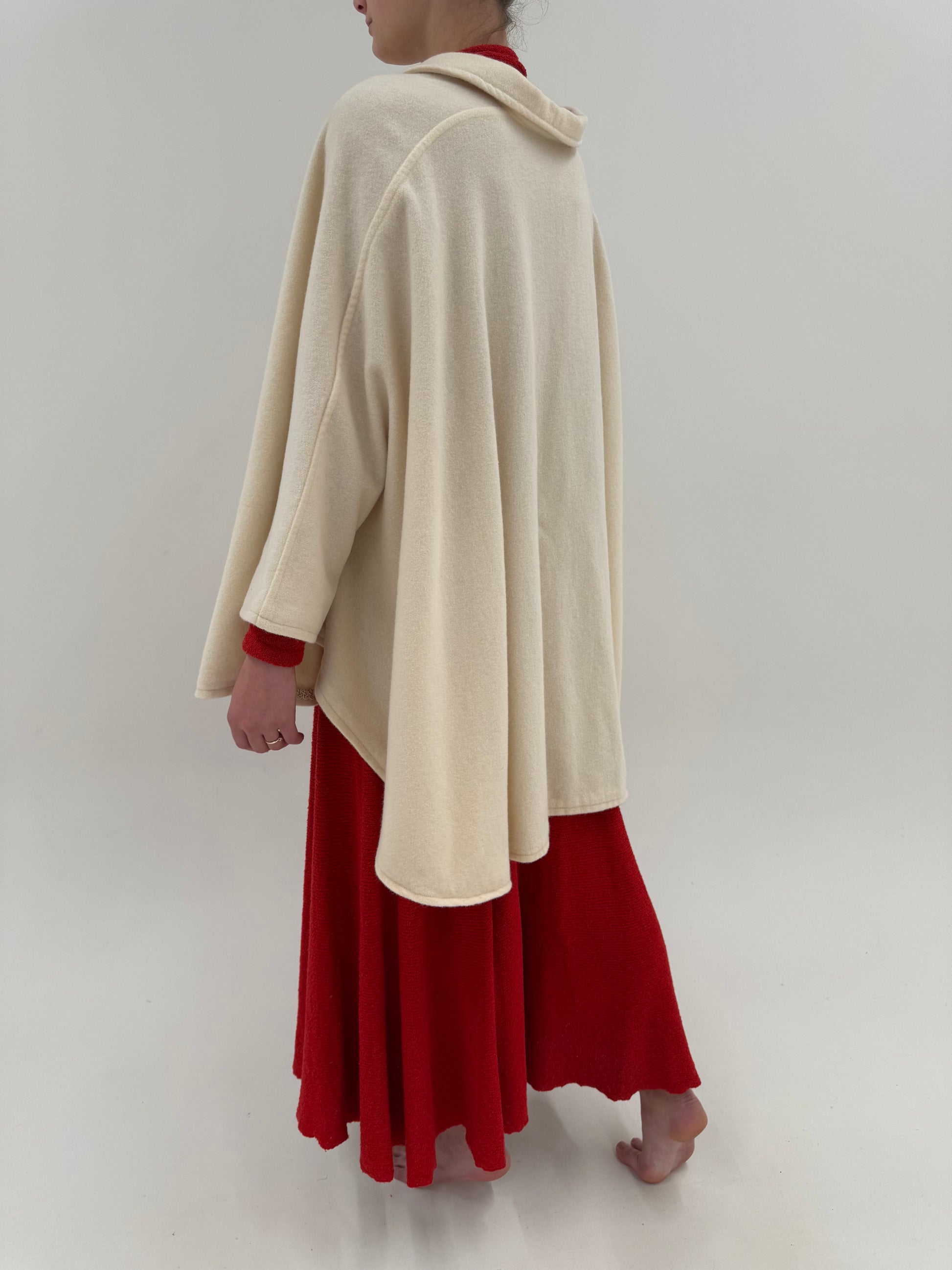 Capa vintage butter white din lana extrafina cu aplicații din dantelă macrame