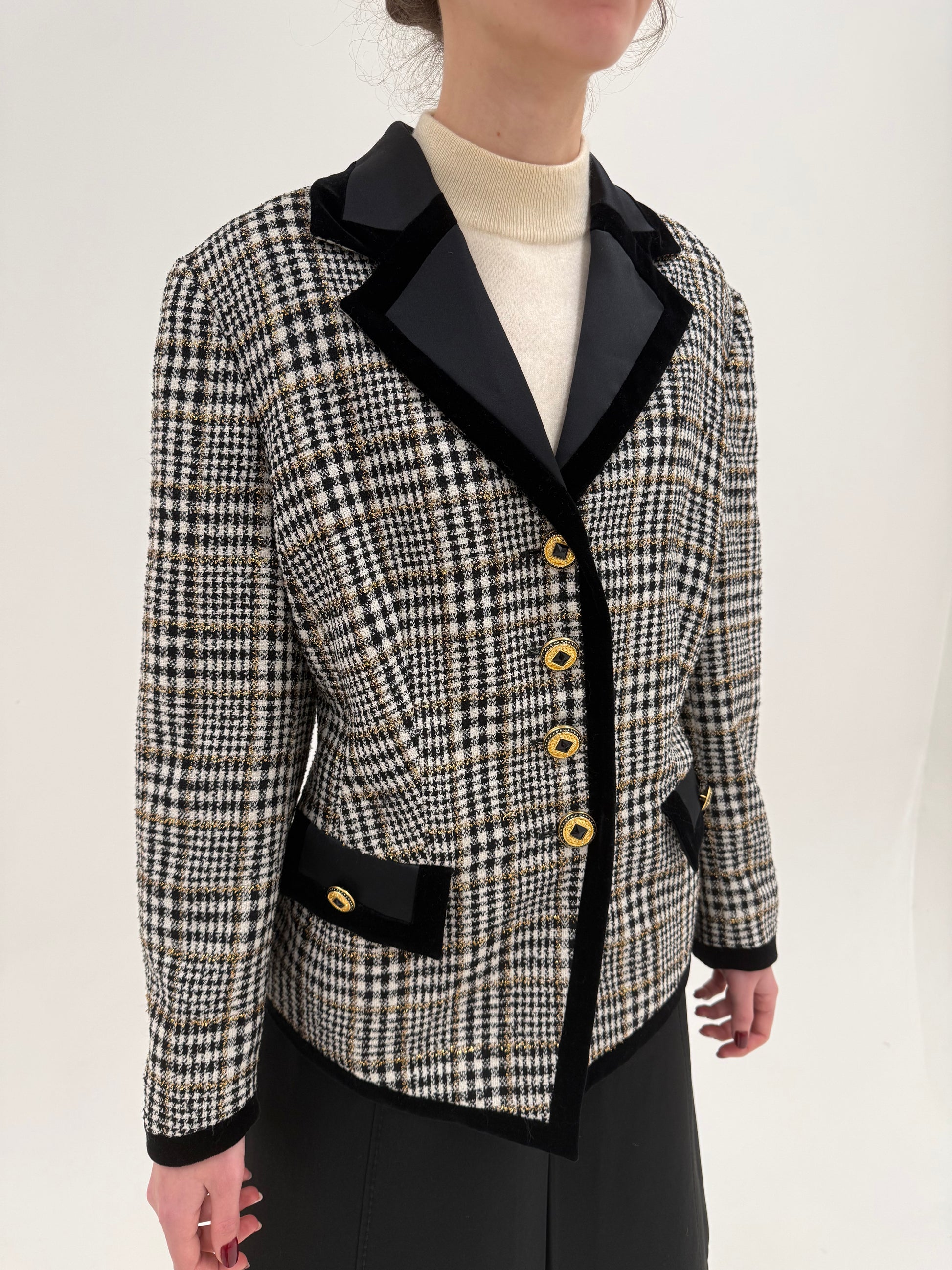 Sacou din tweed prețios de lana și alpaka cu inserții fine aurii în croi cambrat