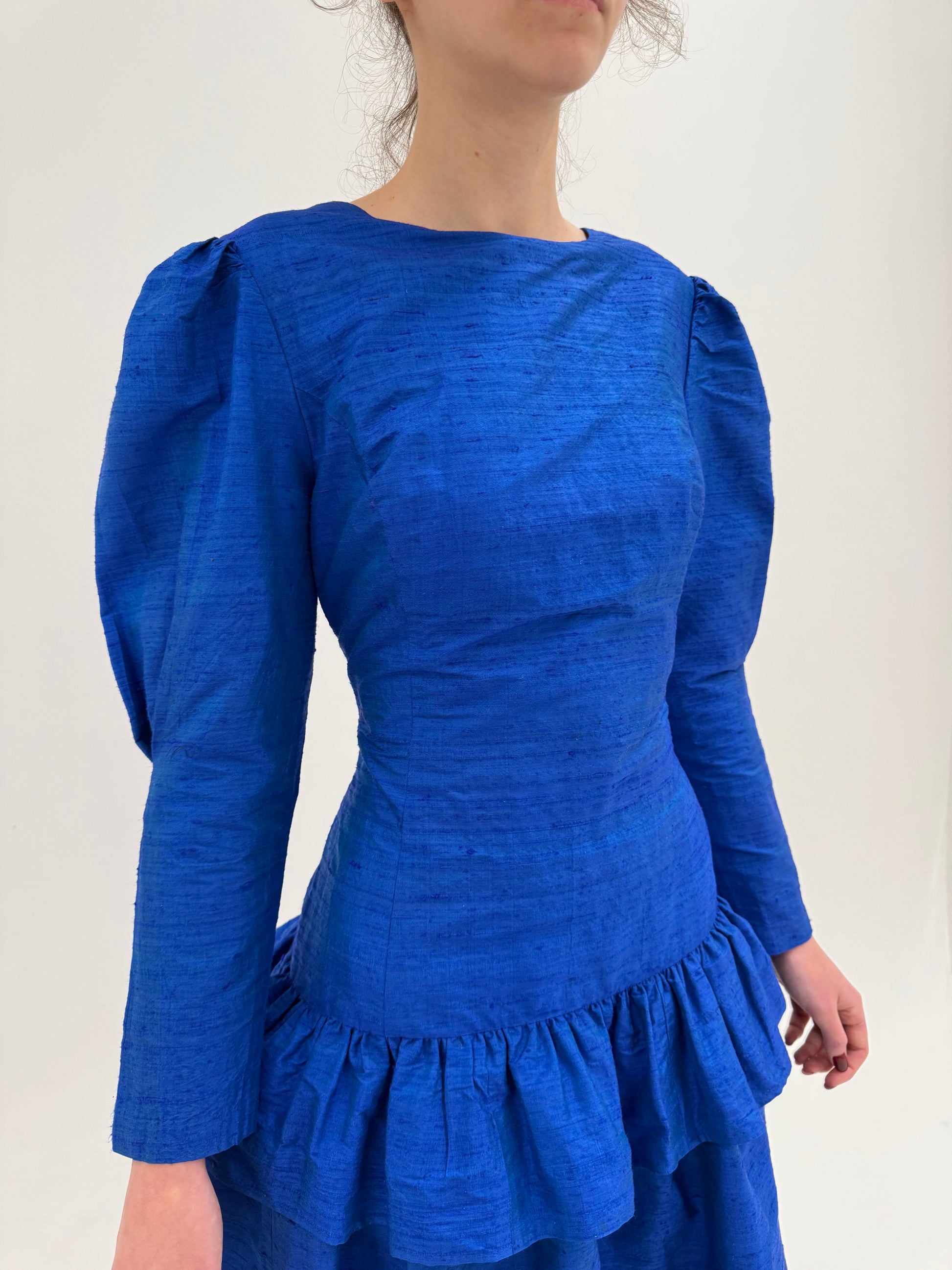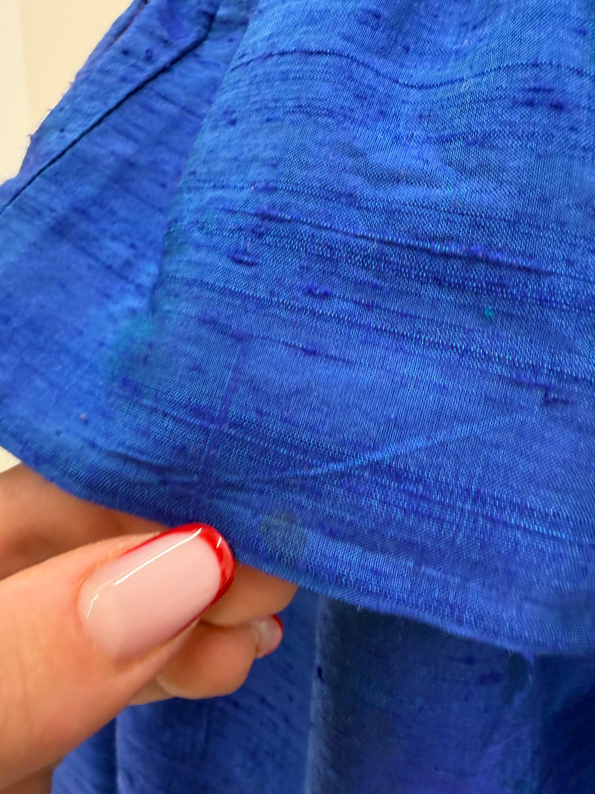 Rochie vintage albastru regal din mătase naturală dupioni groasă