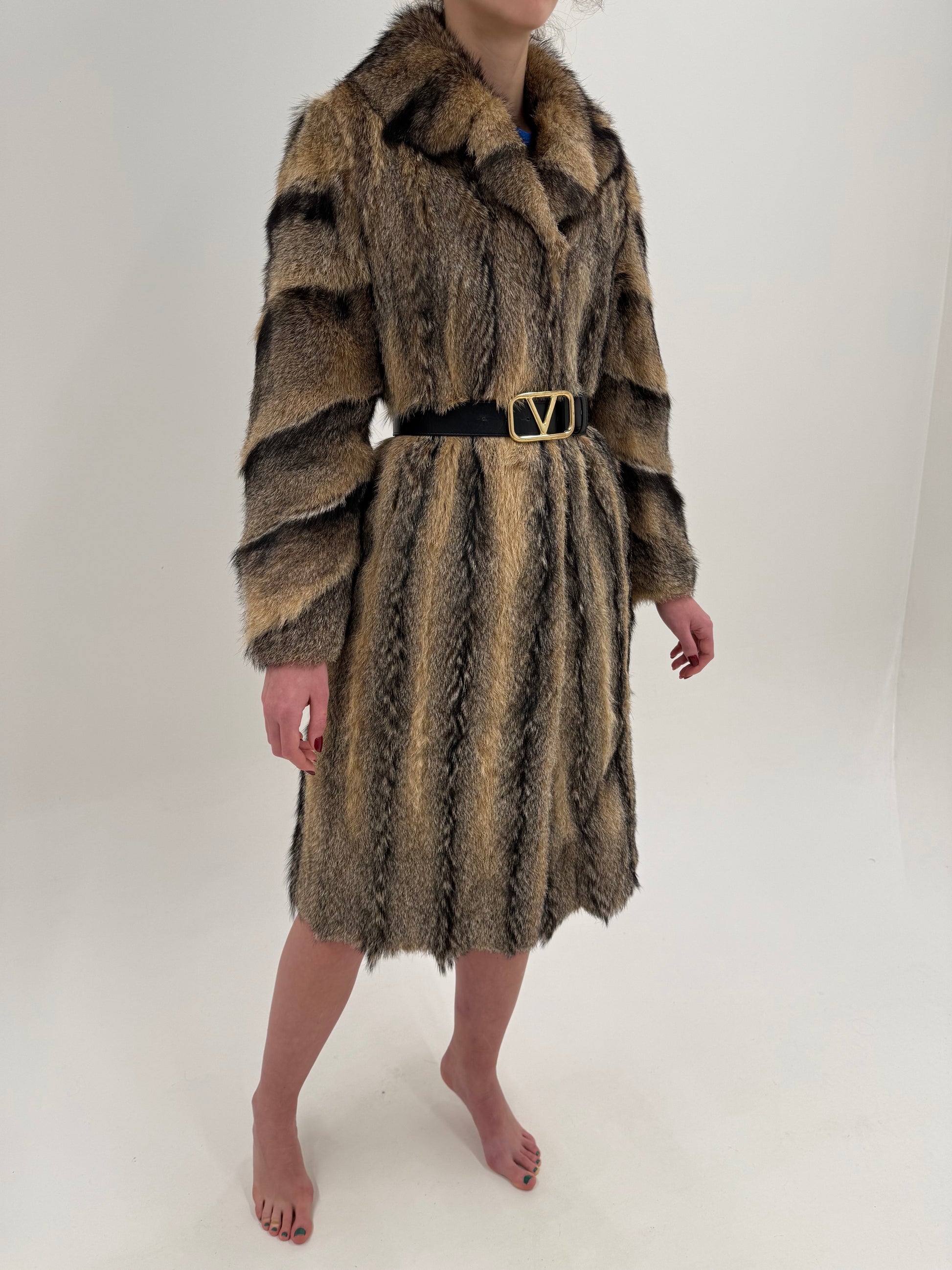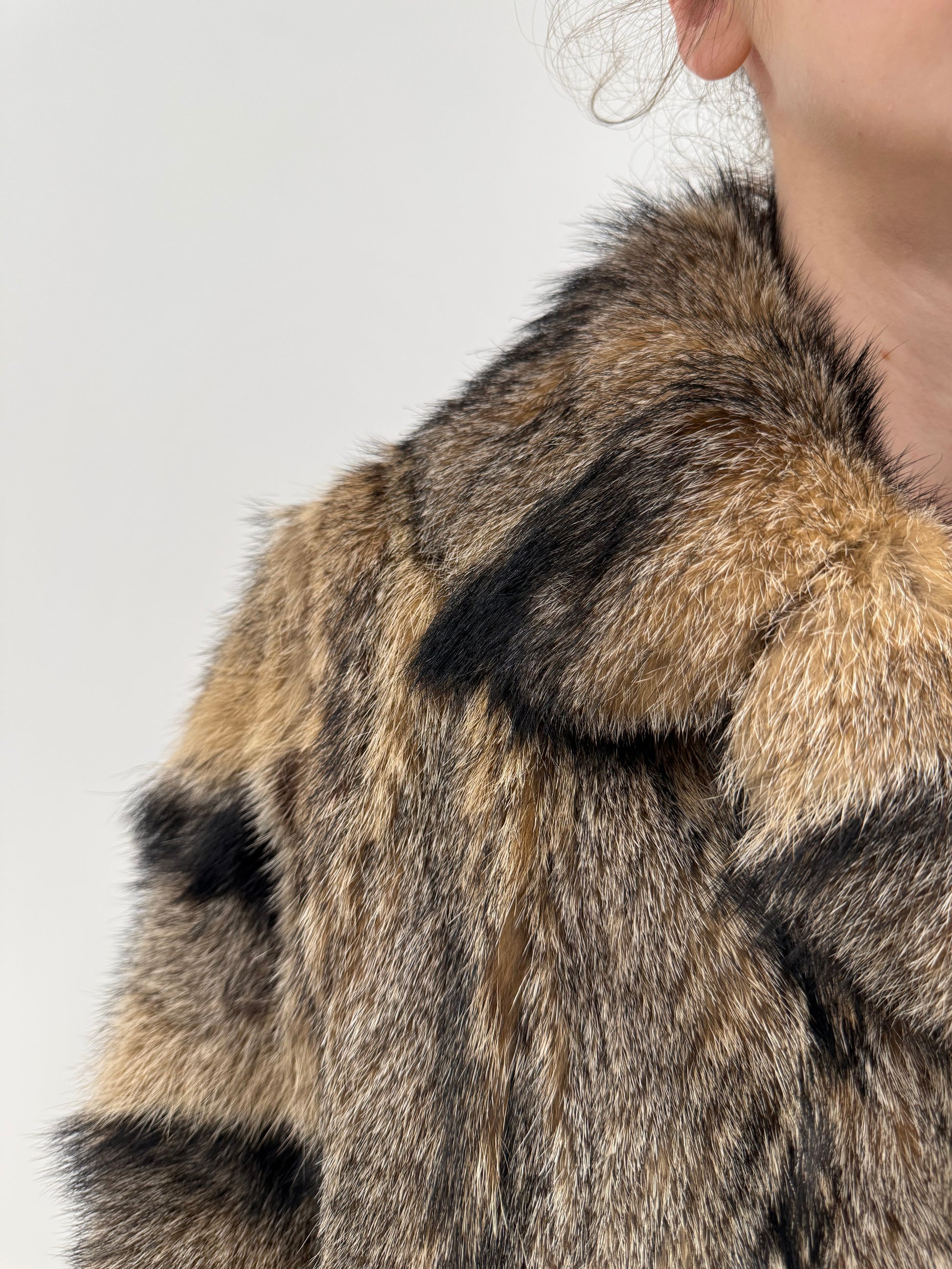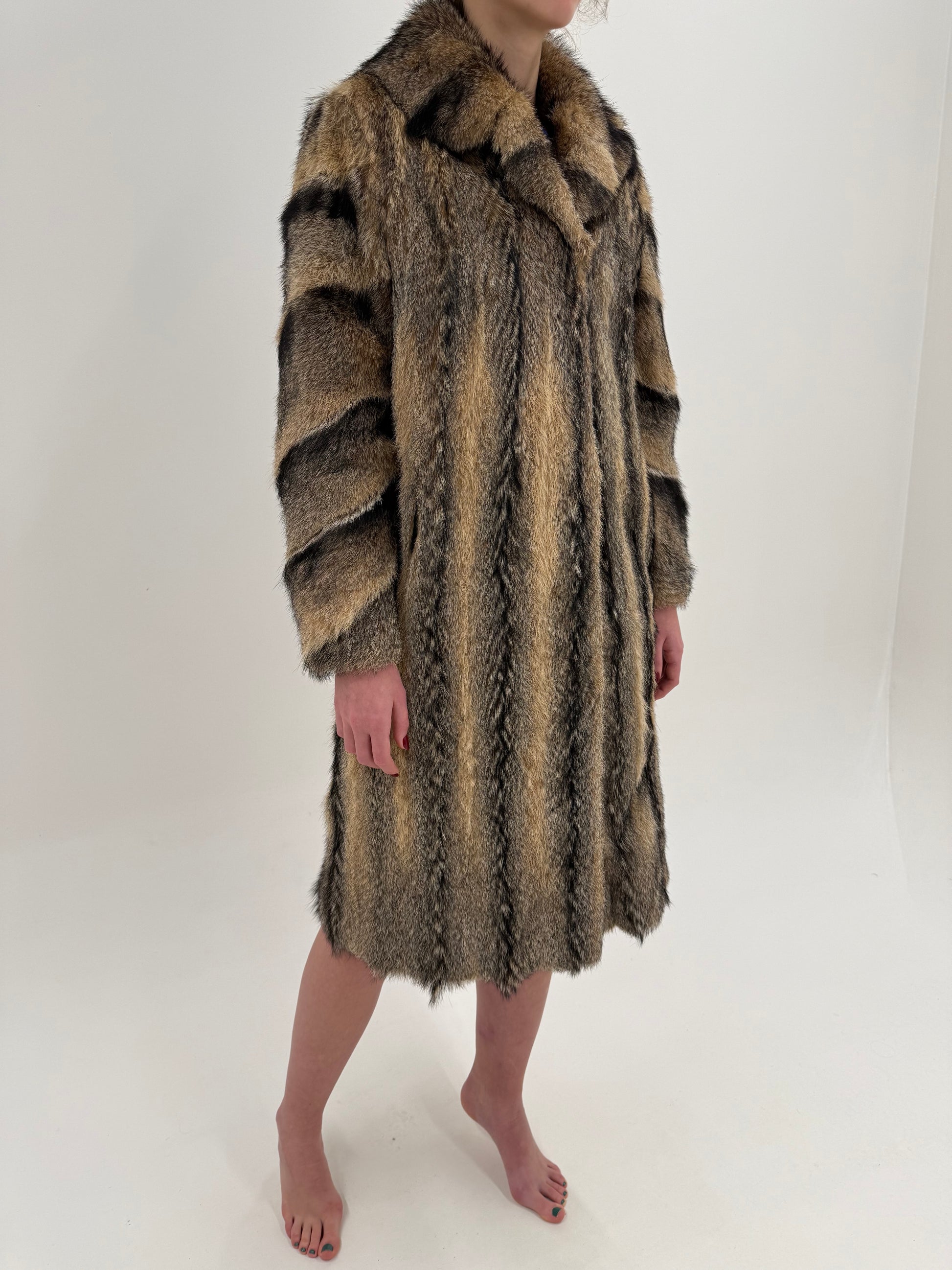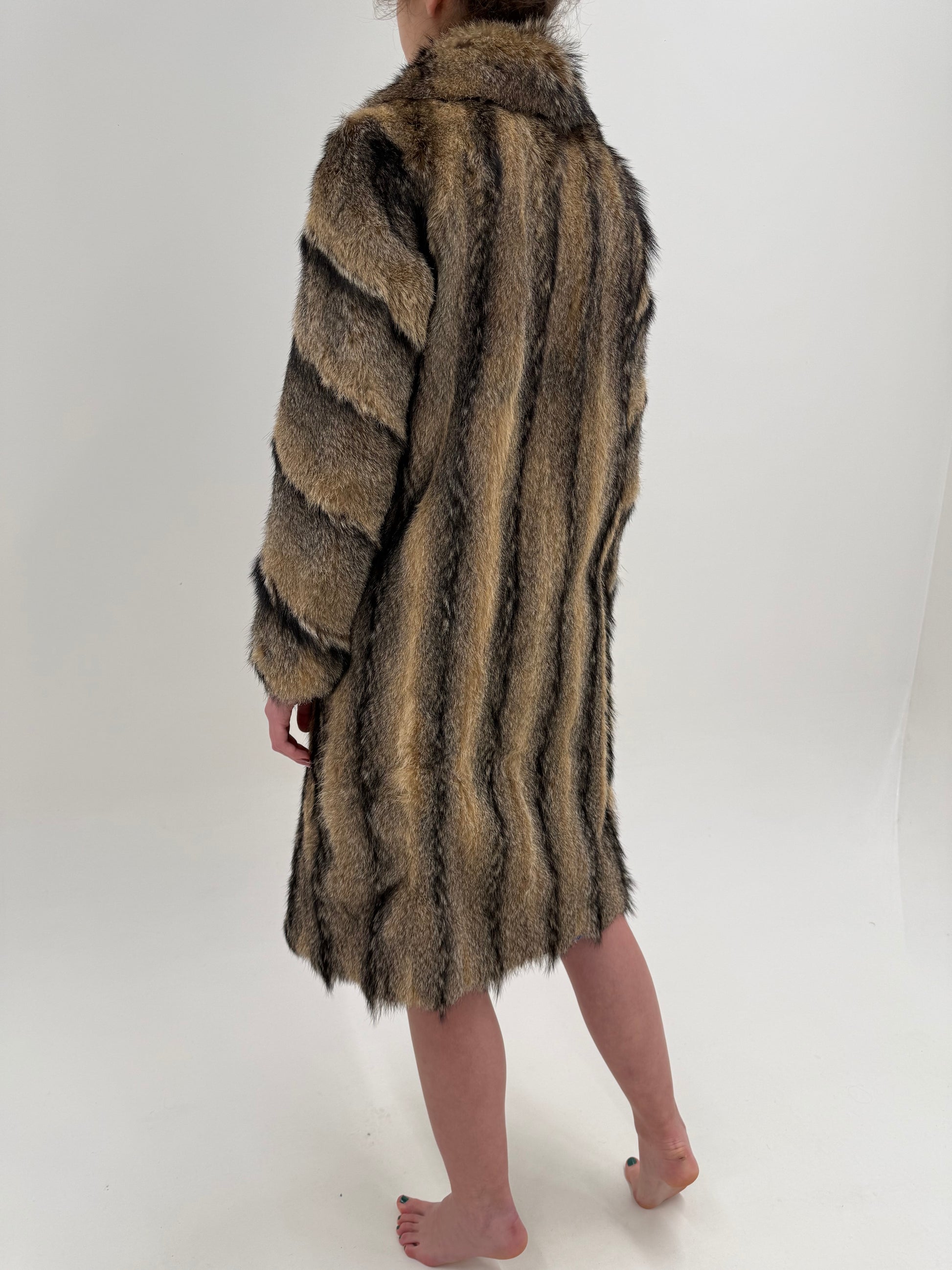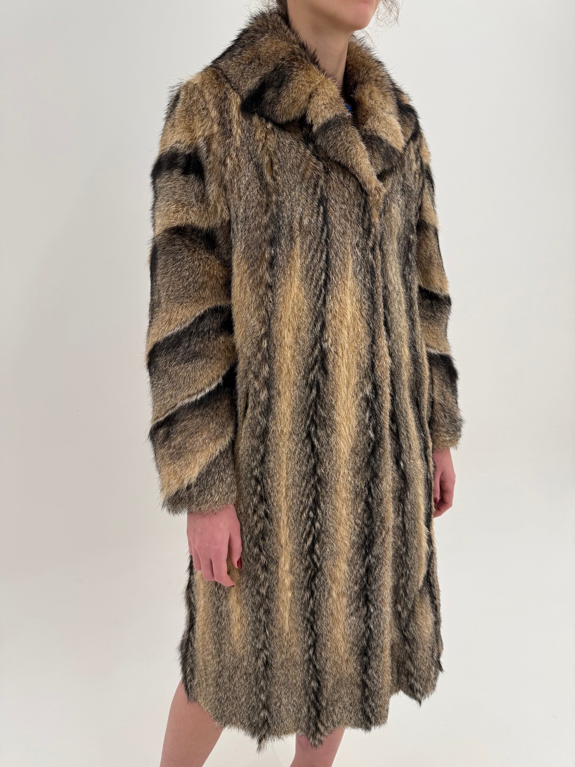 Blană naturală de enot în dungi naturale și combinație superbă de culori