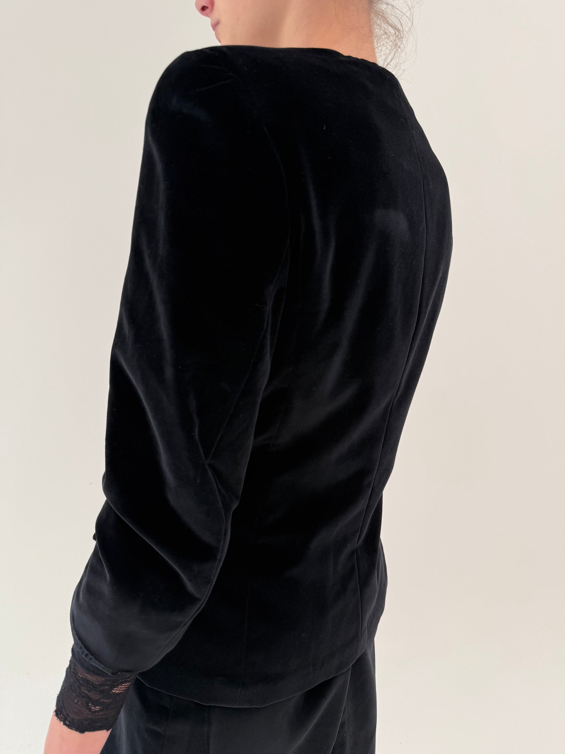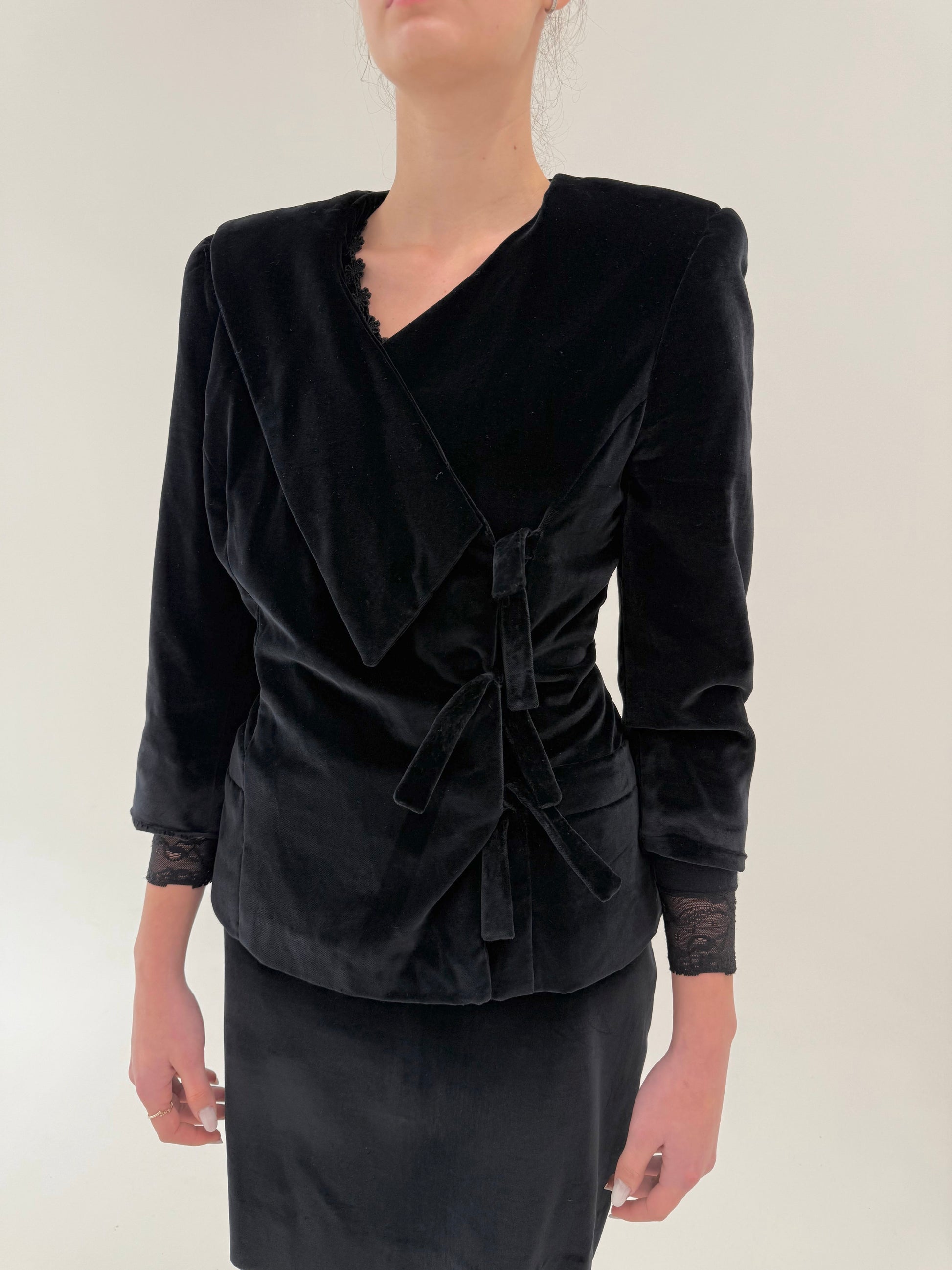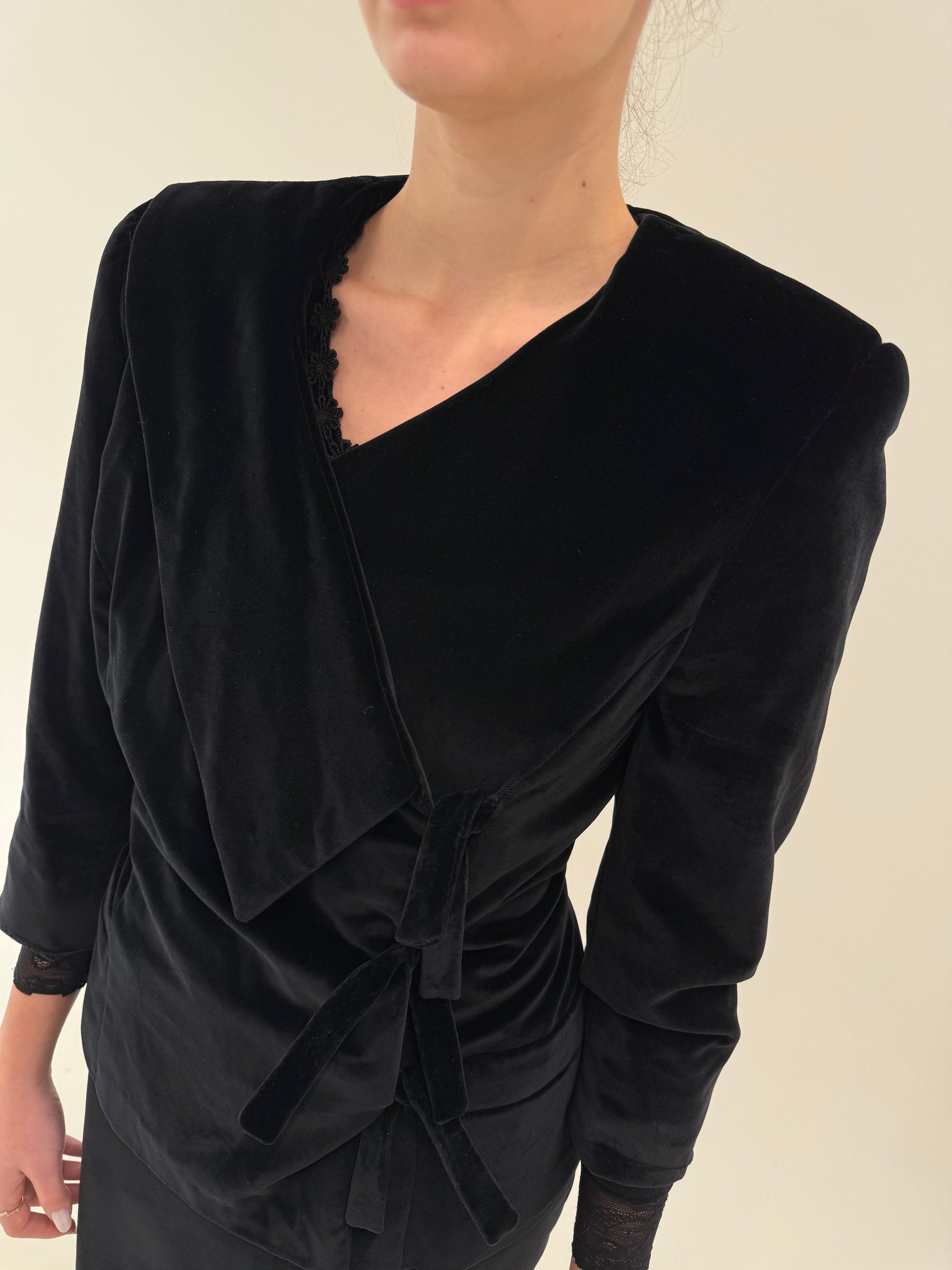 Deux piece vintage din catifea cu sacou cambrat asimetric de la zi la seară