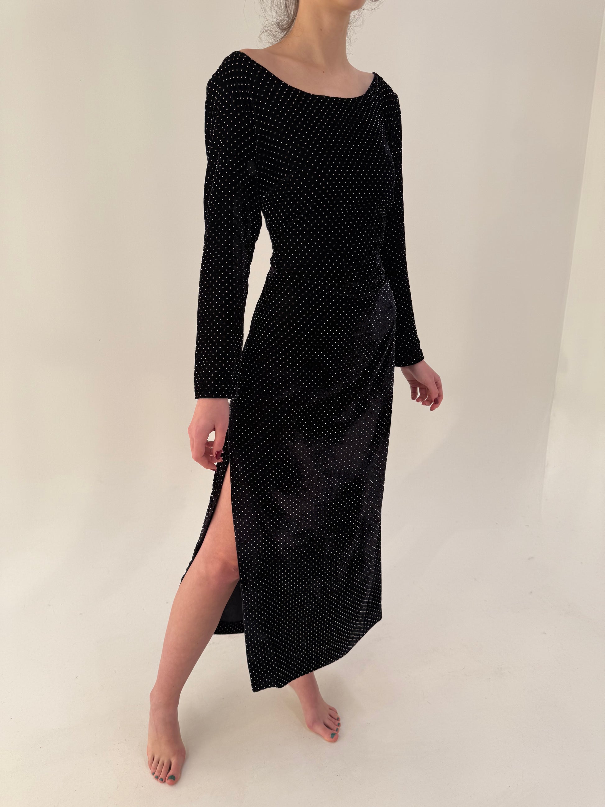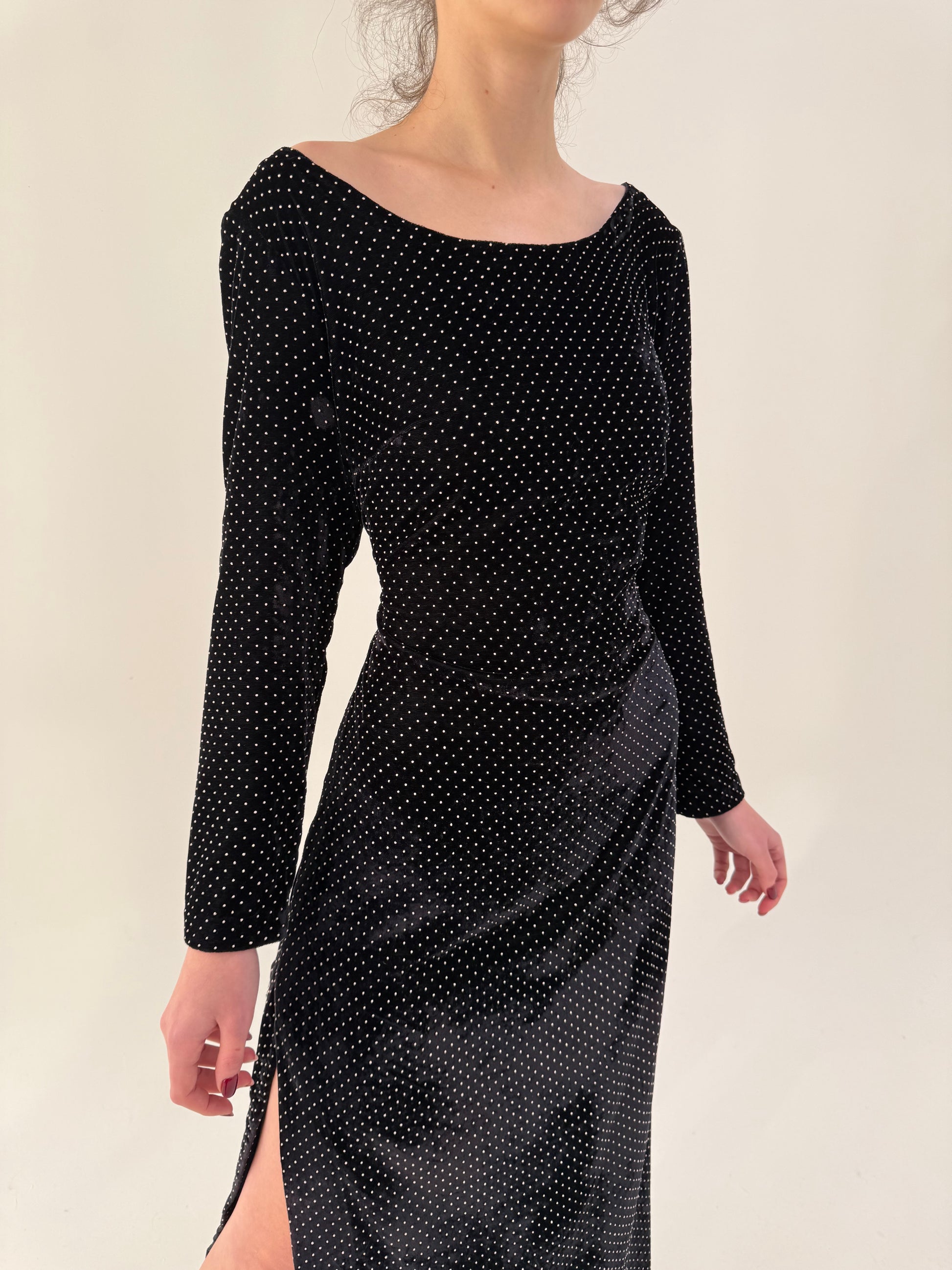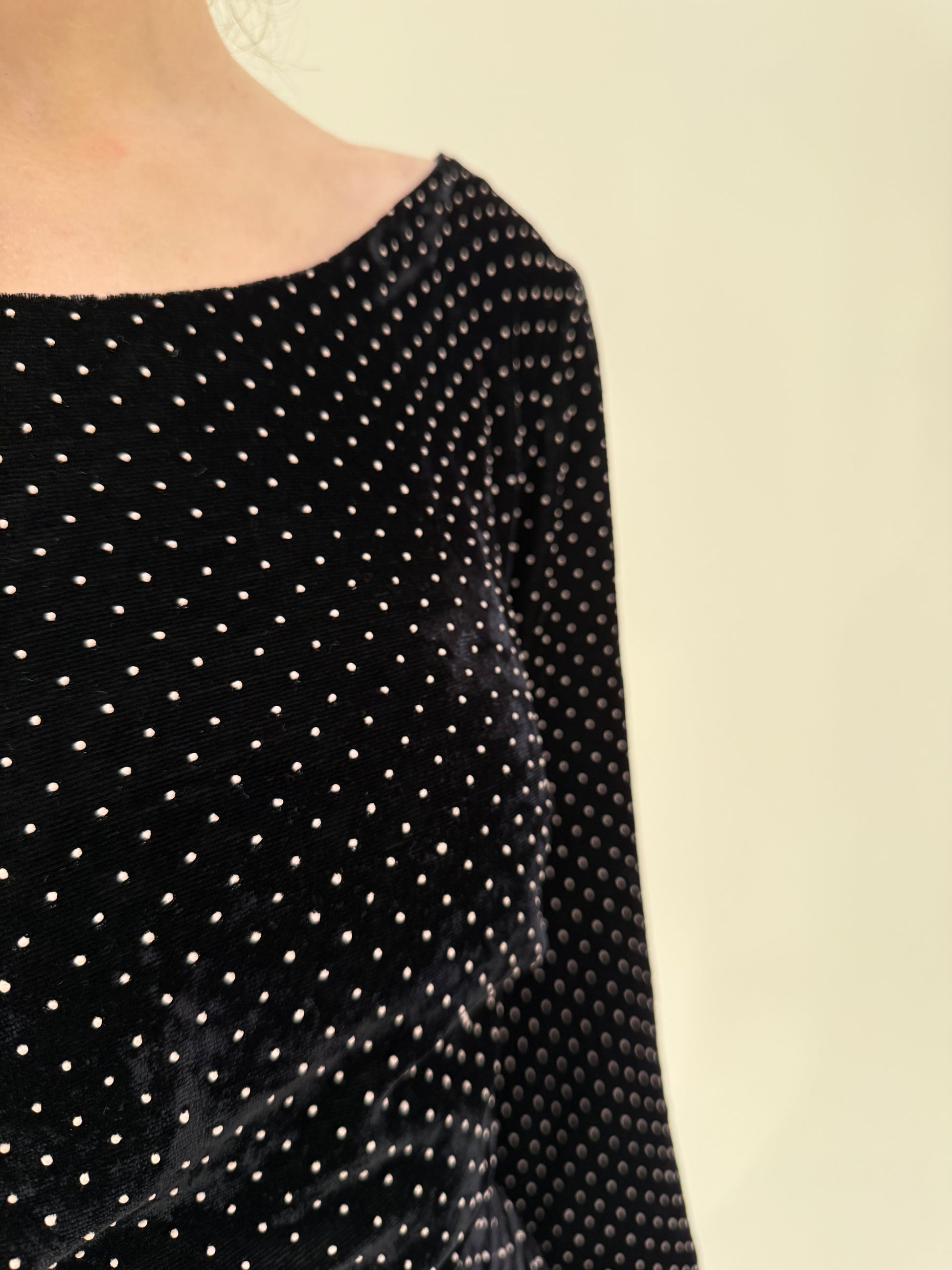 LBD vintage maxi cu buline texturate ivoire și decolteu bărcuță din catifea