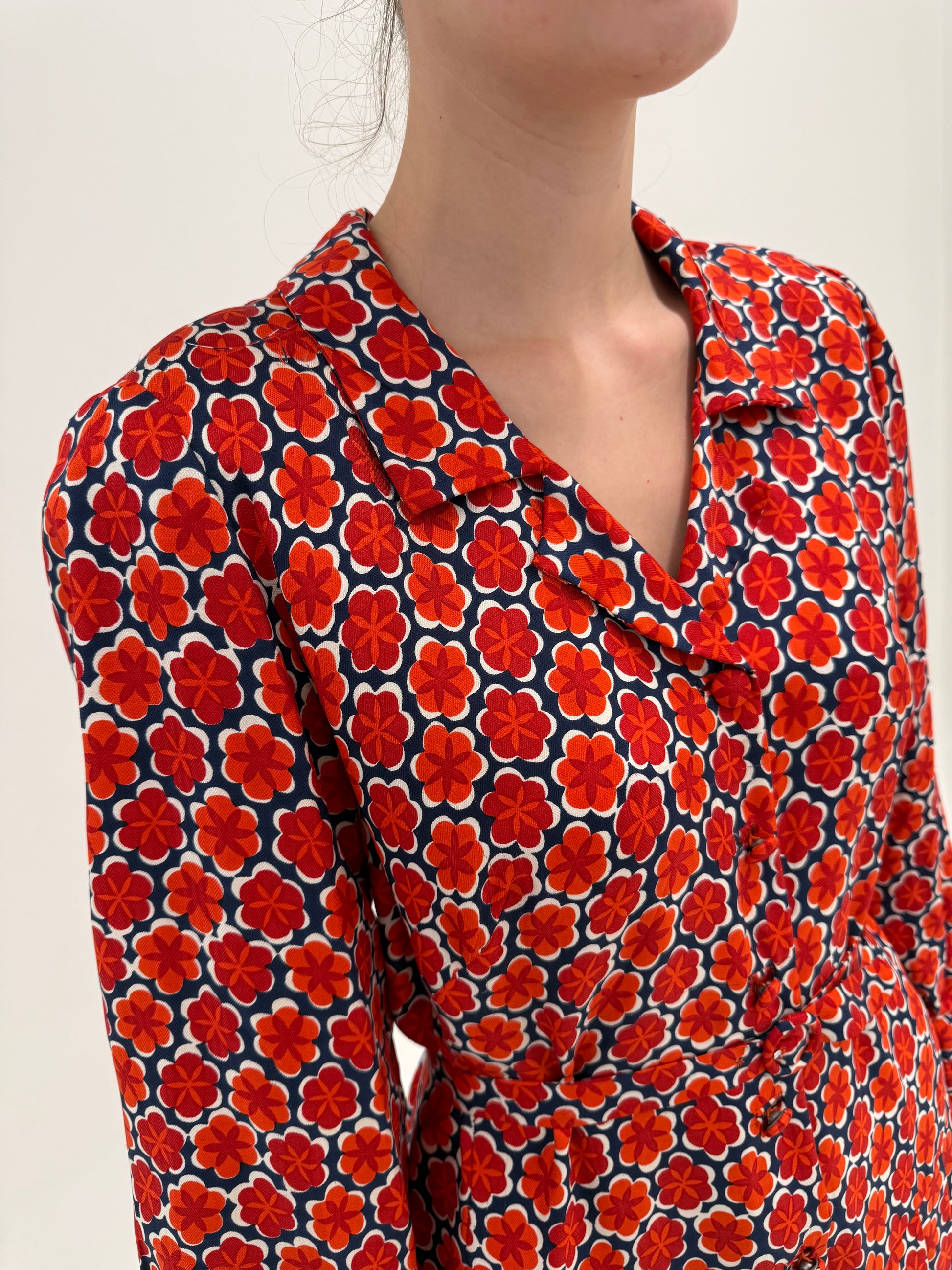Rochie vintage din mătase naturală în combinație clasică de culori