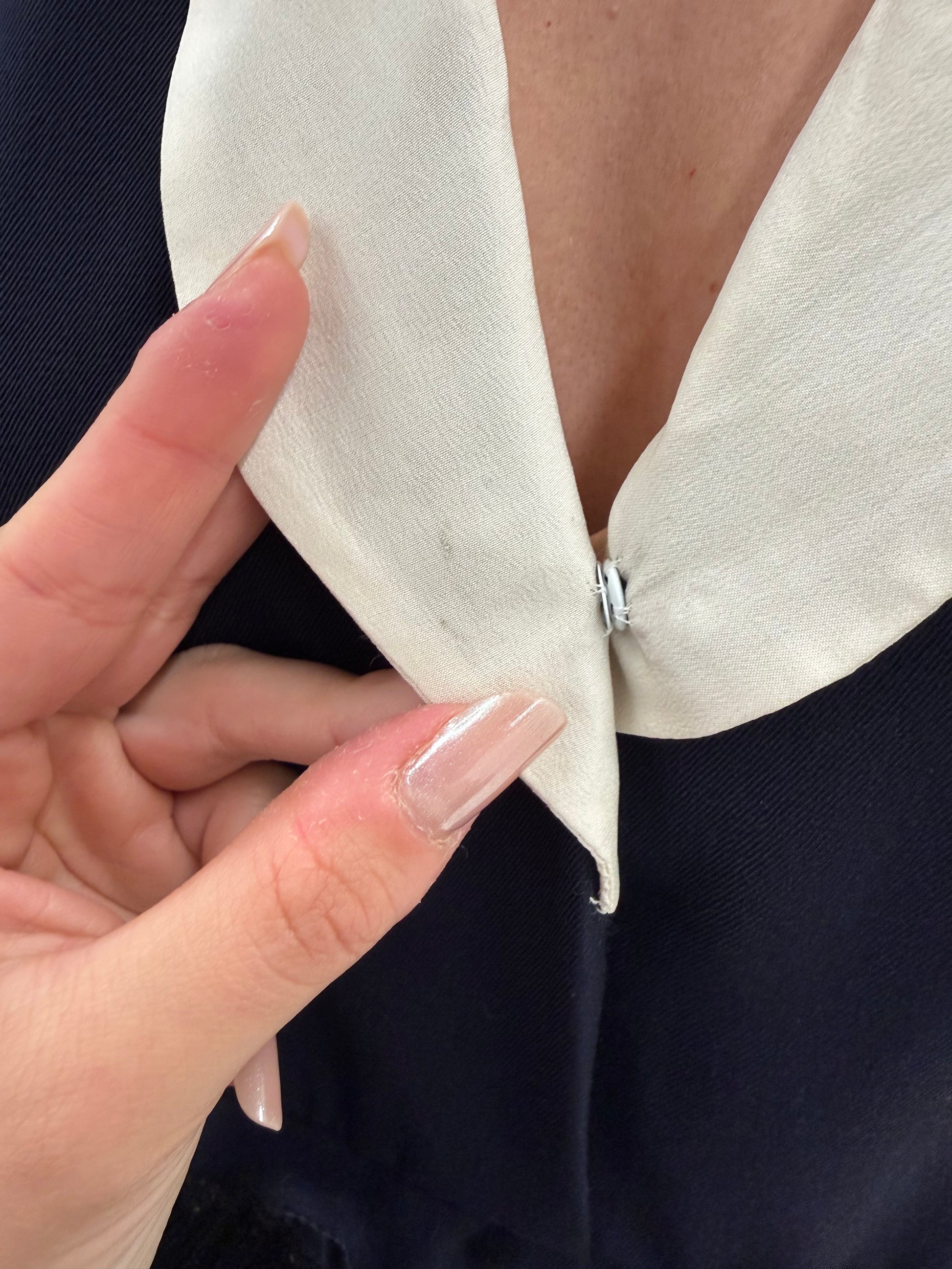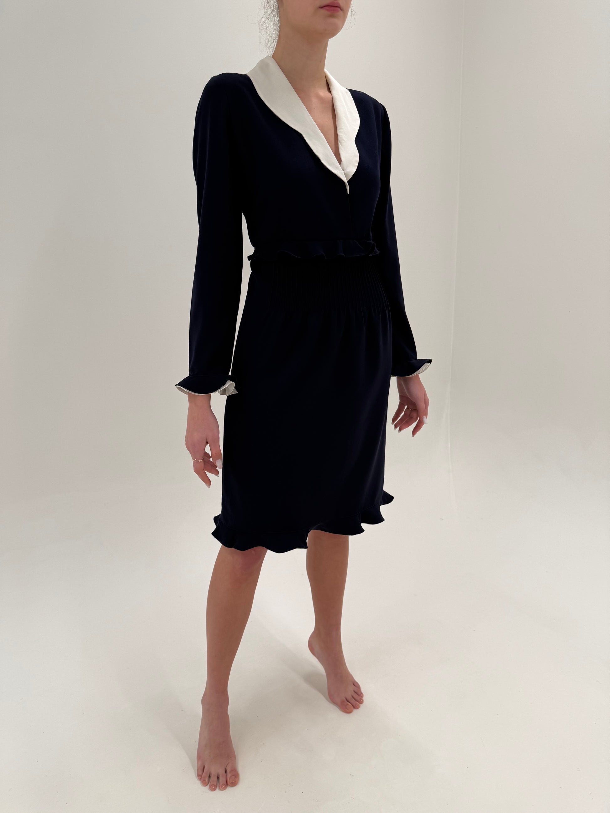 Rochie vintage în croi elaborat din lana extrafina și mătase cu guler contrastant