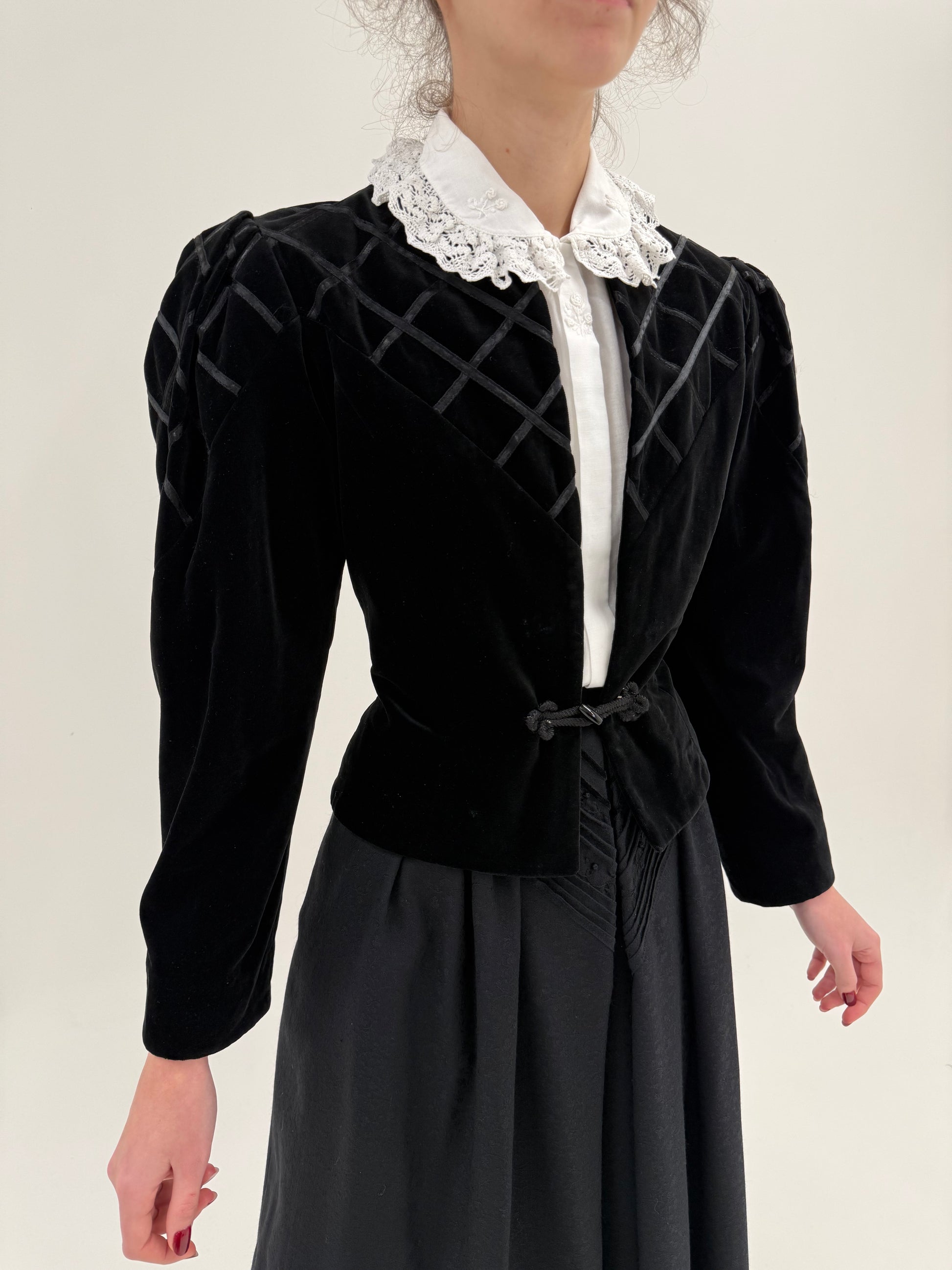Sacou vintage din catifea neagră cu lucrătură elaborată super cambrat