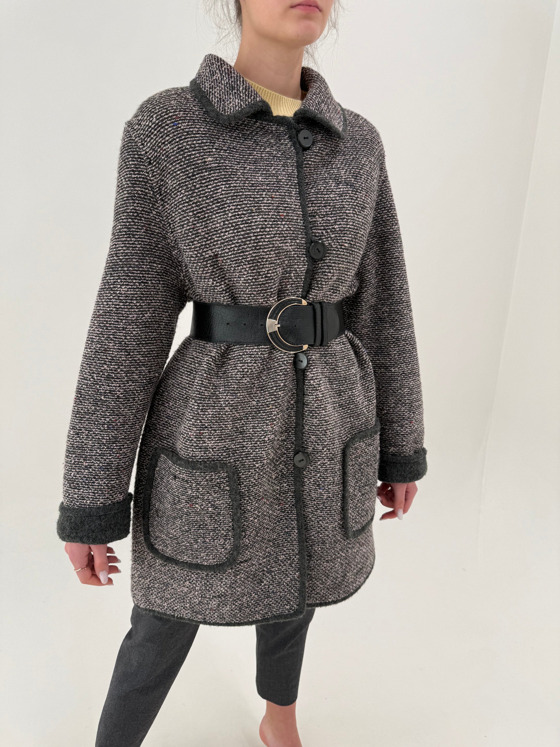 Perdesiu de primăvară cu influențe casual powder pink cu gri