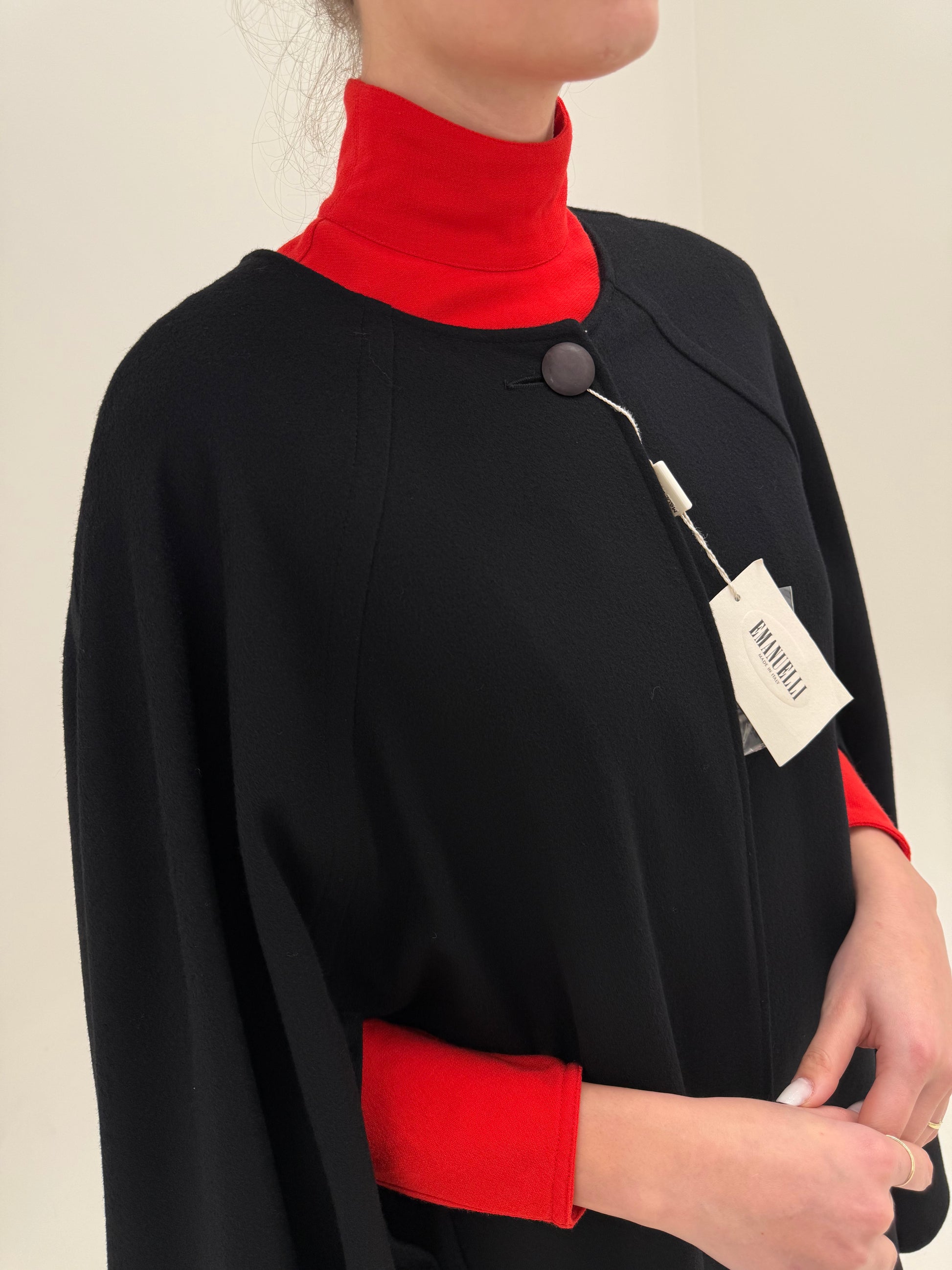 Capa nouă neagră italiană din lanita extrafina de la zi la seară