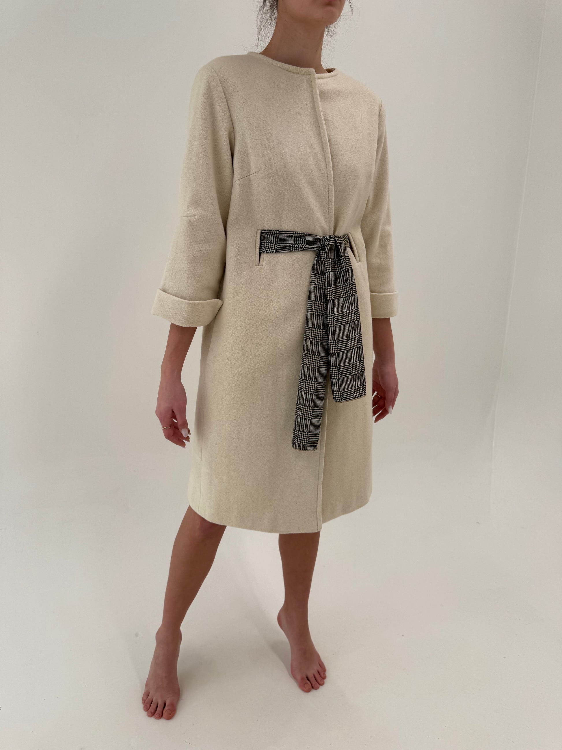 Pardesiu vintage luxury Pierre Cardin cu cordon din mătase naturală din stofă melanj