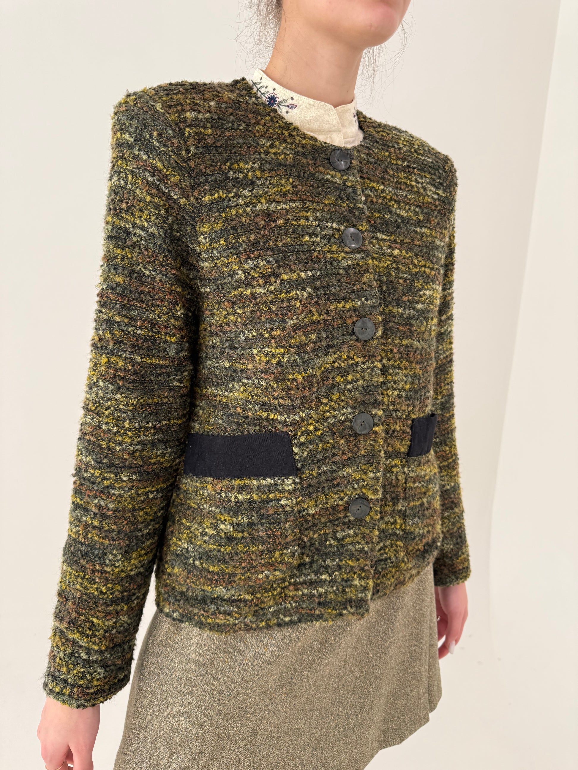 Sacou din tweed în stil chanel și croi minimalist în nuanțe superbe de verde