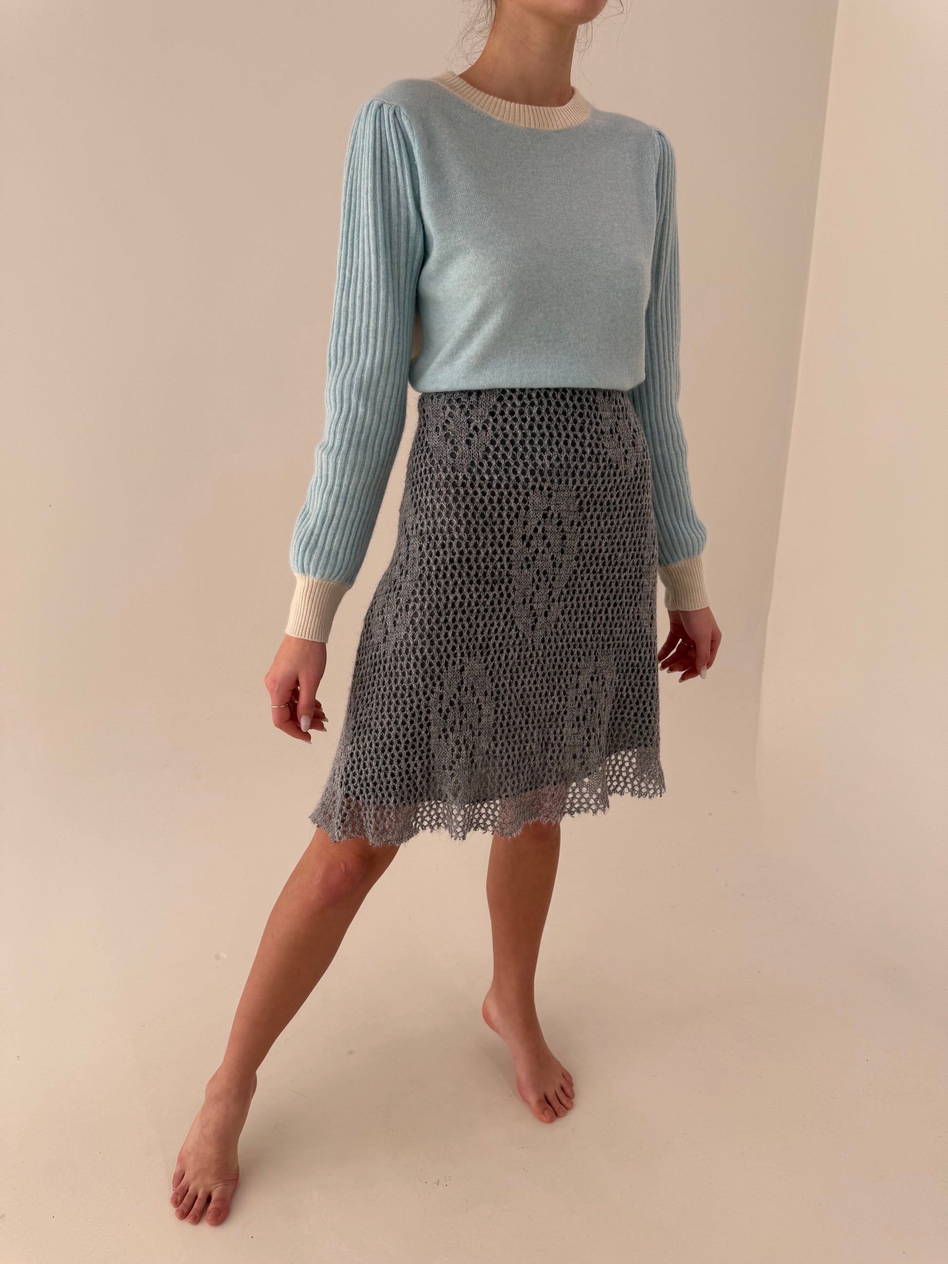 Fustă italiană din lanita macrame light gray