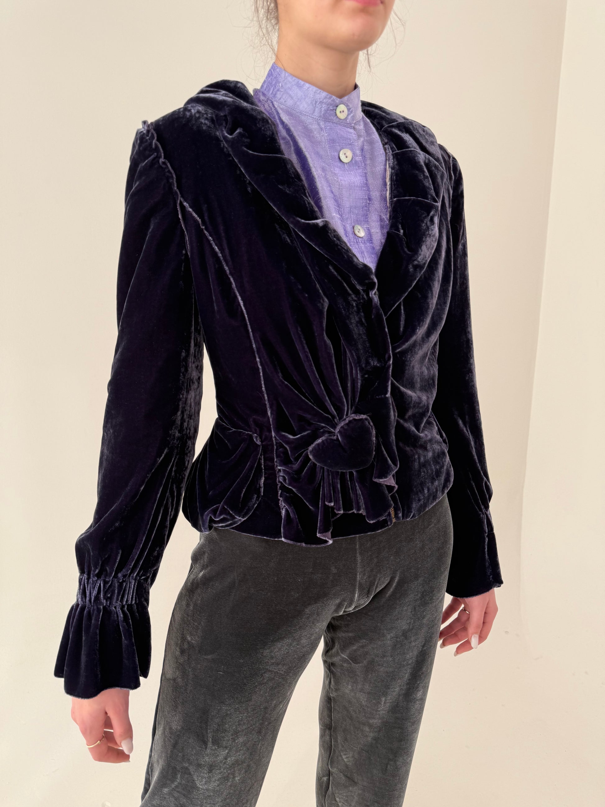Sacou ultra chic cambrat din catifea cu mătase naturală