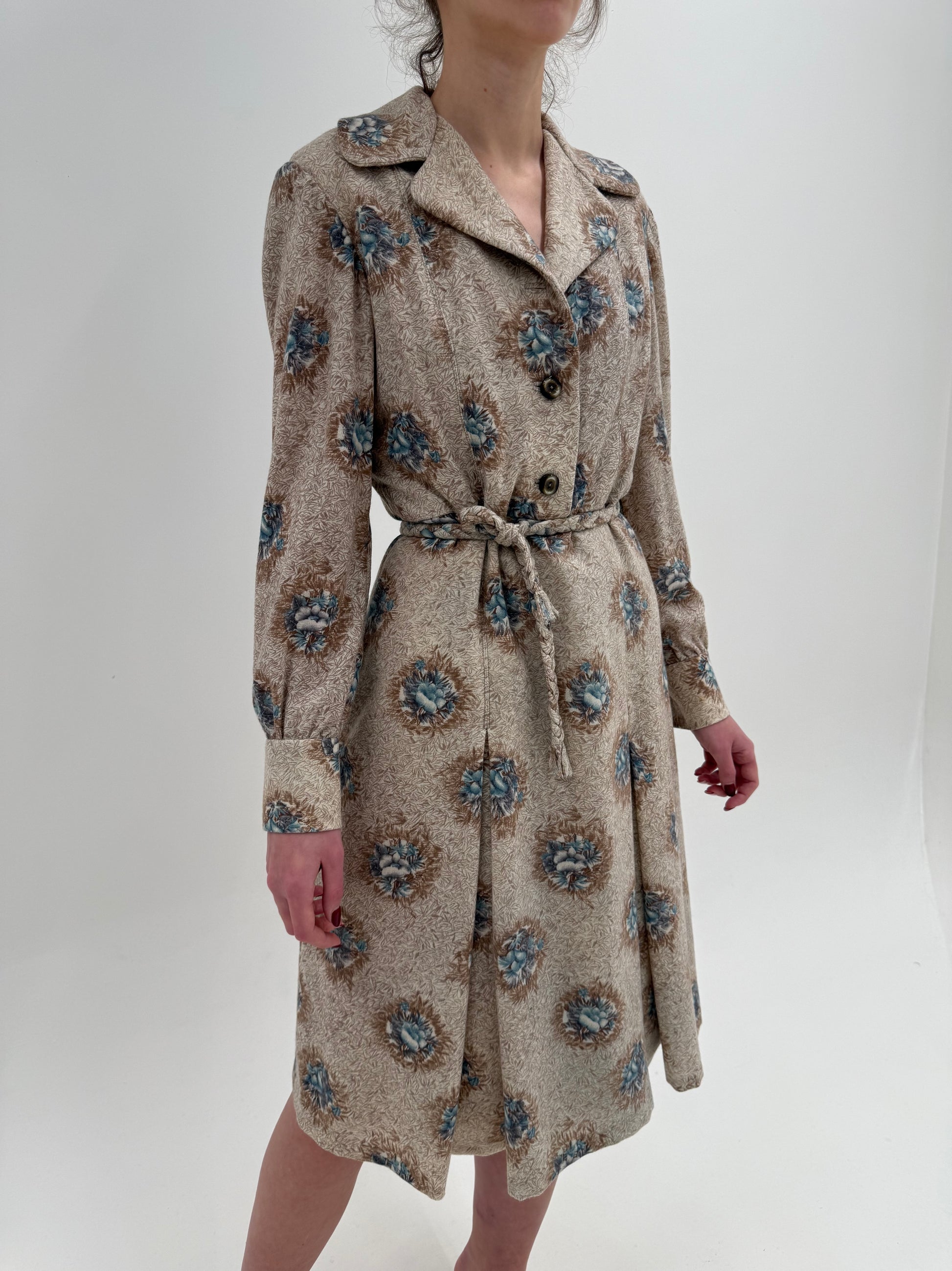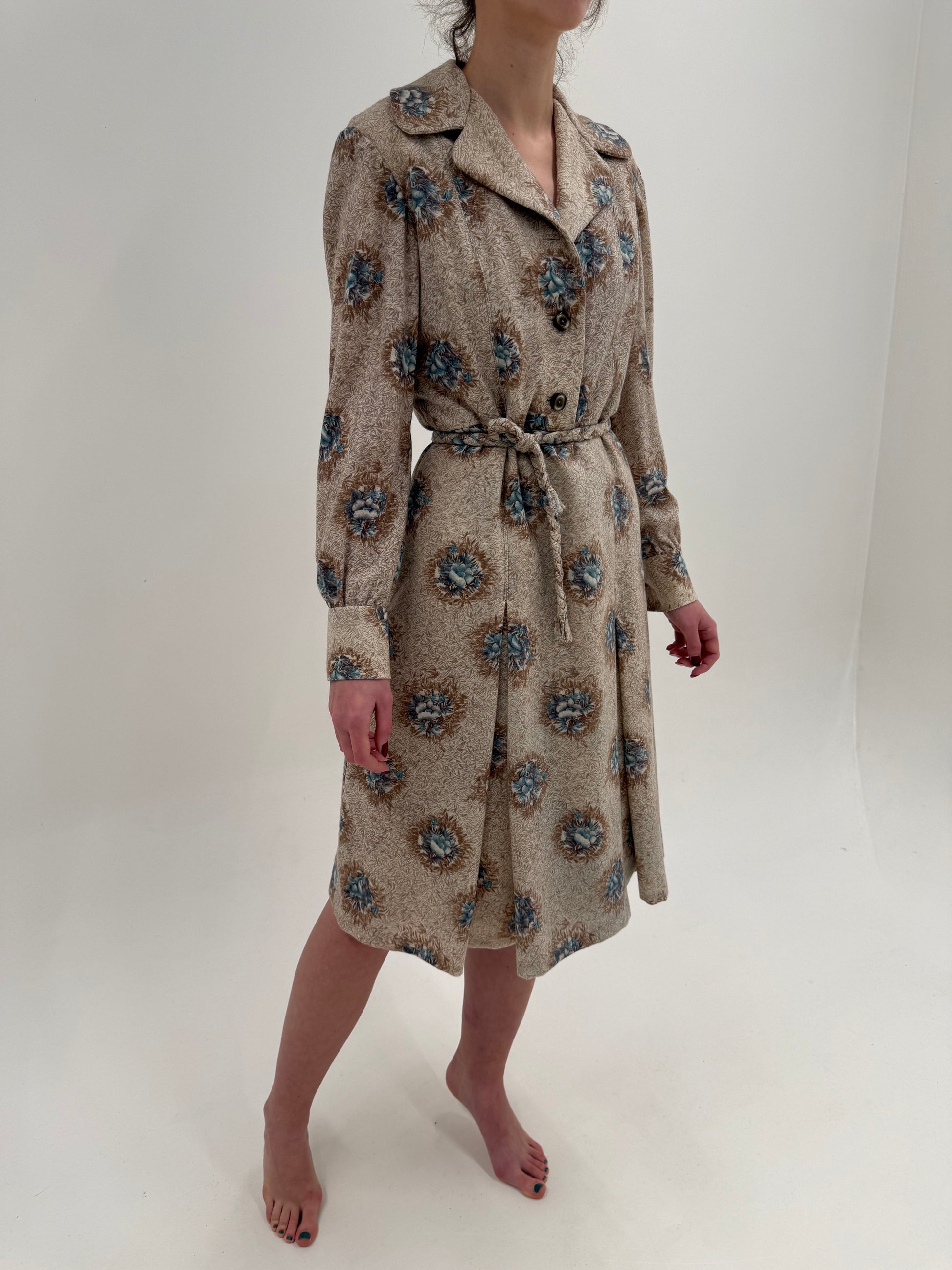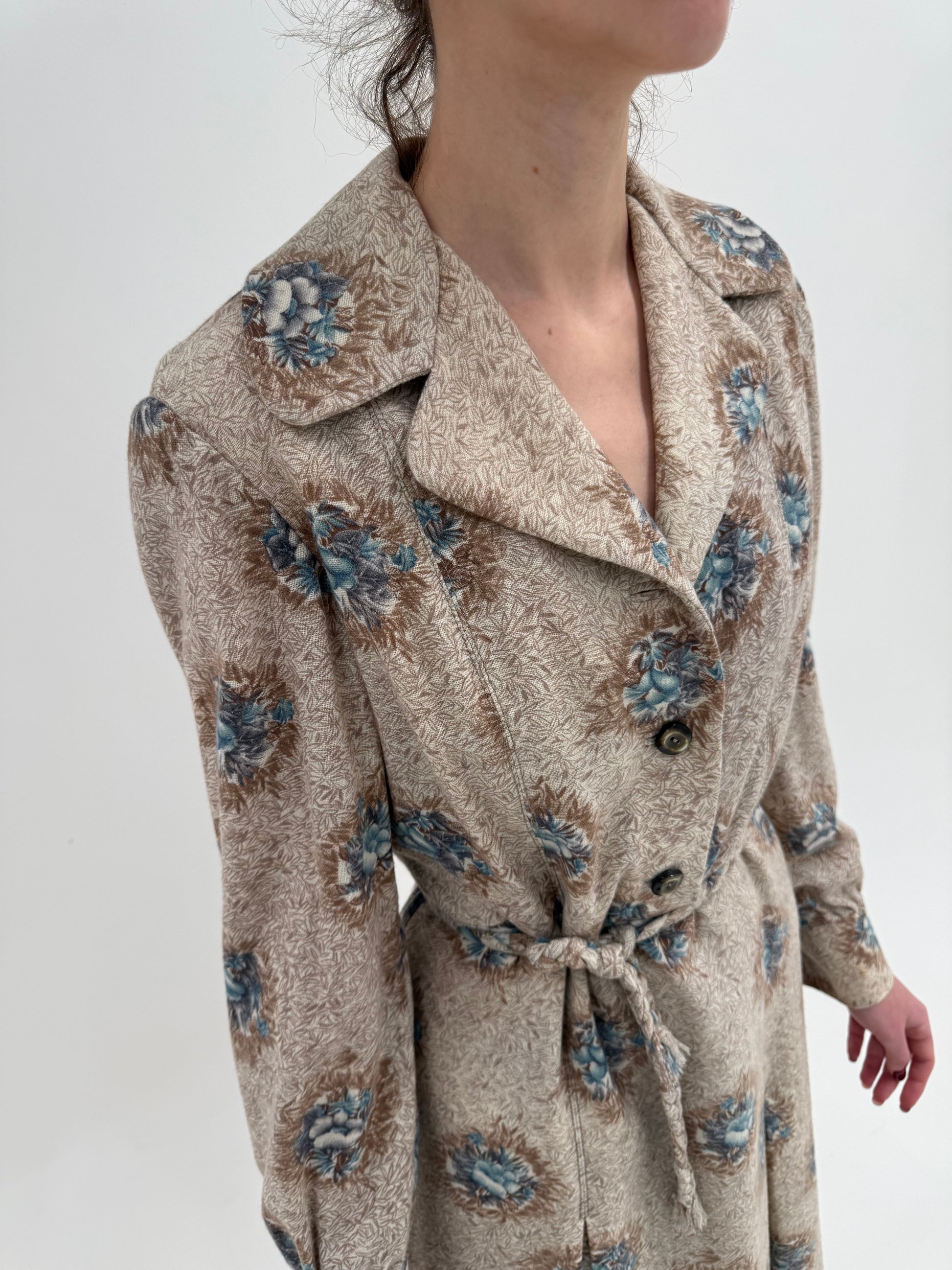 Shirt dress old vintage anii 70 din lana plină extrafina cu talie marcată
