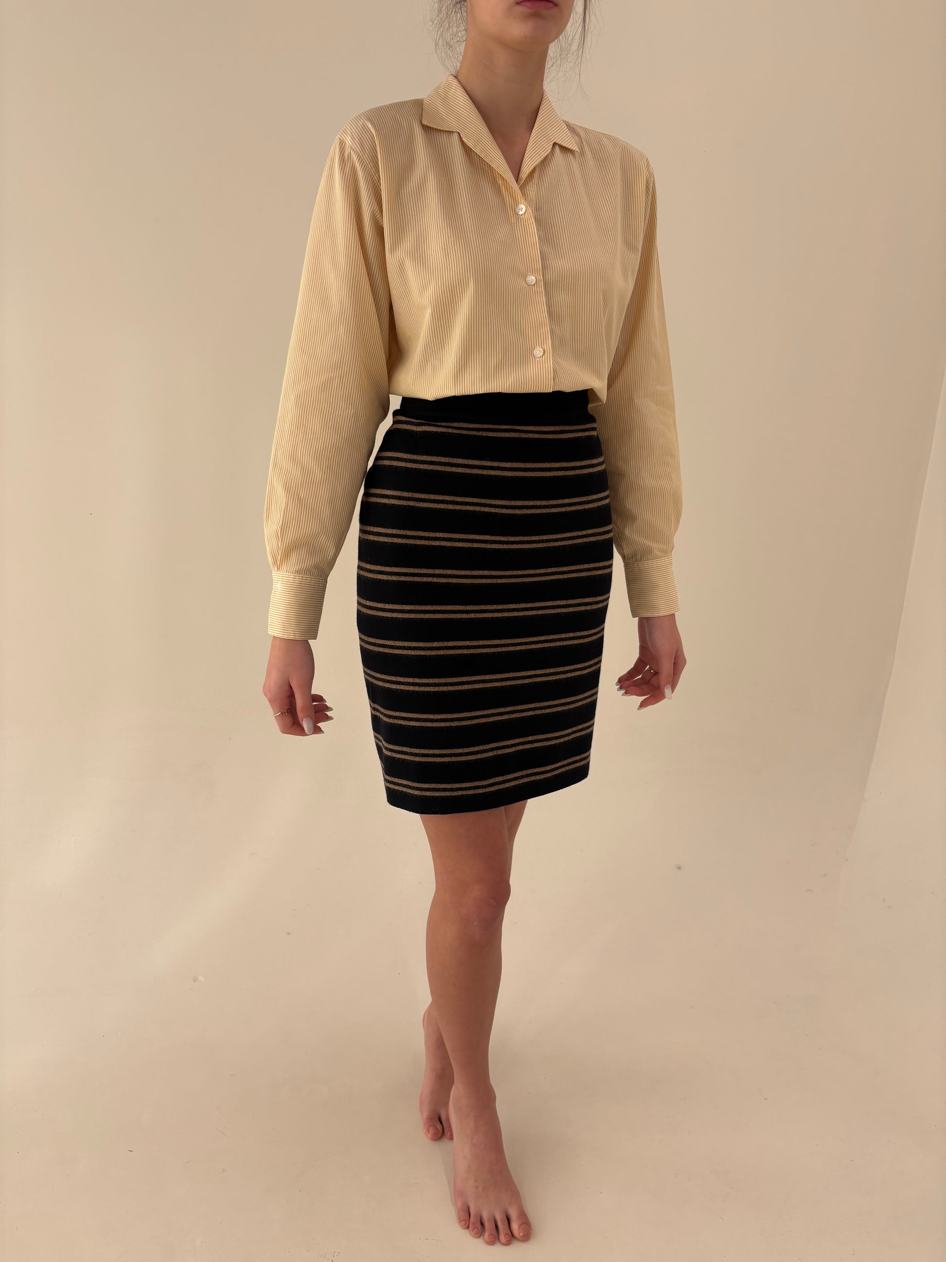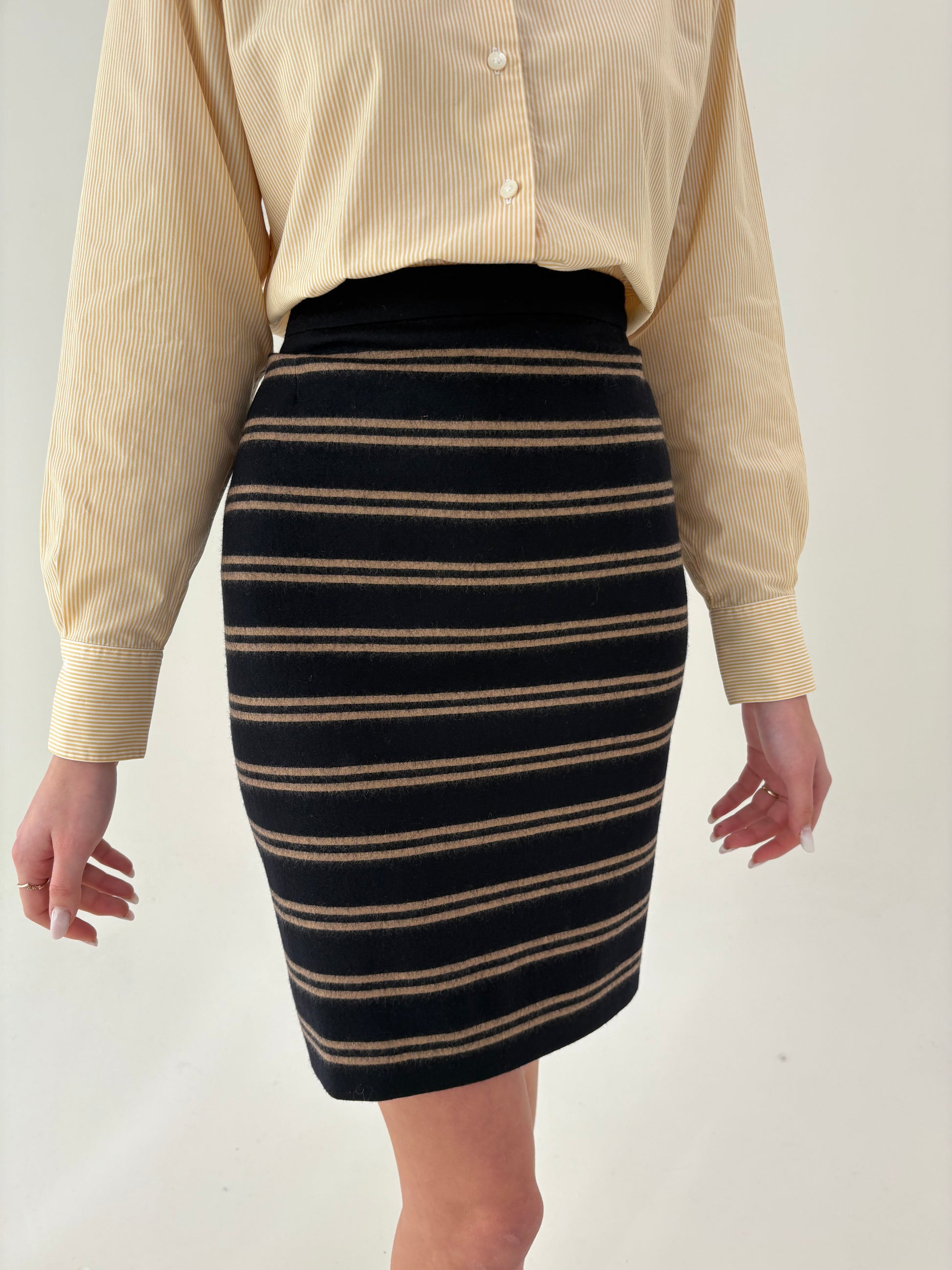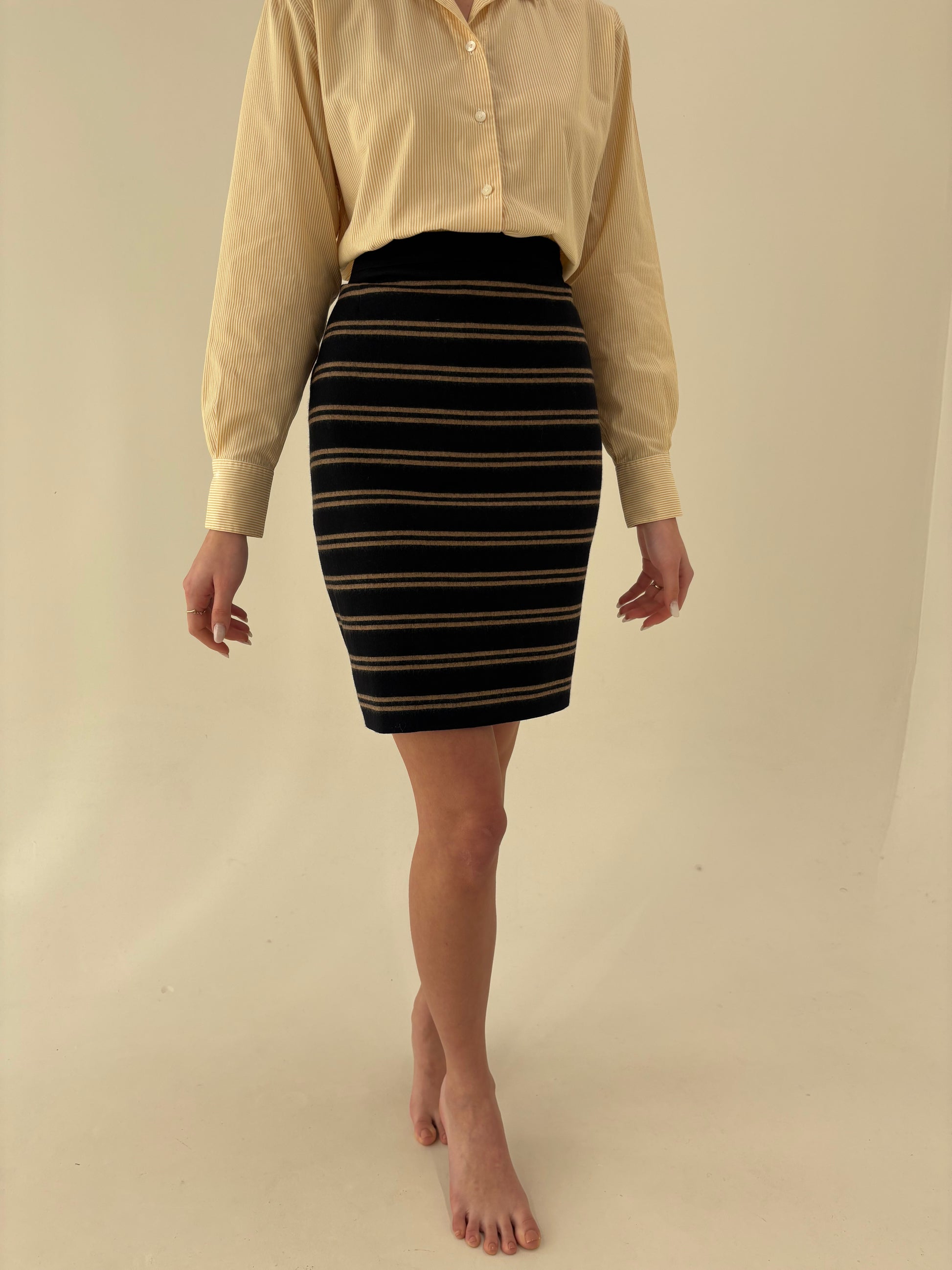 Fustă business Hugo Boss neagră cu dungi fine camel