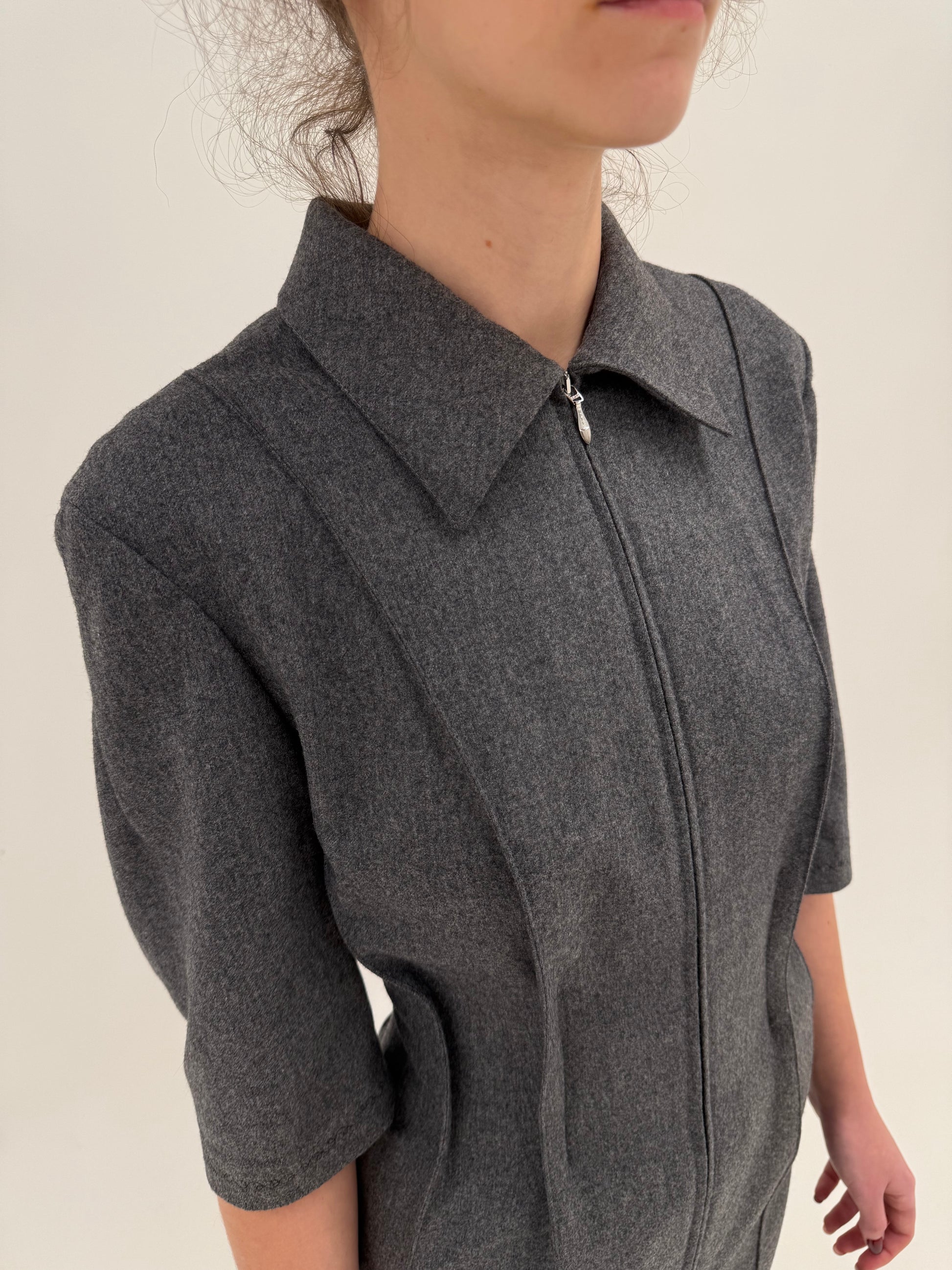 Rochie vintage anii 90 cu design arhitectural cambrata din lana plină extrafina
