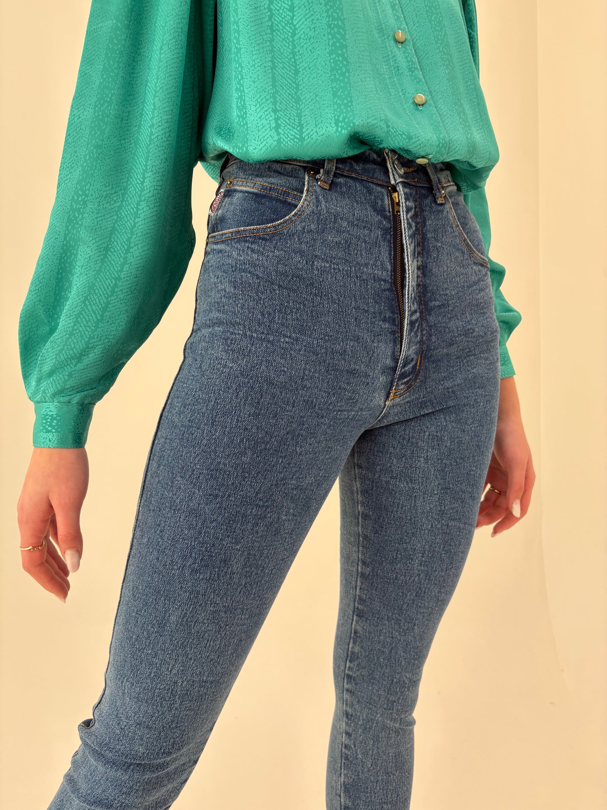 Jeans vintage ultra modelator tall din bumbac gros de piele xceptional cu talie ultra înaltă