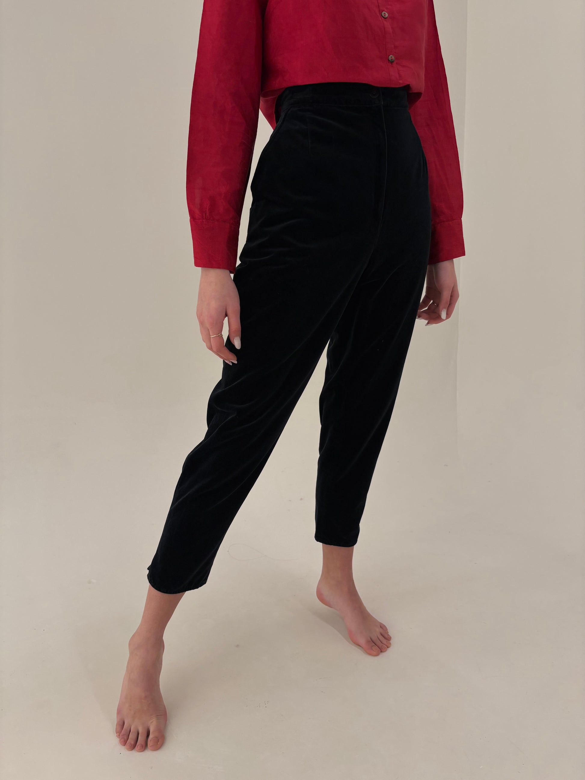 Pantaloni negri din catifea cu talie ultra înaltă mom fit de la zi la seară
