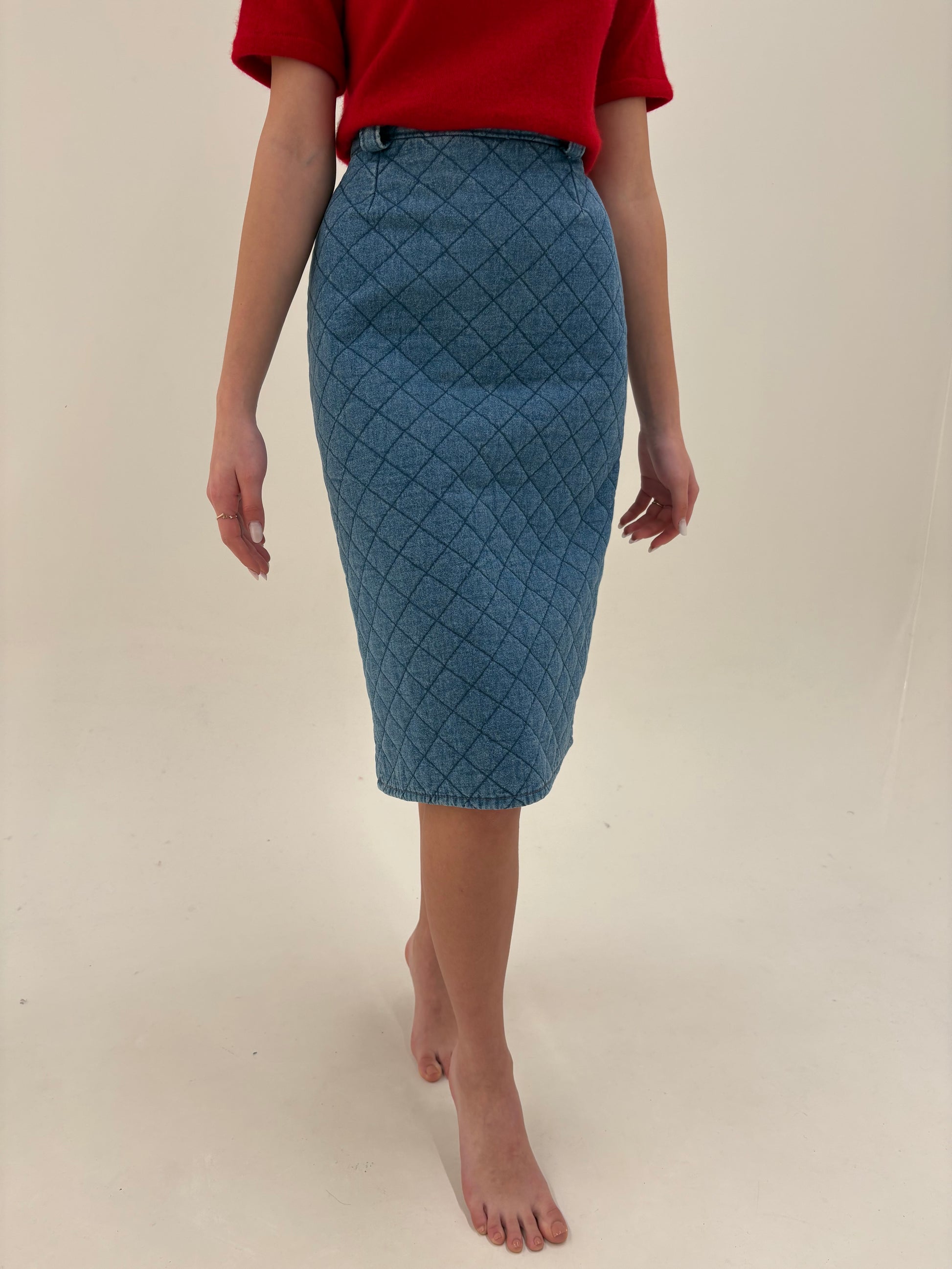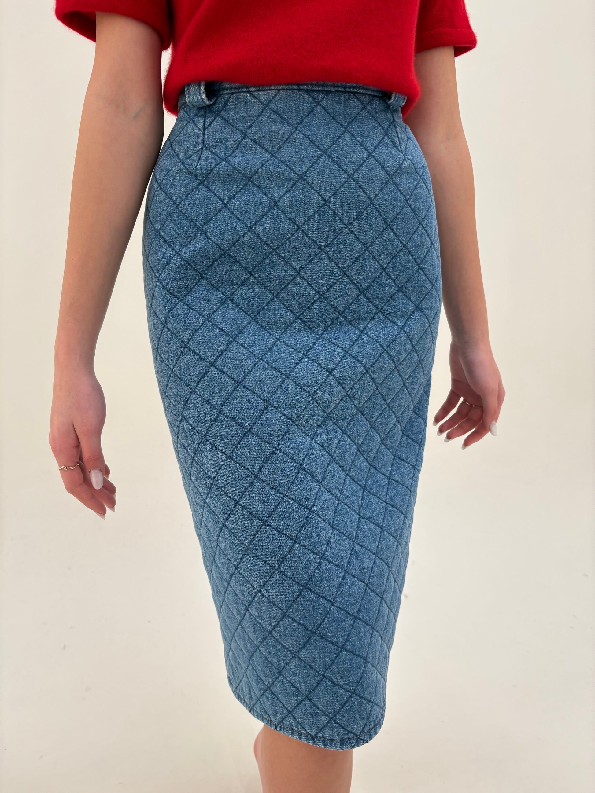 Fustă vintage uktra conică din matlase subțire de jeans cu talie ultra înaltă
