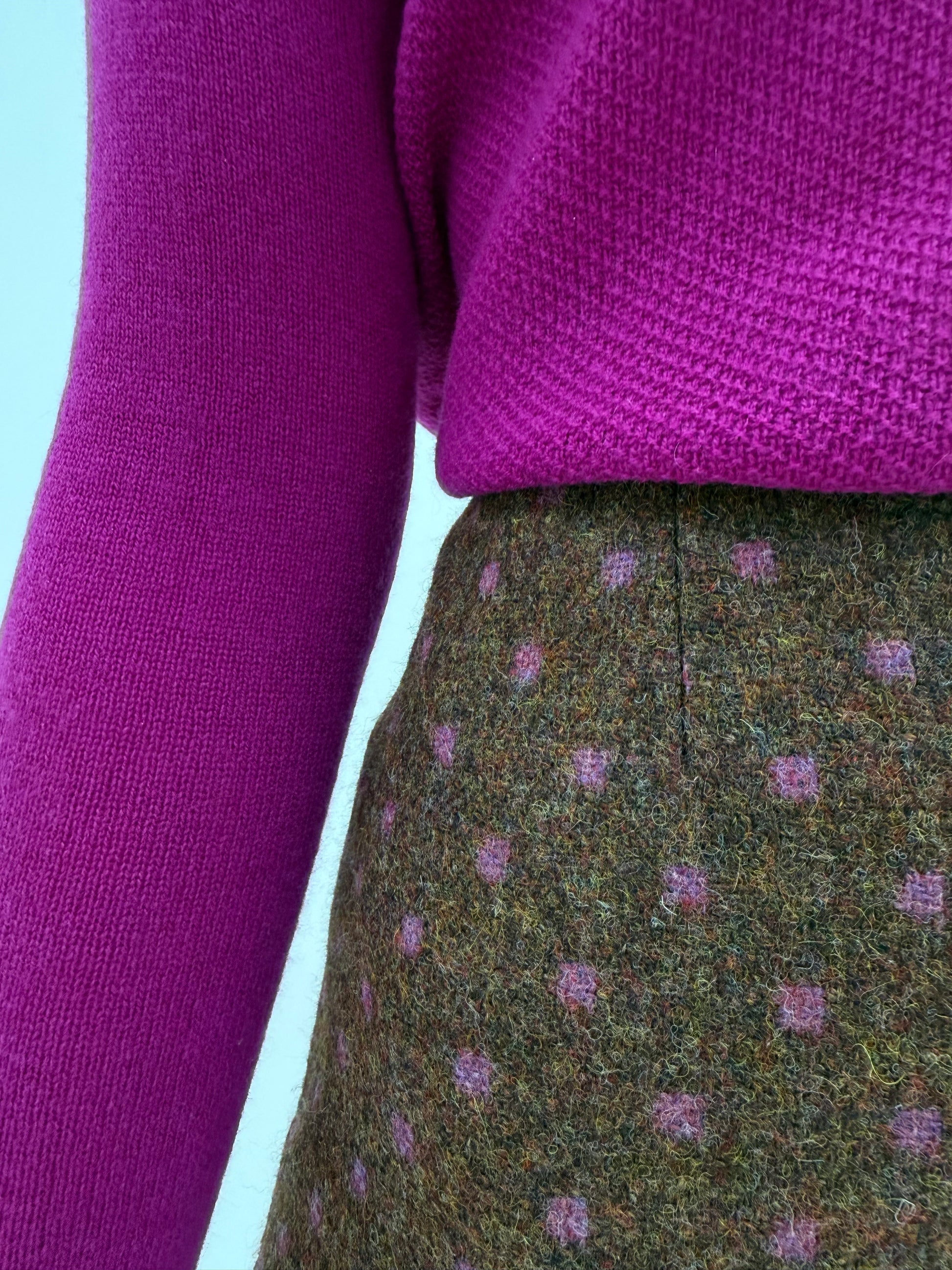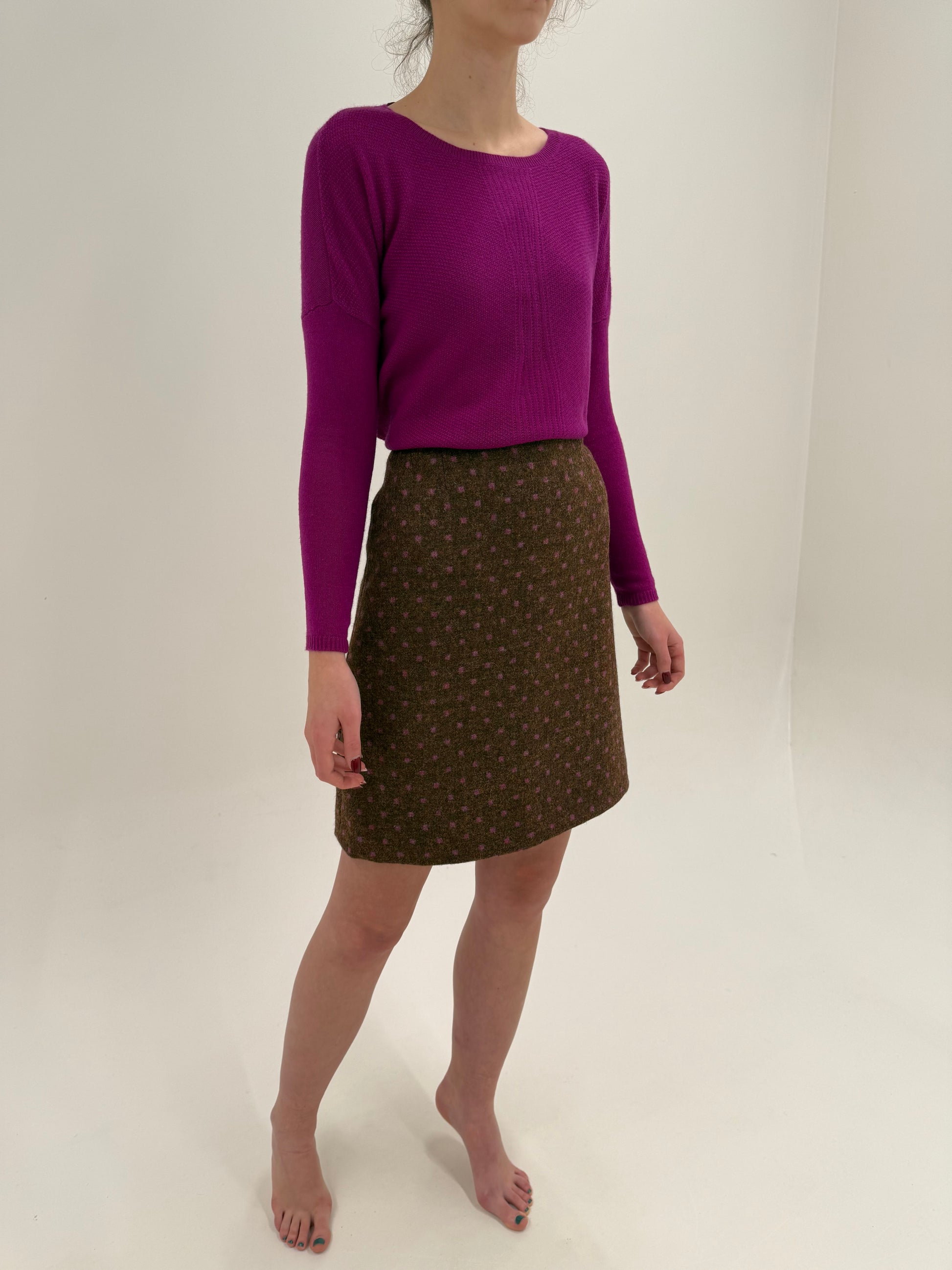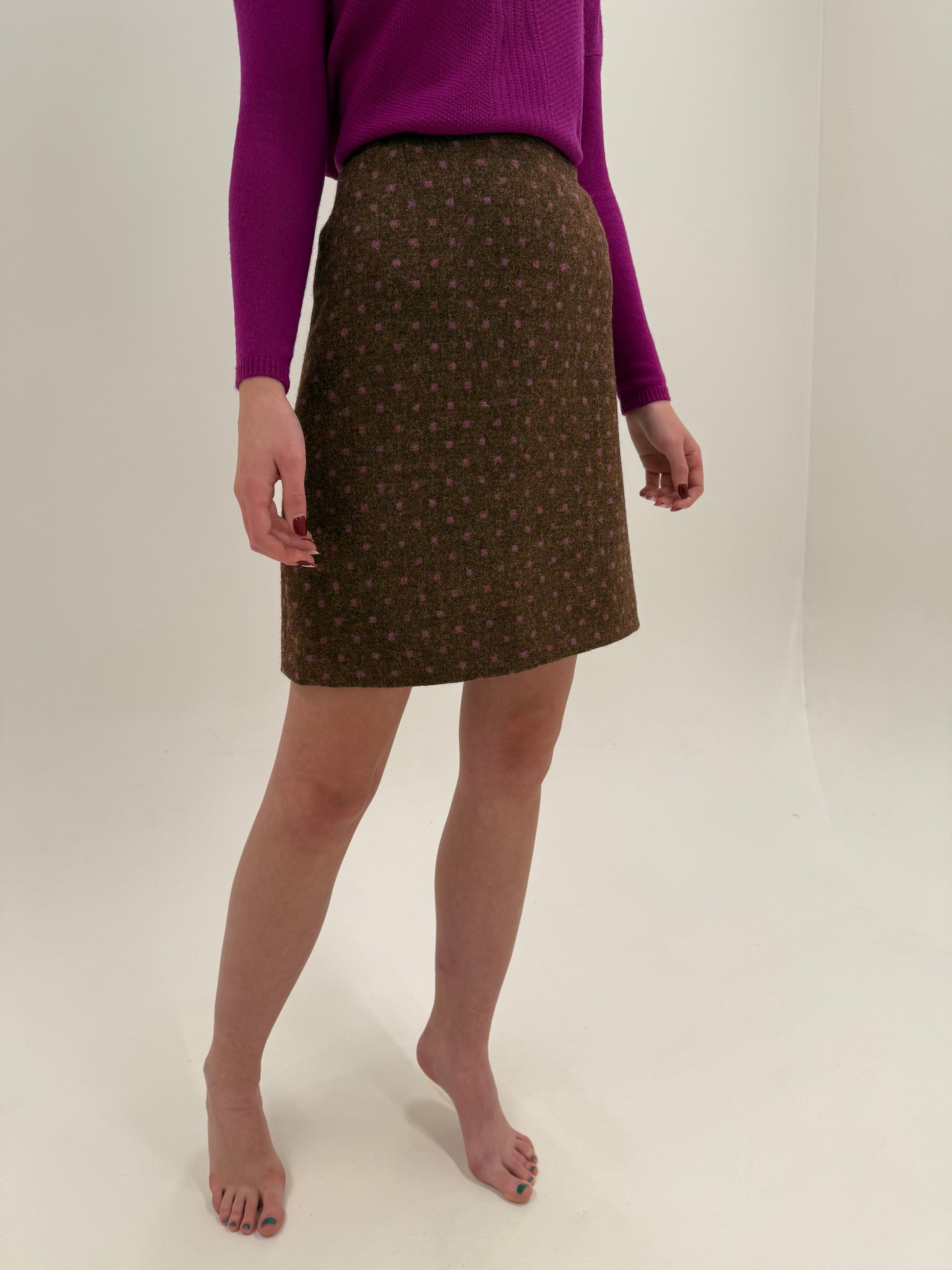 Fustă Moschino din Tartan de lana groasa caramel cu buline