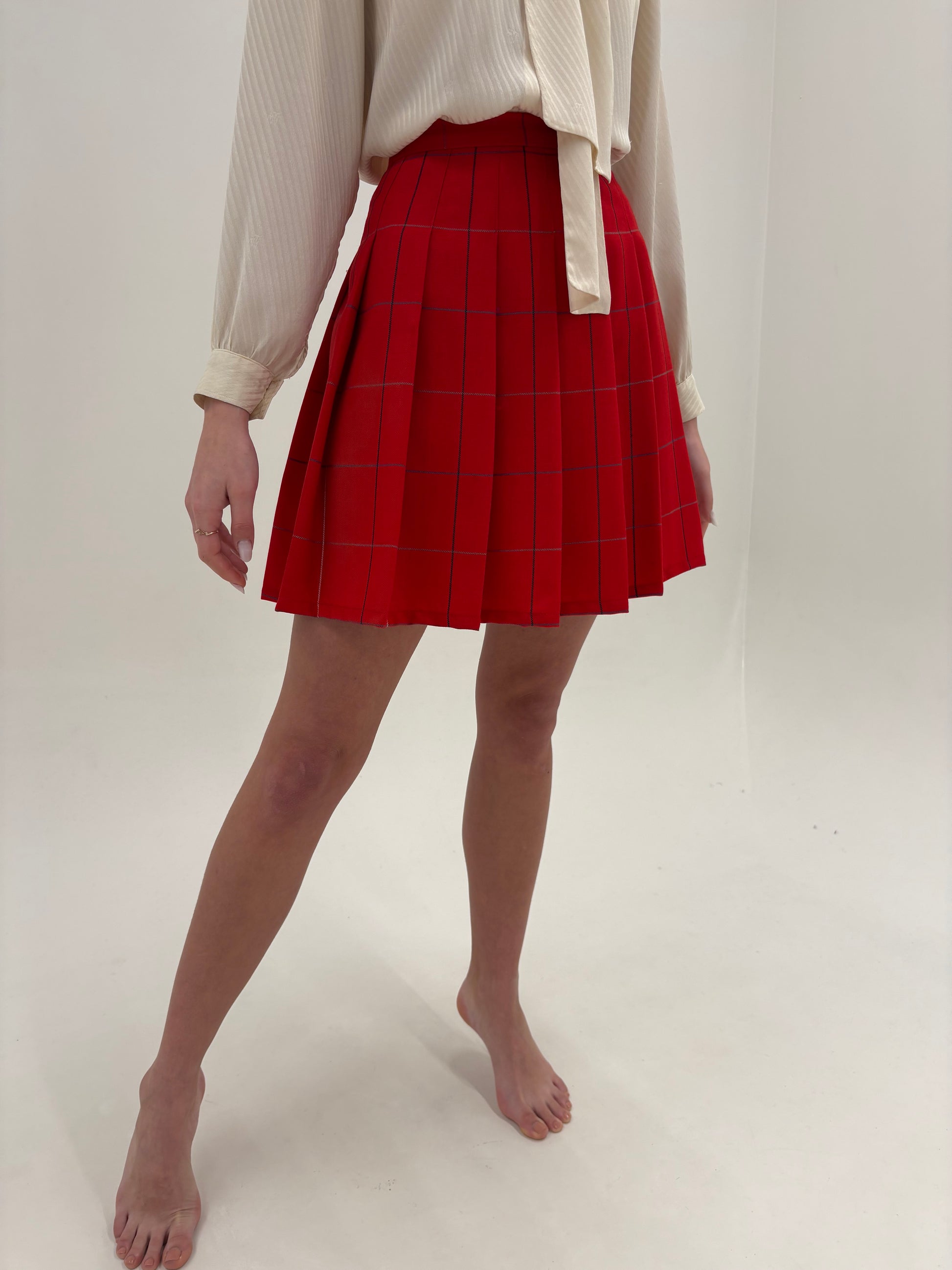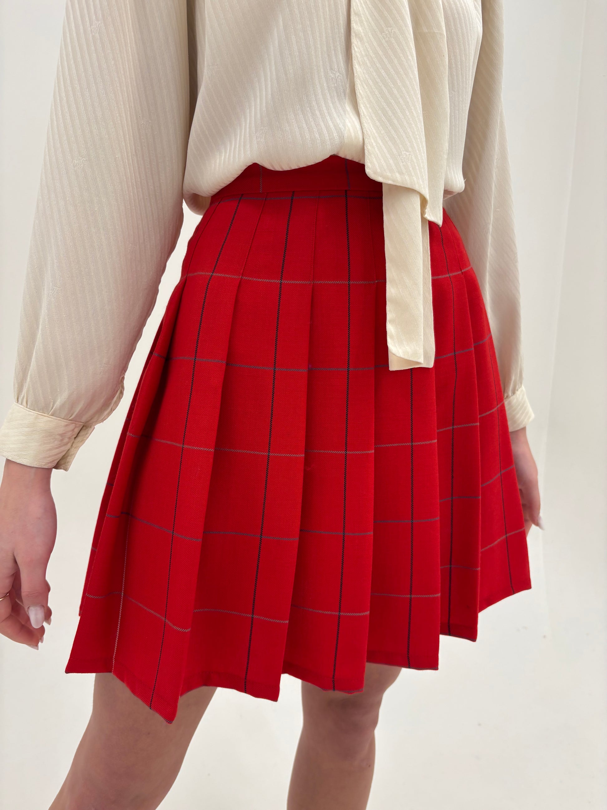 Fustă plisată cherry red din lanita extrafina de primăvară
