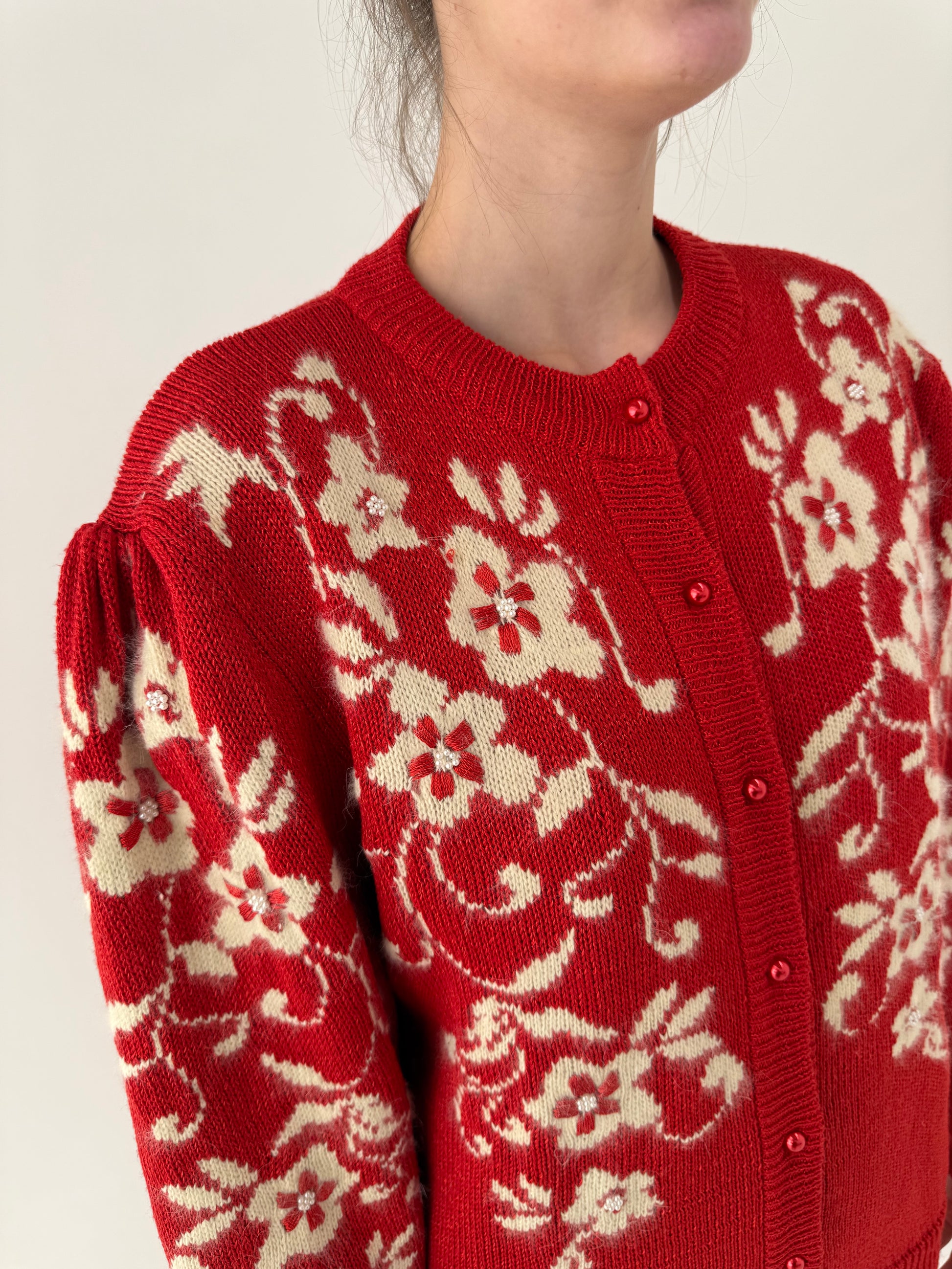 Cardigan vintage tip jacehta cu umeri ușor bufanți și manșetă îngustată