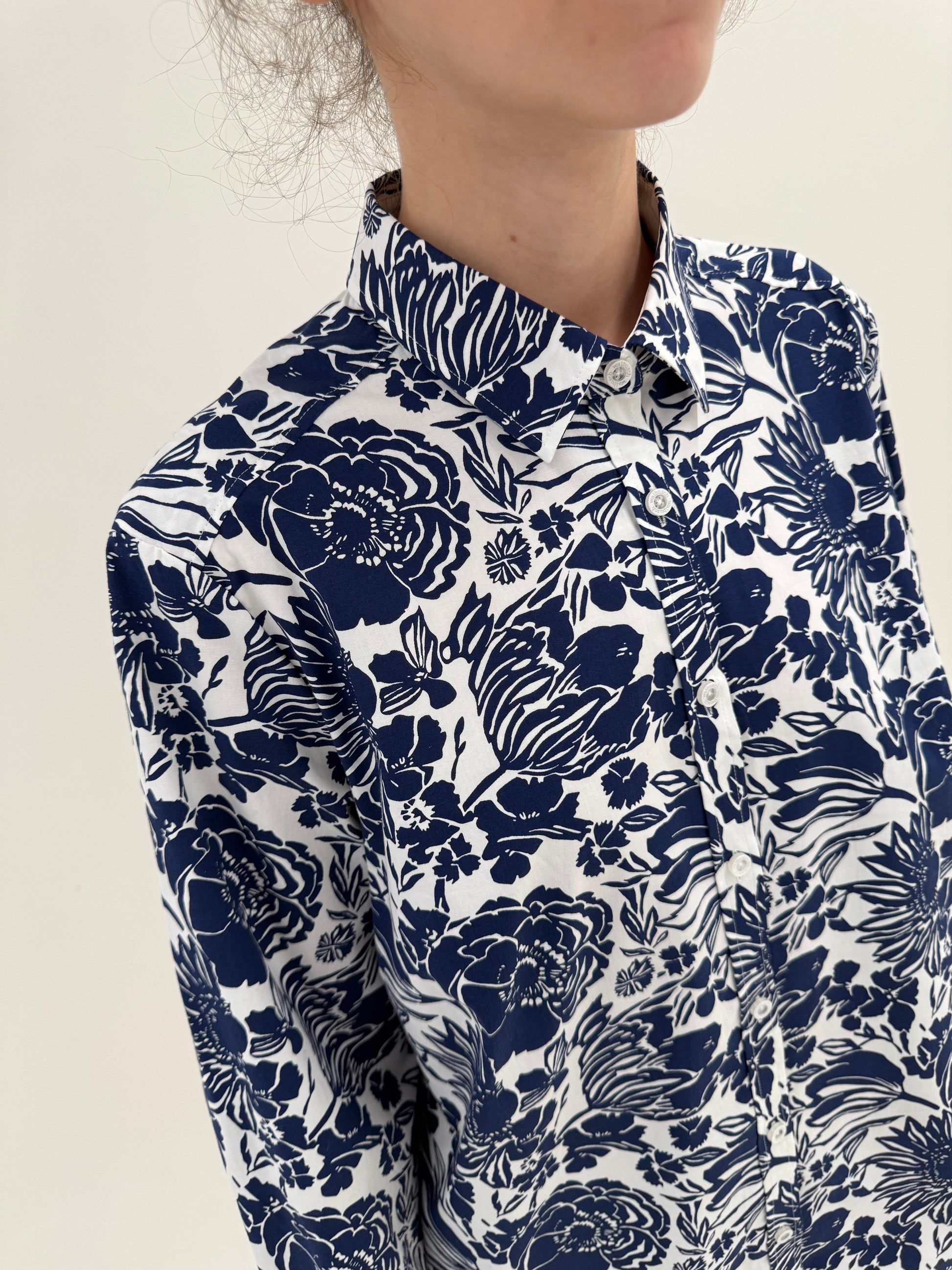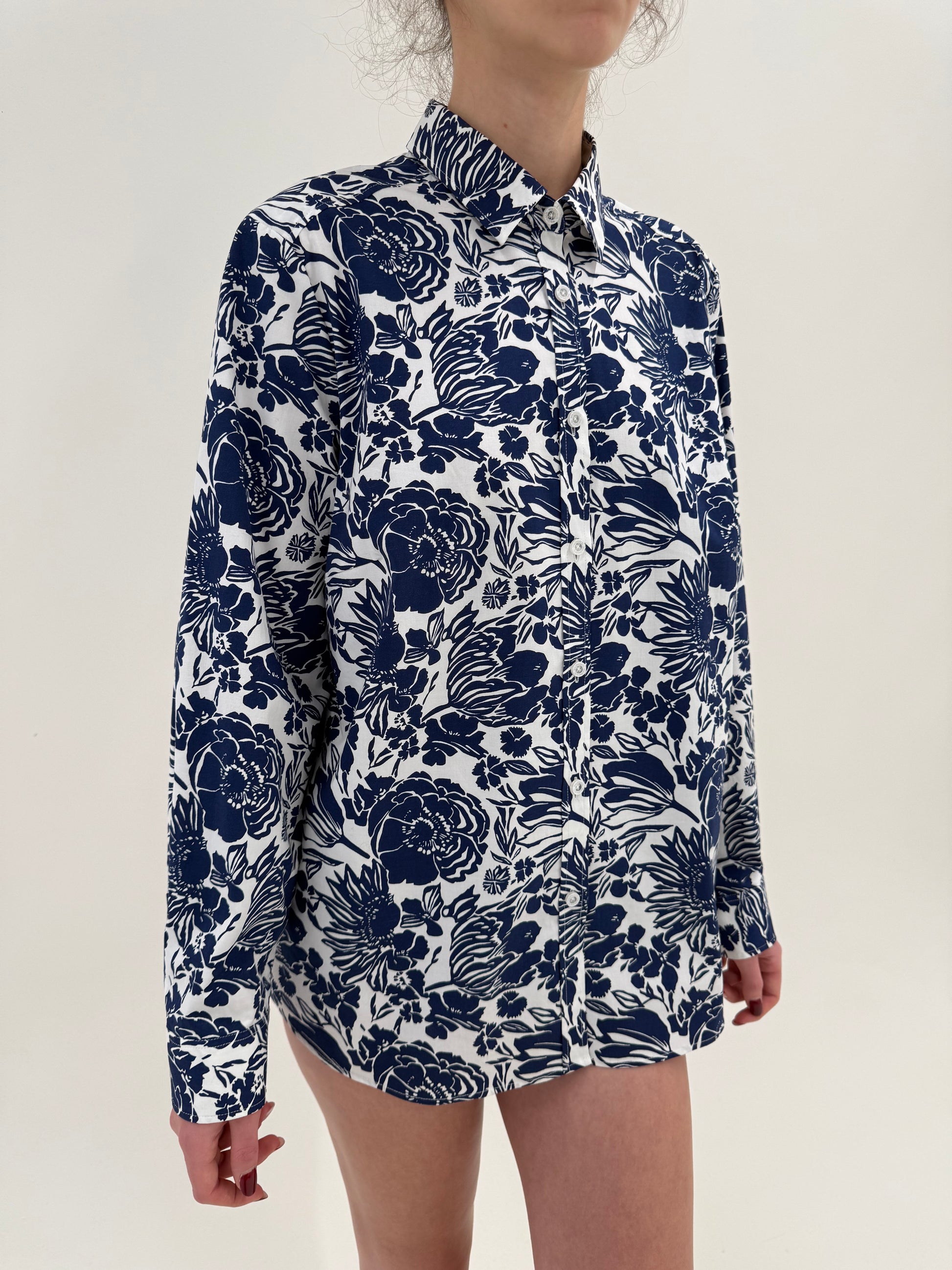 Cămașa din poplin premium plin cu print floral stilizat