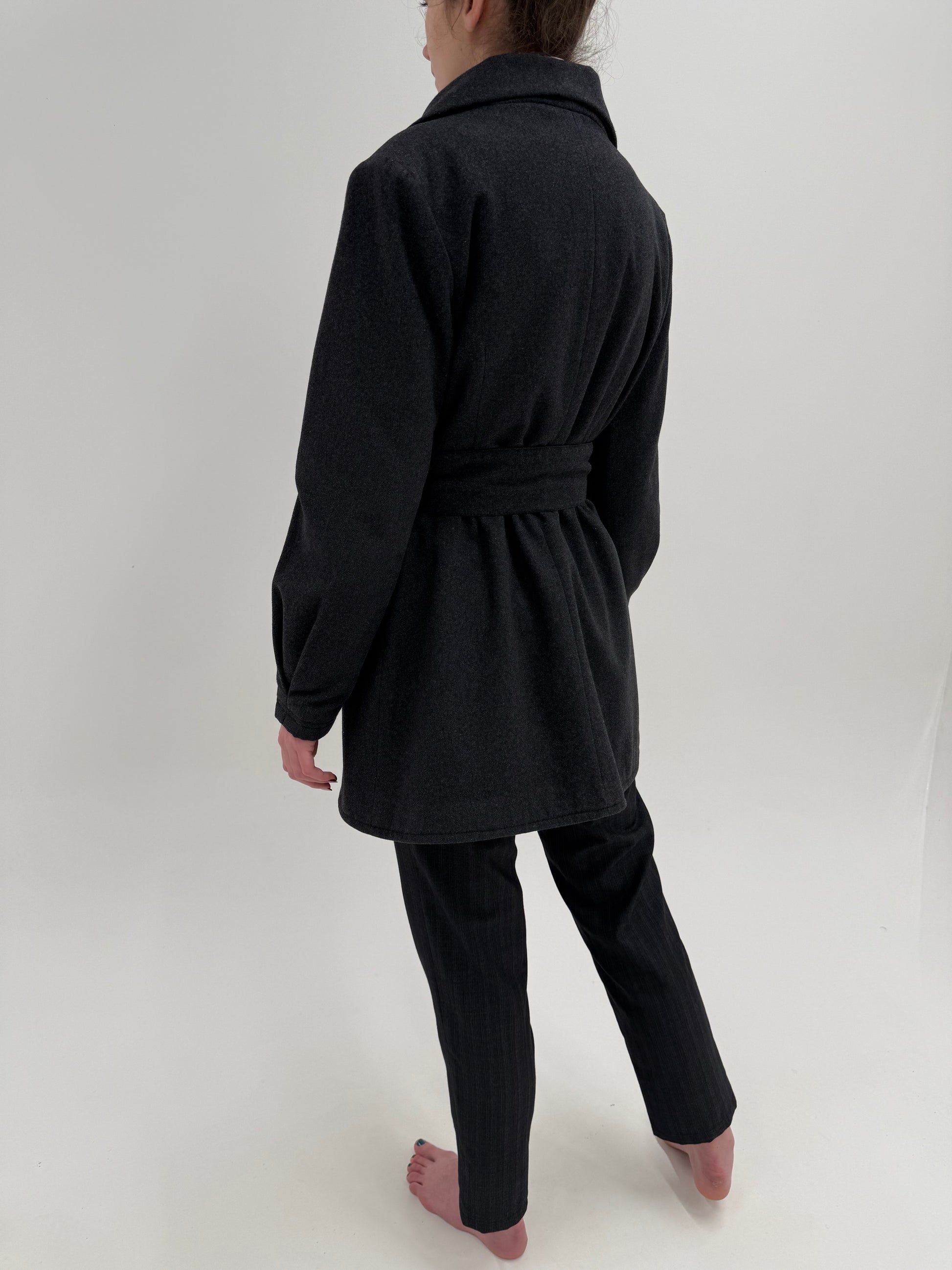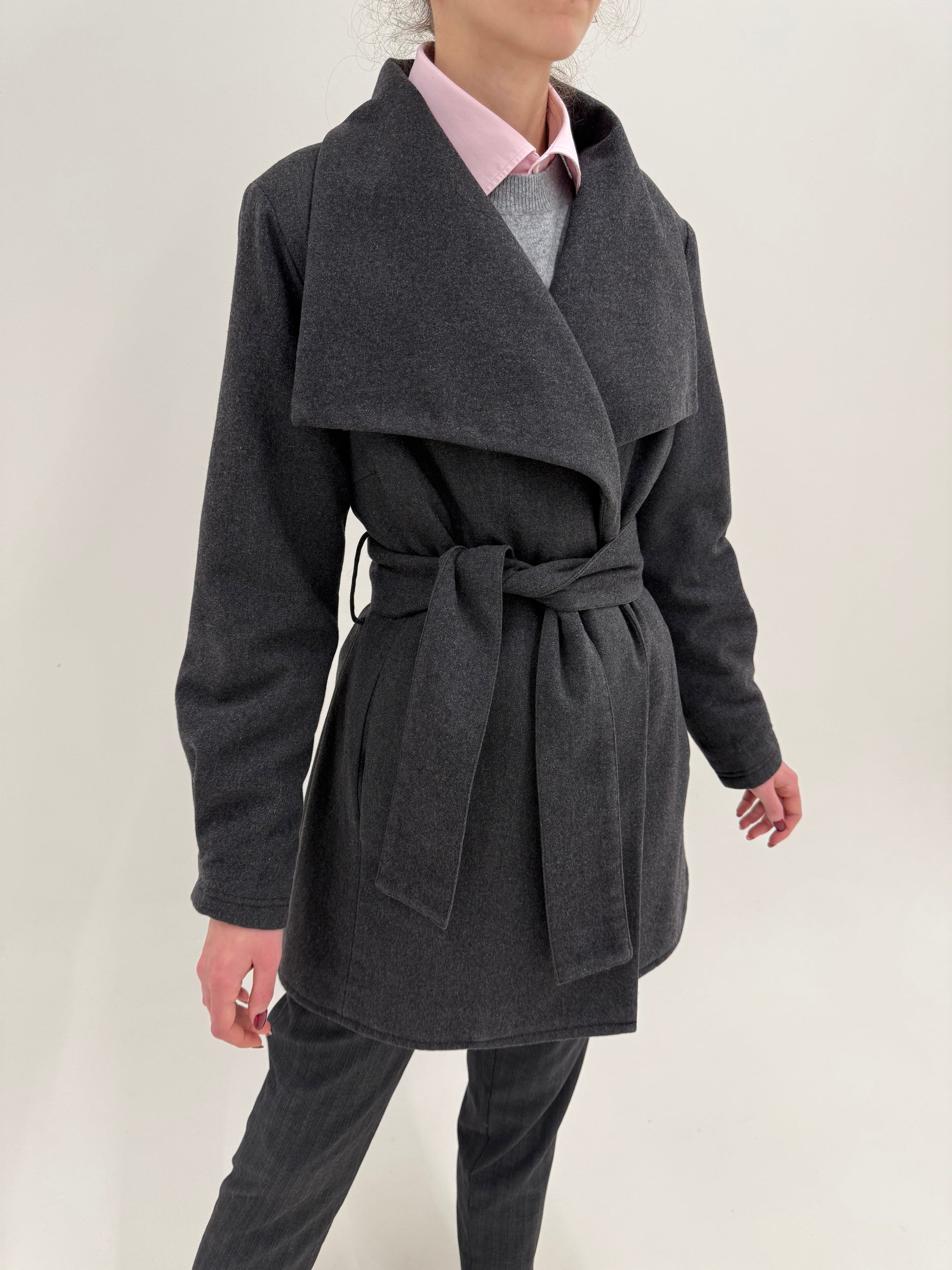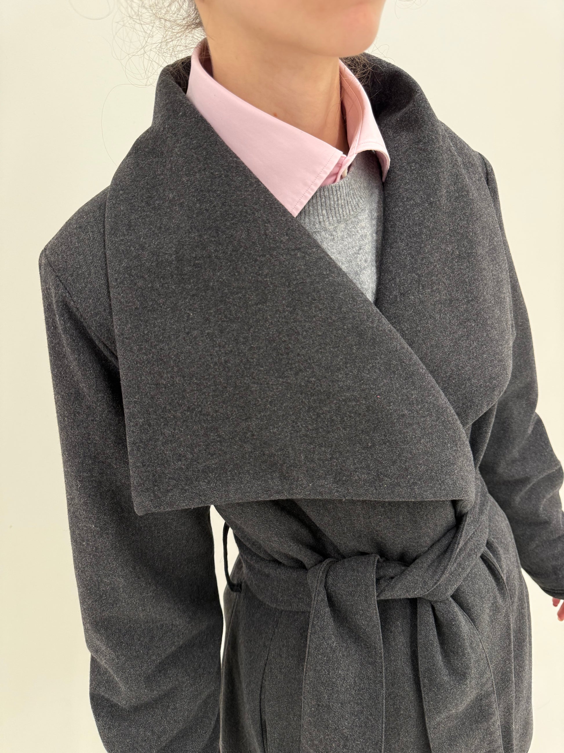 Palton din stofă plină excepțională de lana și extrafina cu guler amplu și cordon lat